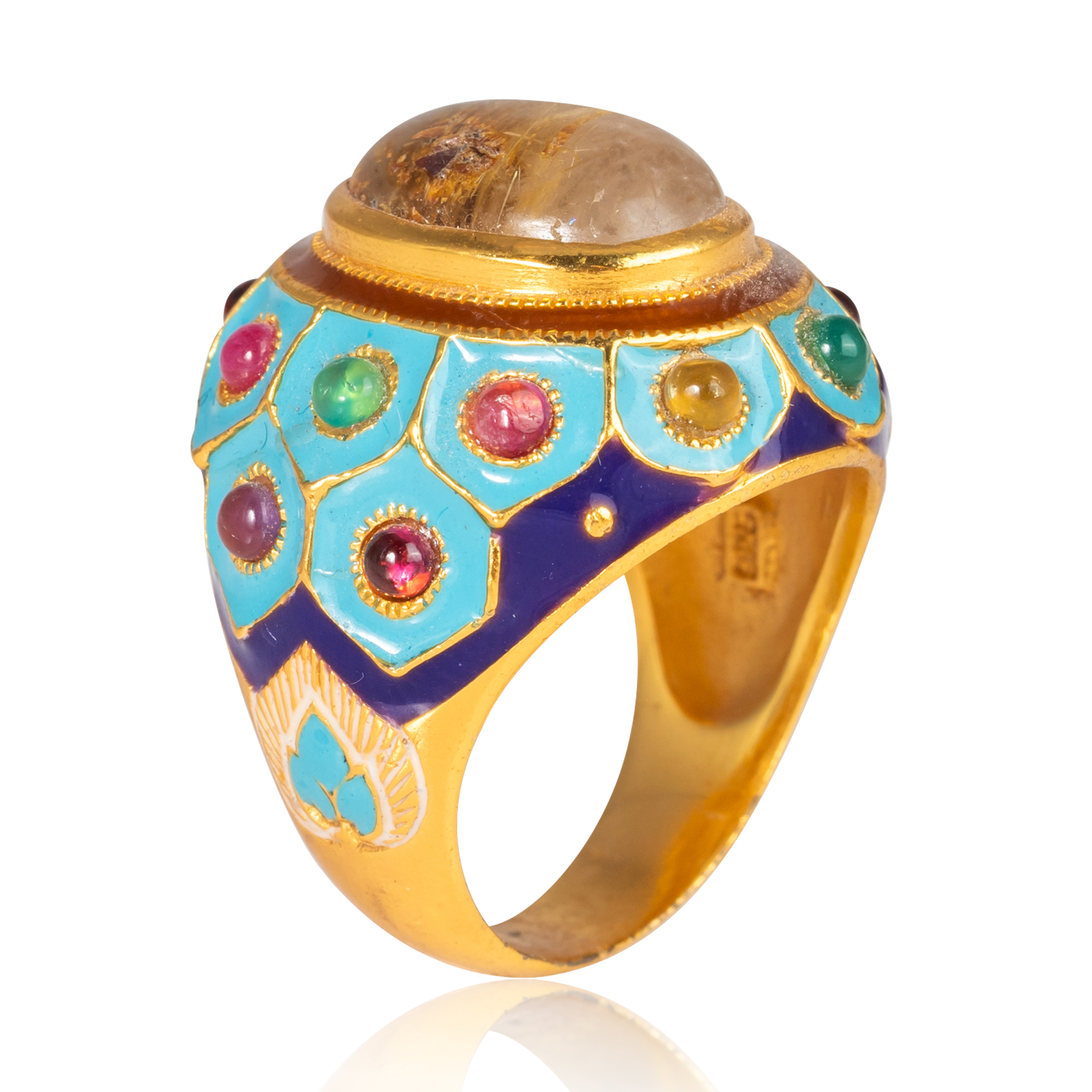 Sterling silver jewelry with 22k gold plated, natural stone and enamel.