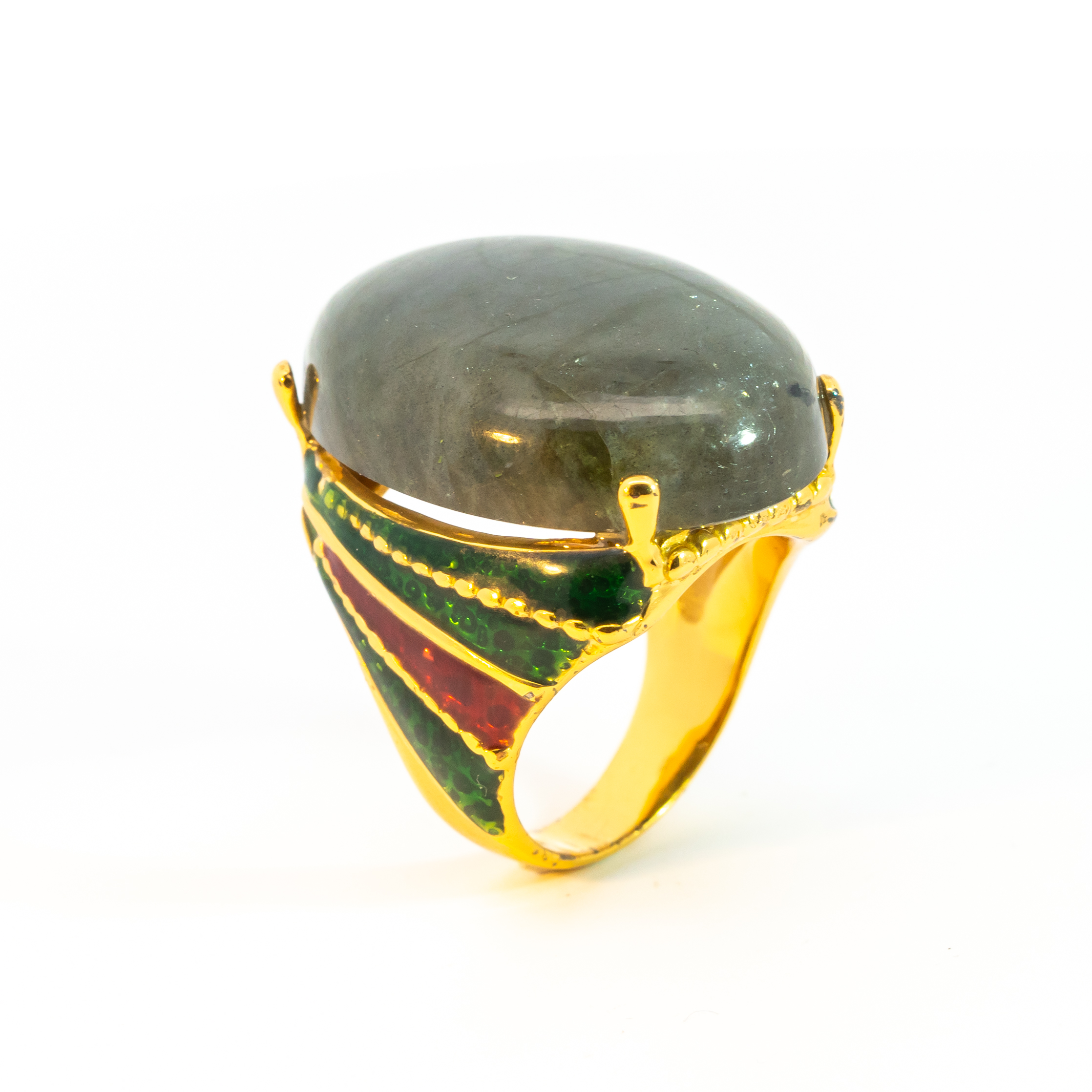 Sterling silver jewelry with 22k gold plated, natural stone and enamel.