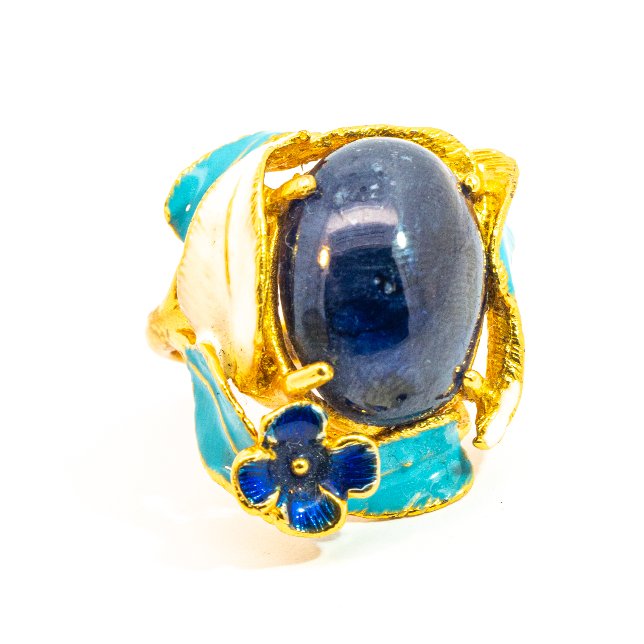 Sterling silver jewelry with 22k gold plated, natural stone and enamel.