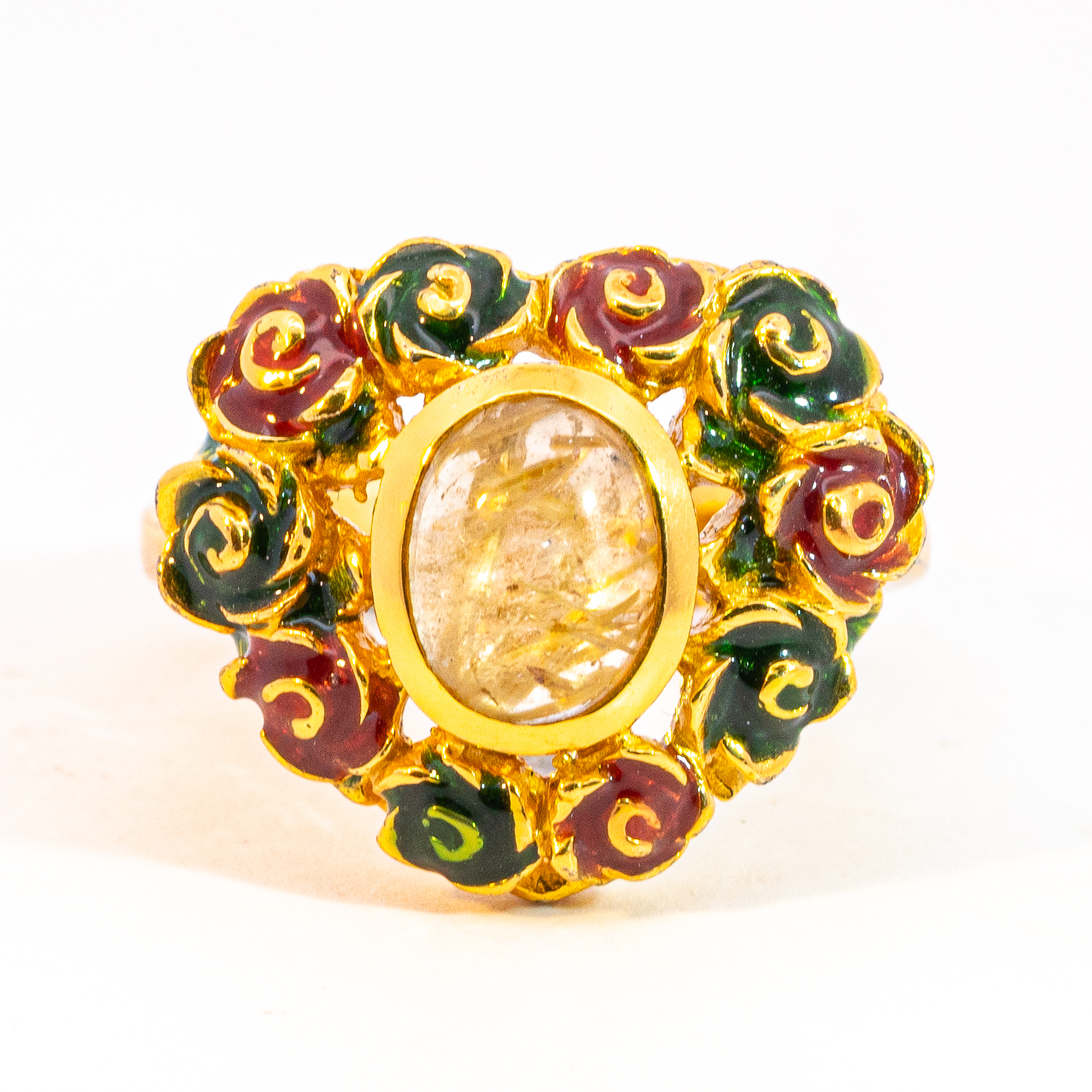 Sterling silver jewelry with 22k gold plated, natural stone and enamel.
