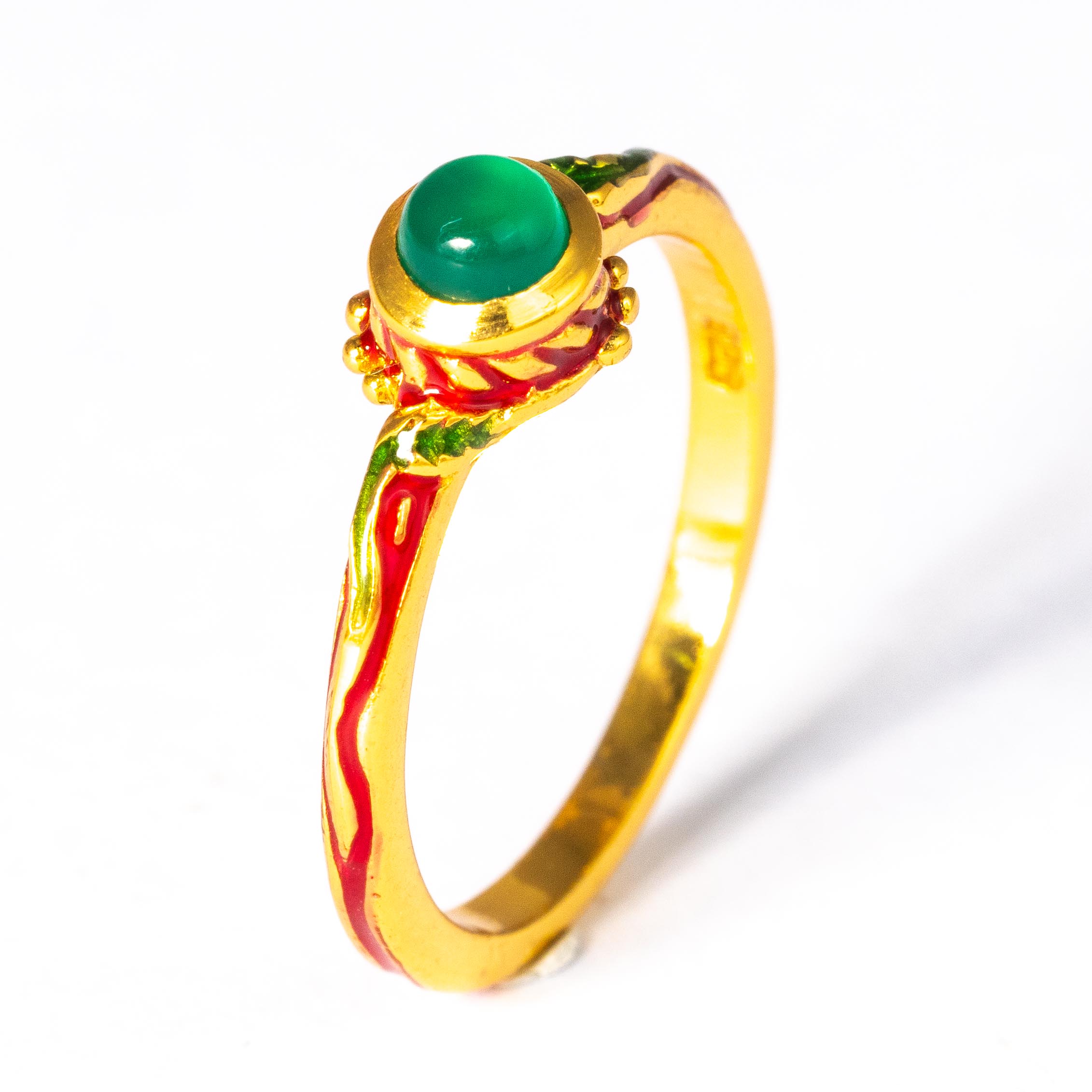Sterling silver jewelry with 22k gold plated, natural stone and enamel.