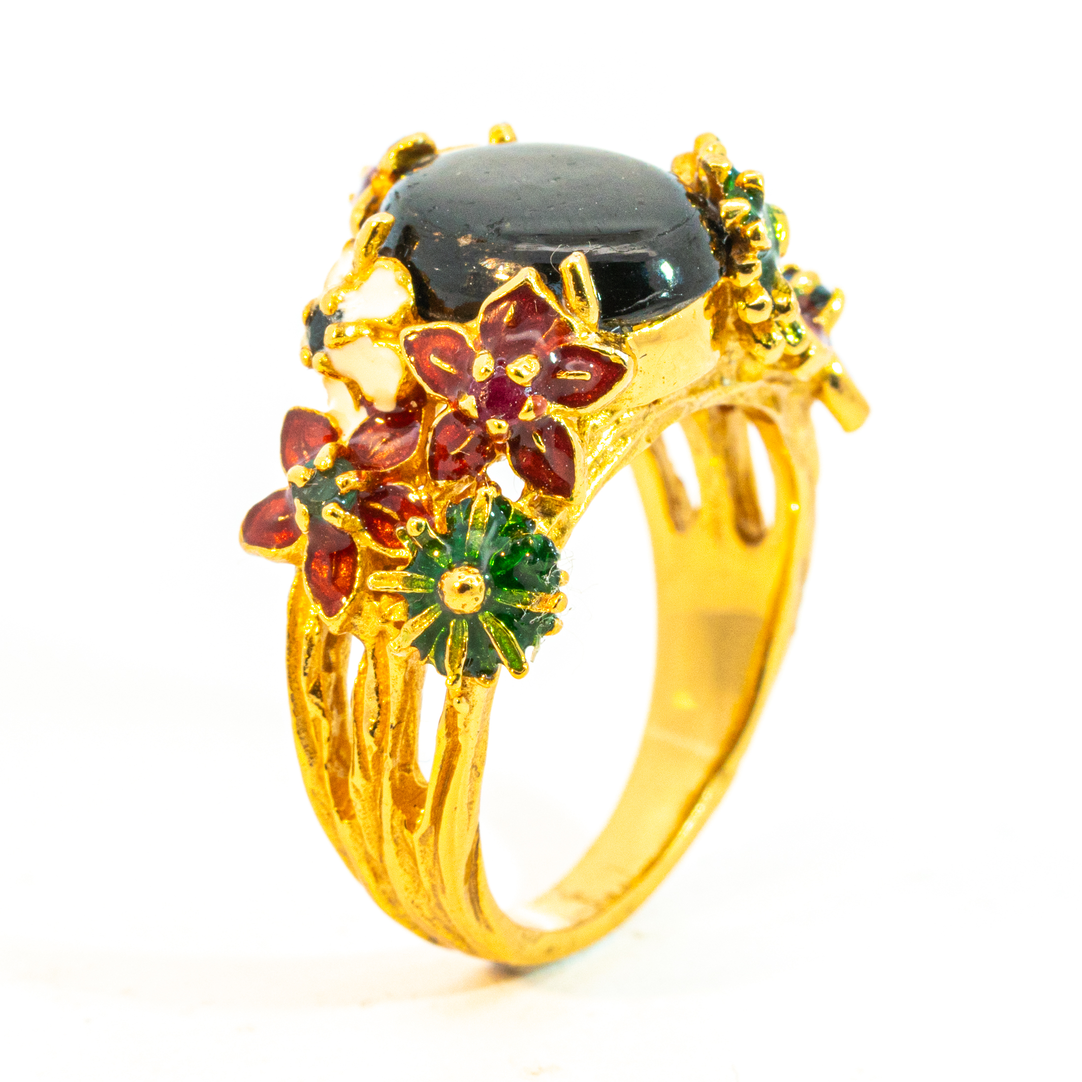 Sterling silver jewelry with 22k gold plated, natural stone and enamel.