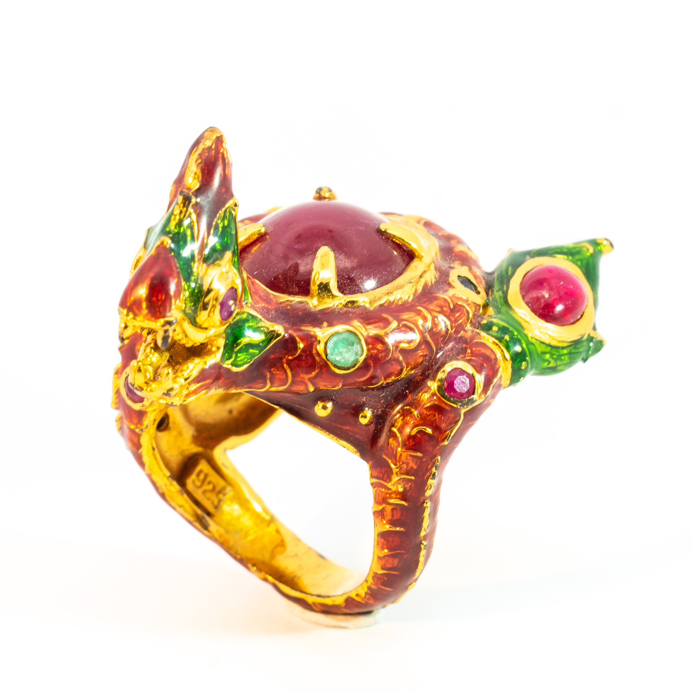 Sterling silver jewelry with 22k gold plated, natural stone and enamel.