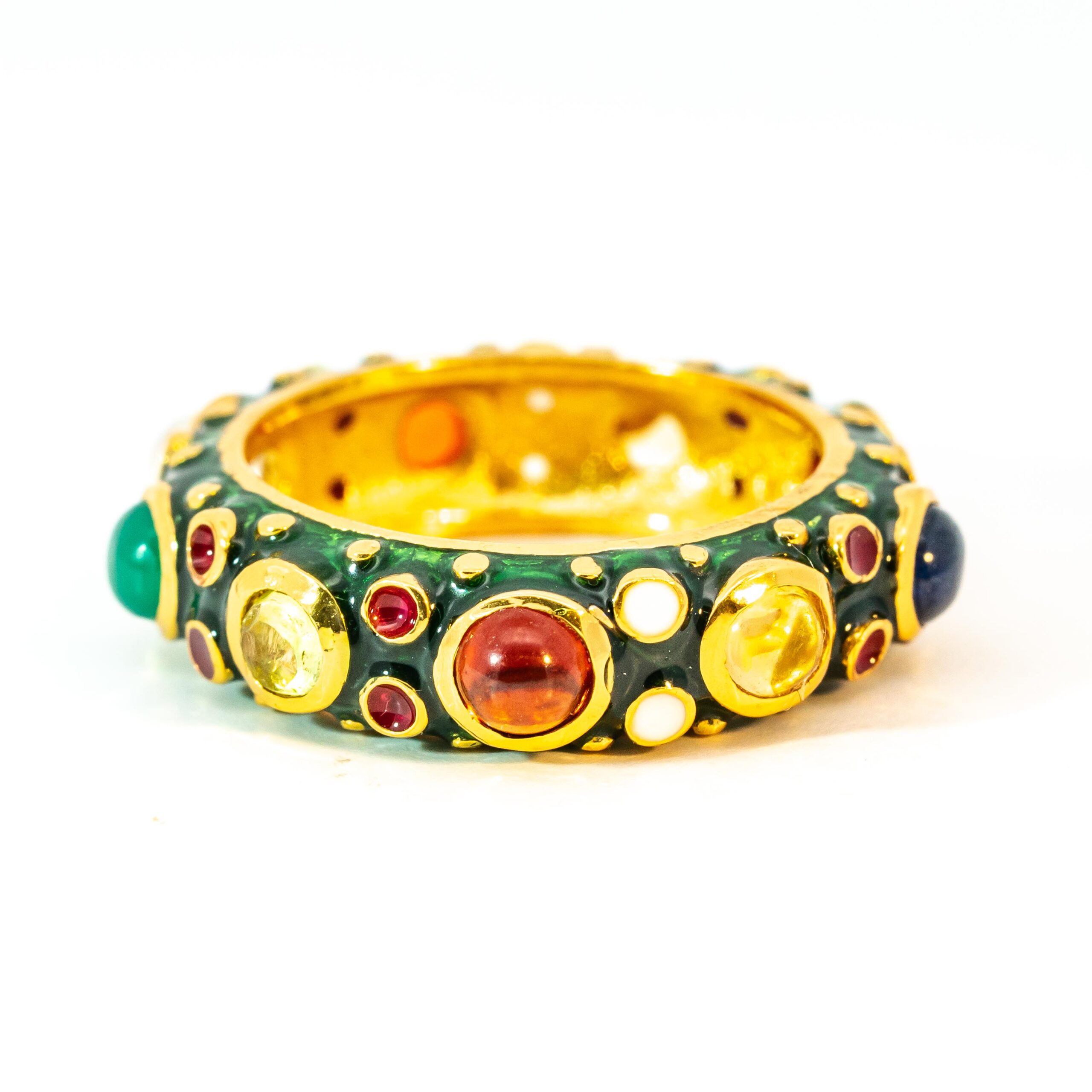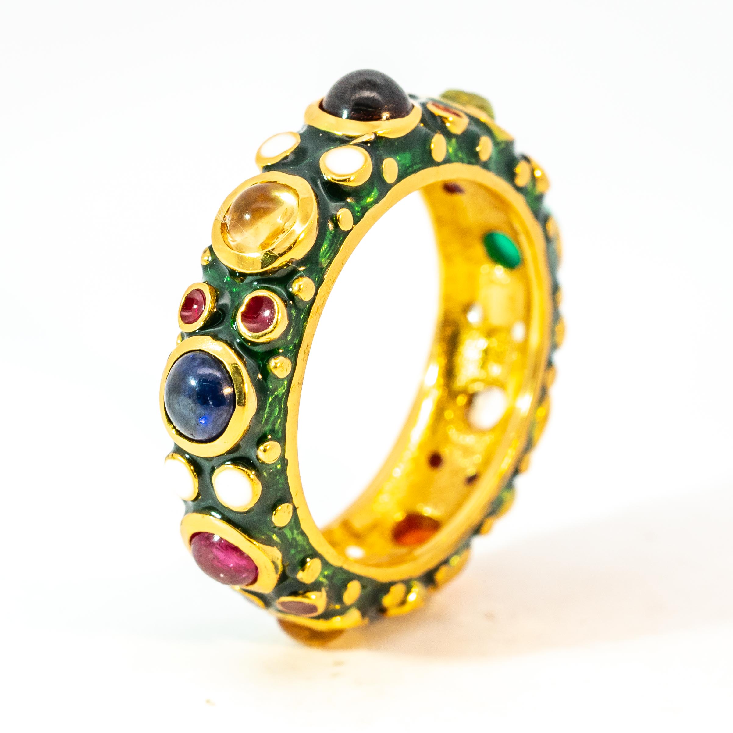 Sterling silver jewelry with 22k gold plated, natural stone and enamel.