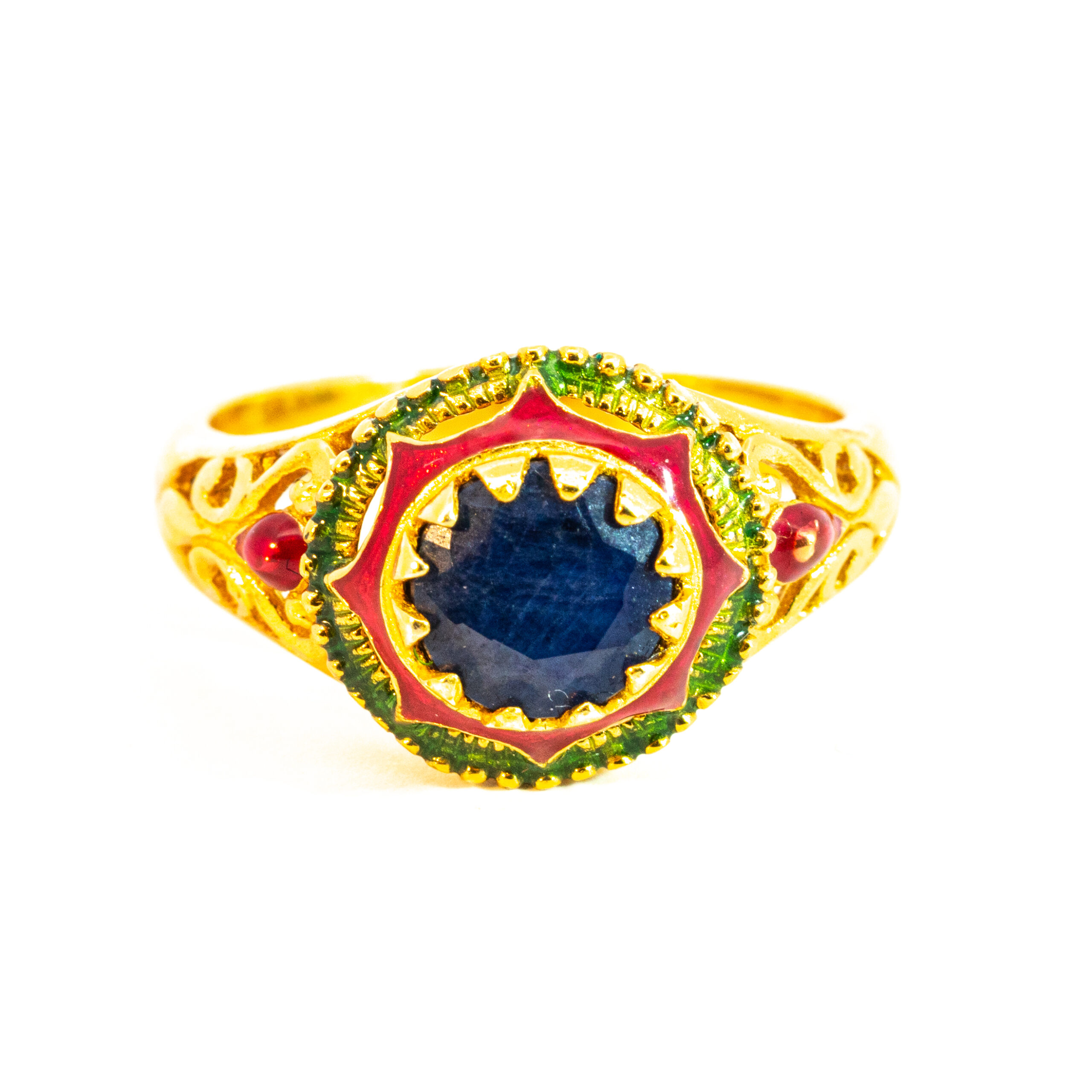 Sterling silver jewelry with 22k gold plated, natural stone and enamel.