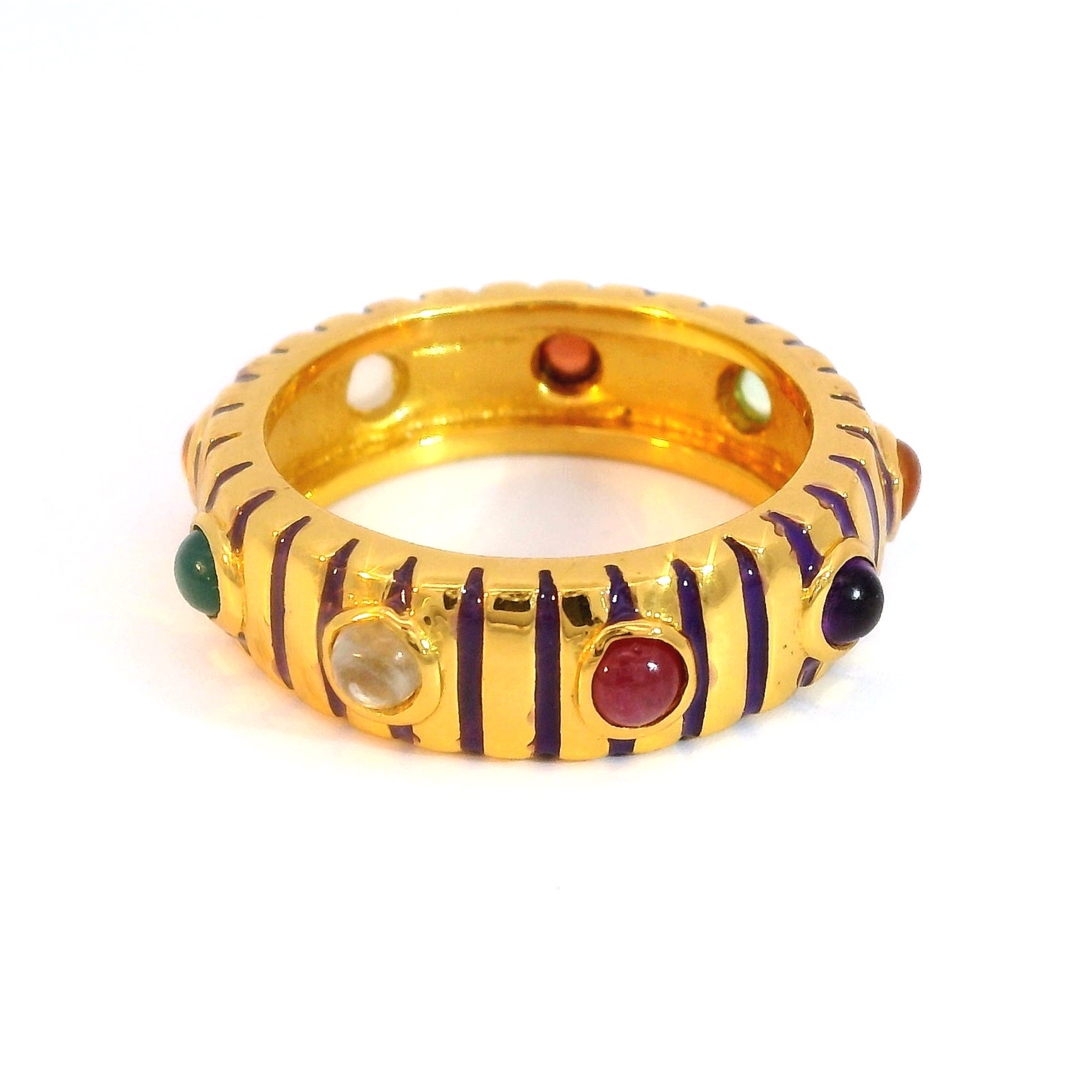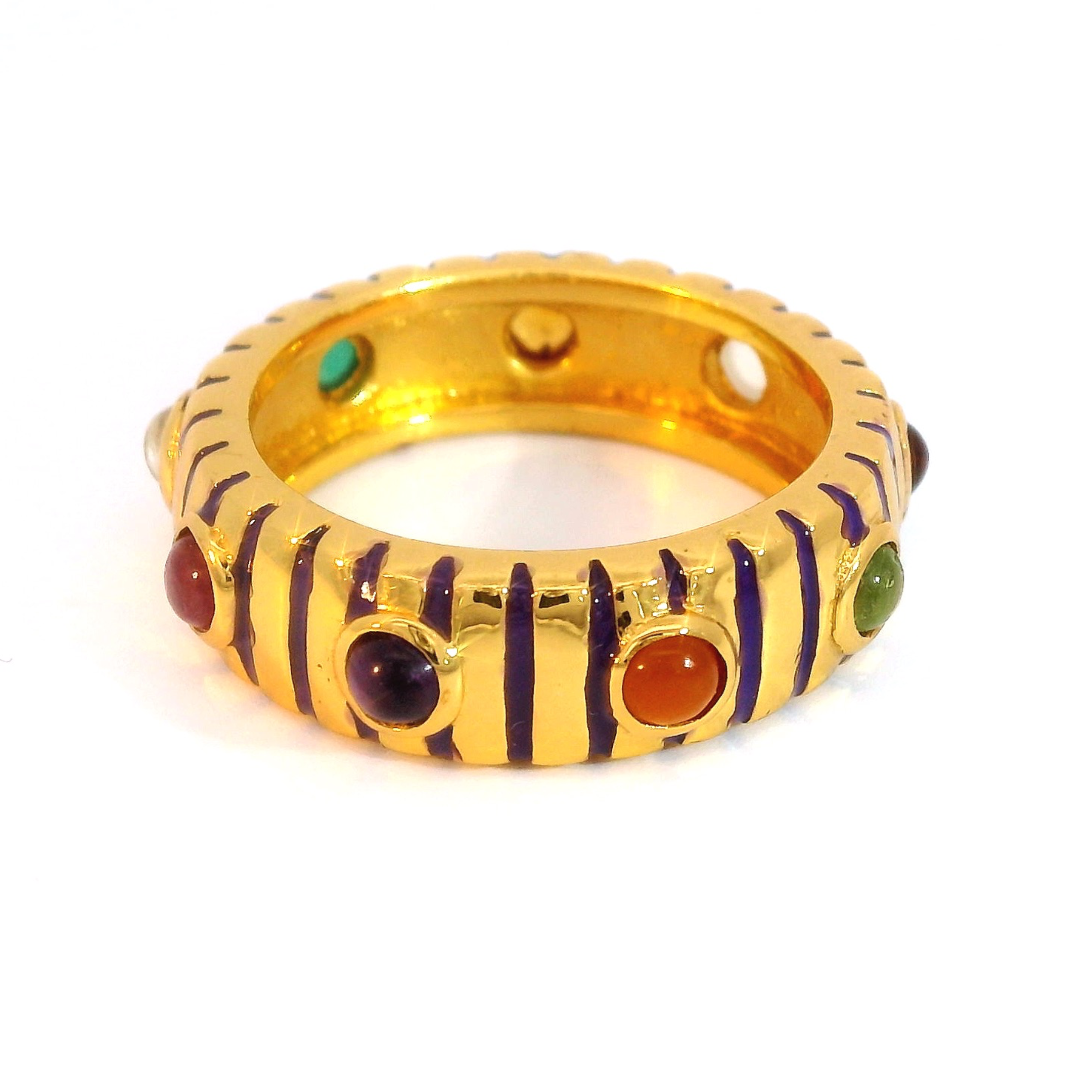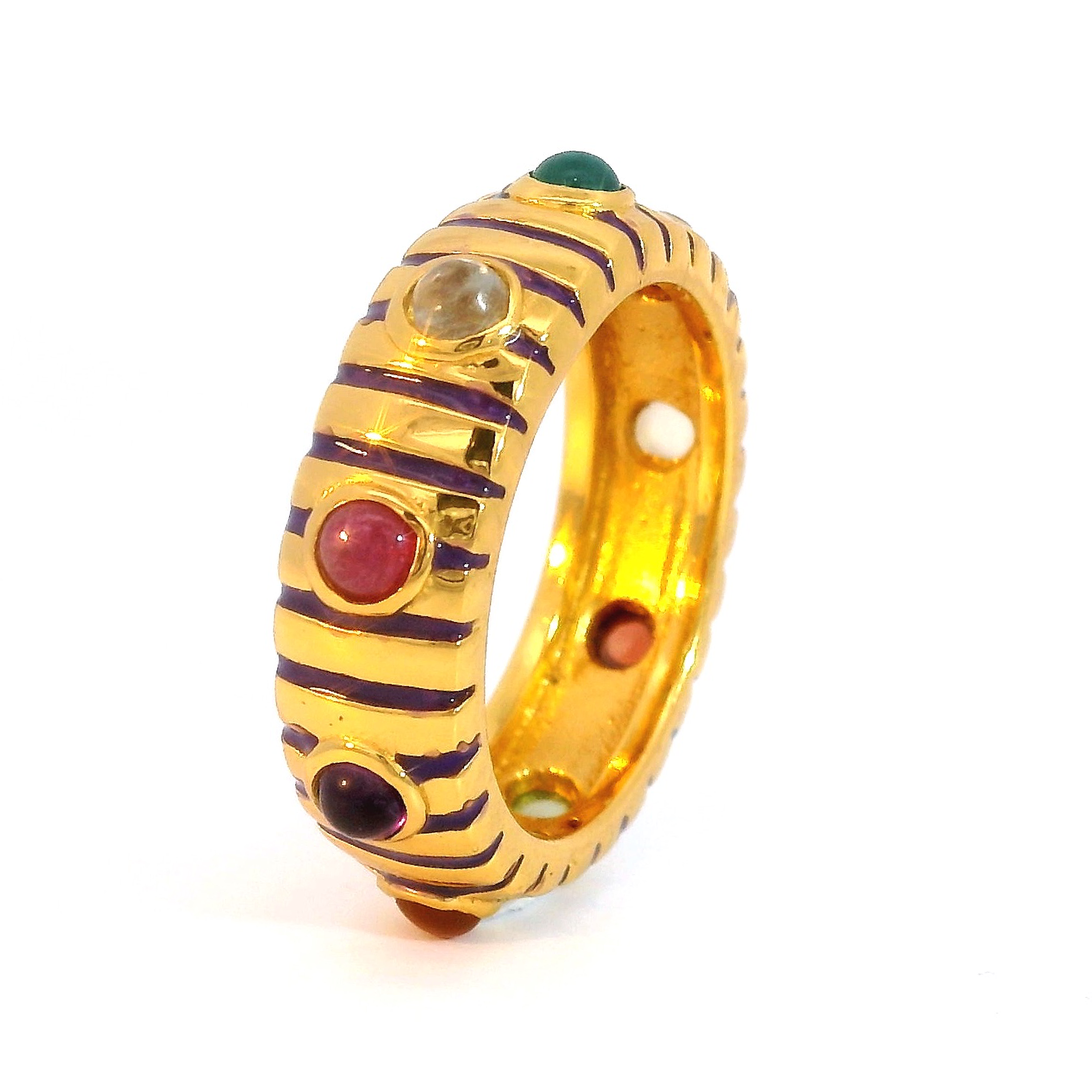 Sterling silver jewelry with 22k gold plated, natural stone and enamel.