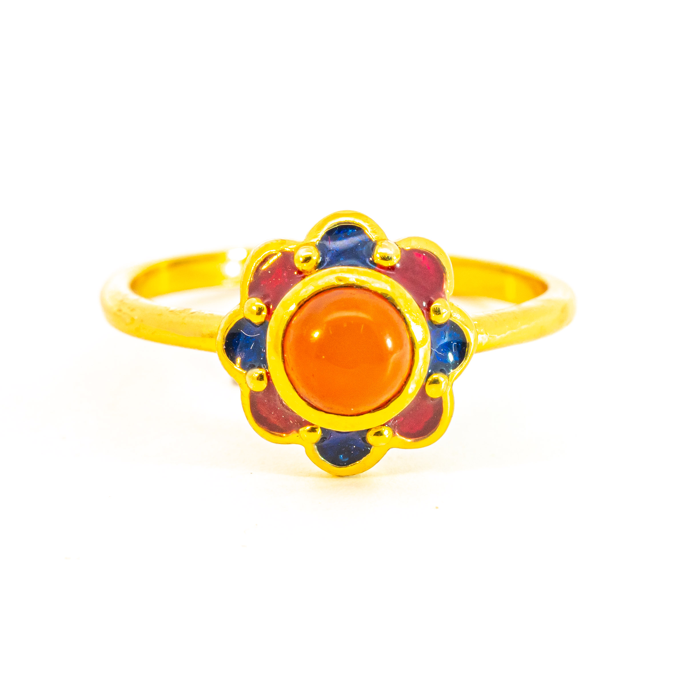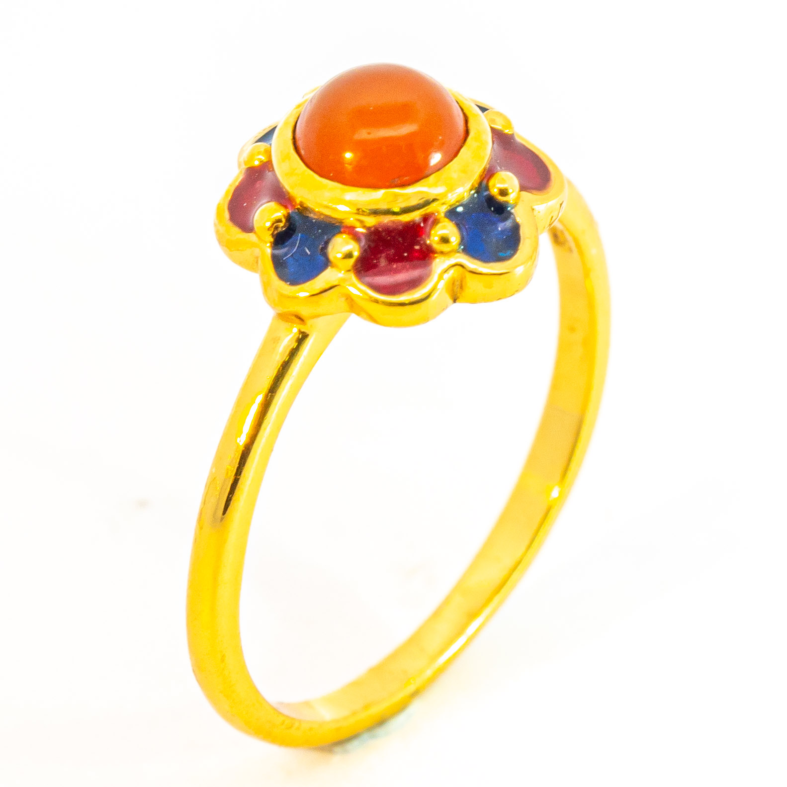 Sterling silver jewelry with 22k gold plated, natural stone and enamel.
