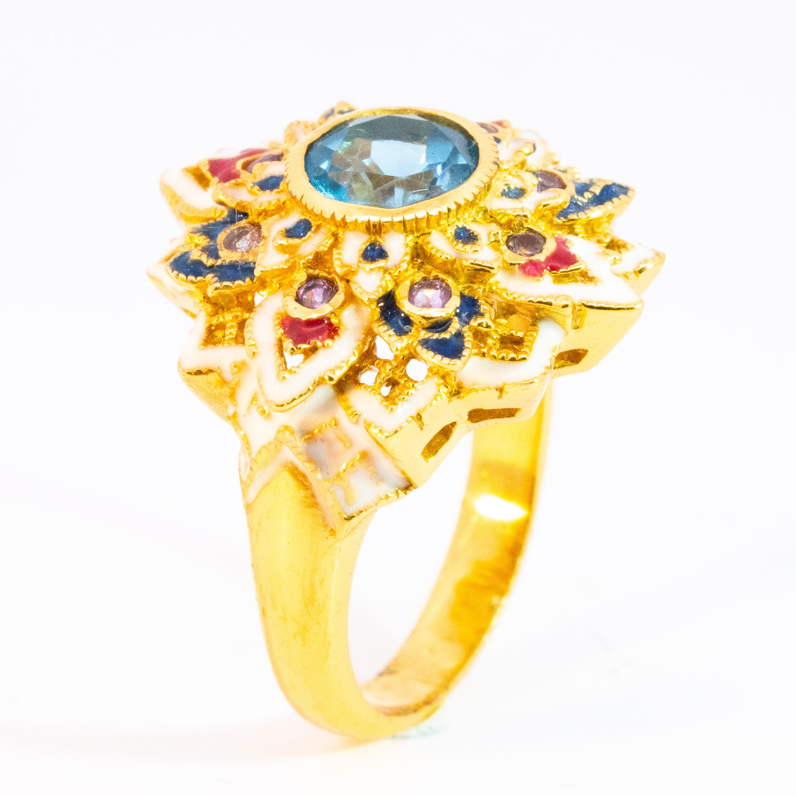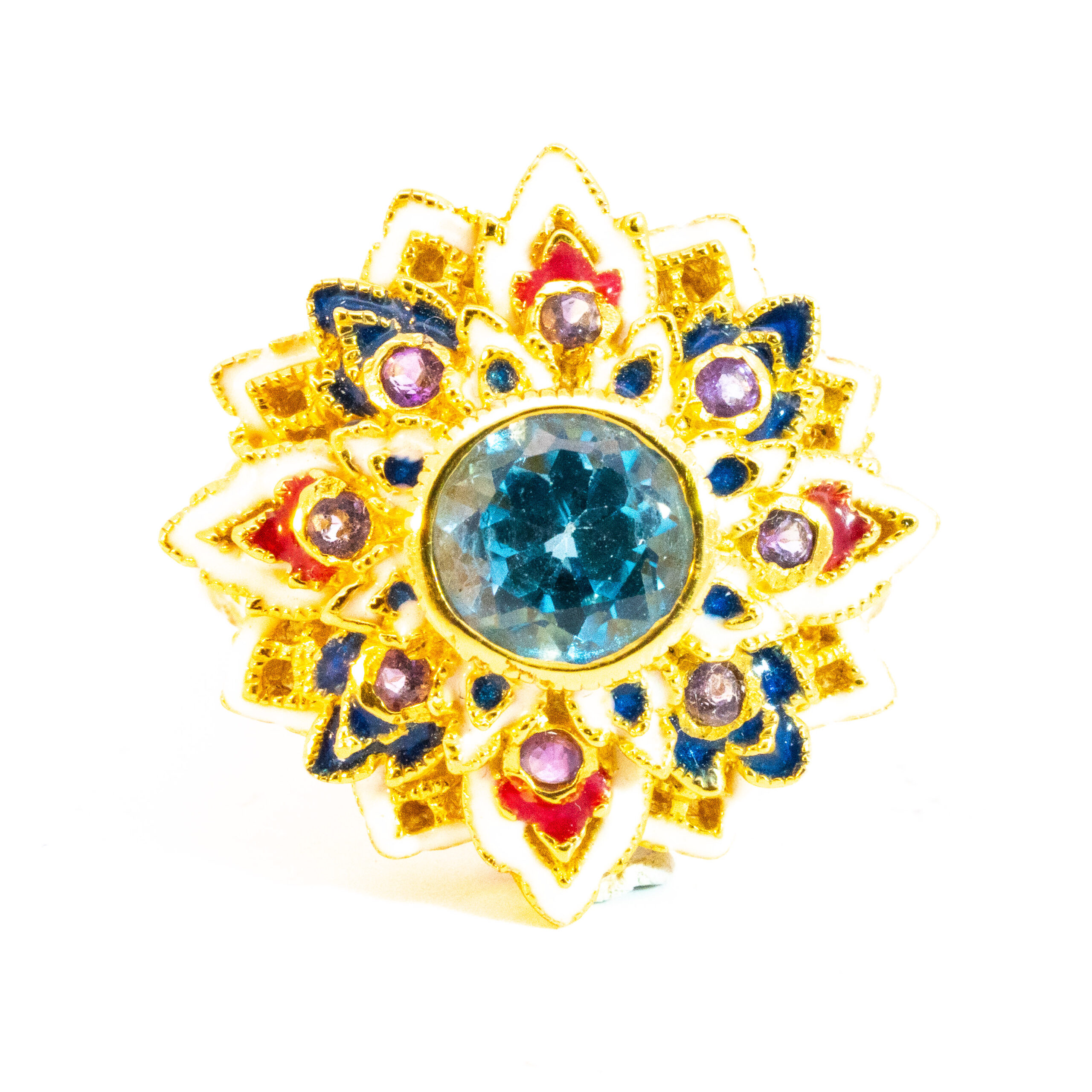 Sterling silver jewelry with 22k gold plated, natural stone and enamel.