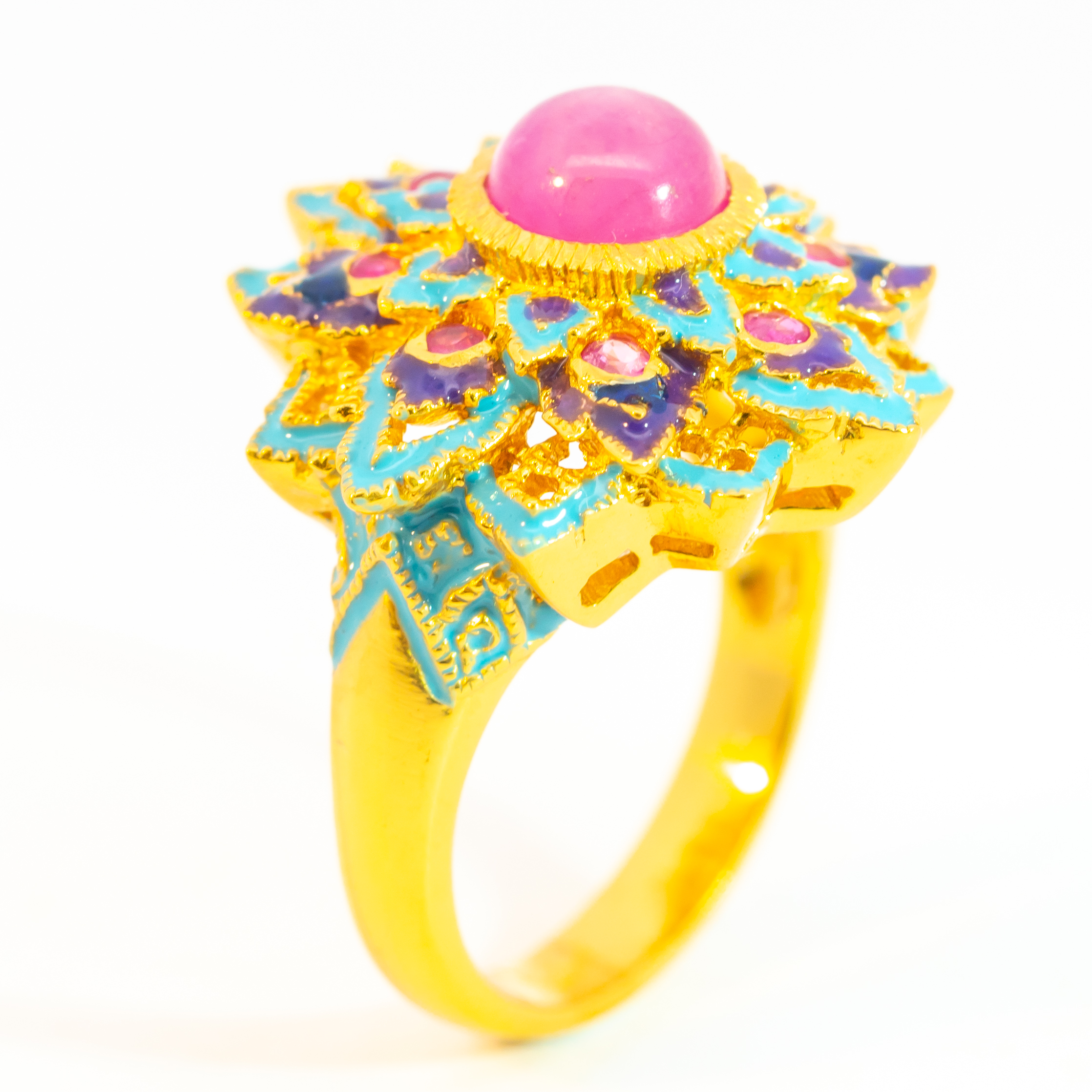 Sterling silver jewelry with 22k gold plated, natural stone and enamel.