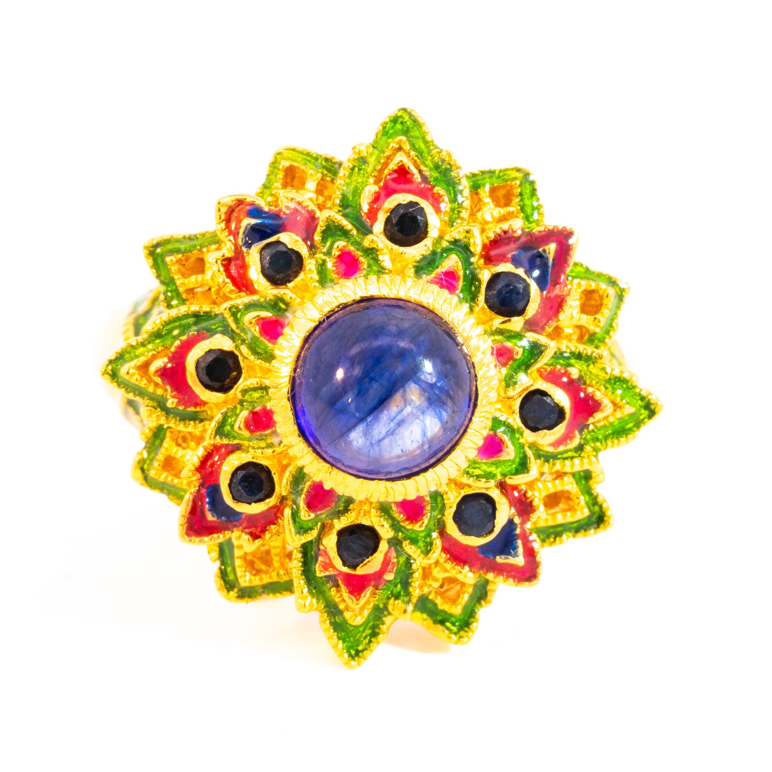 Sterling silver jewelry with 22k gold plated, natural stone and enamel.