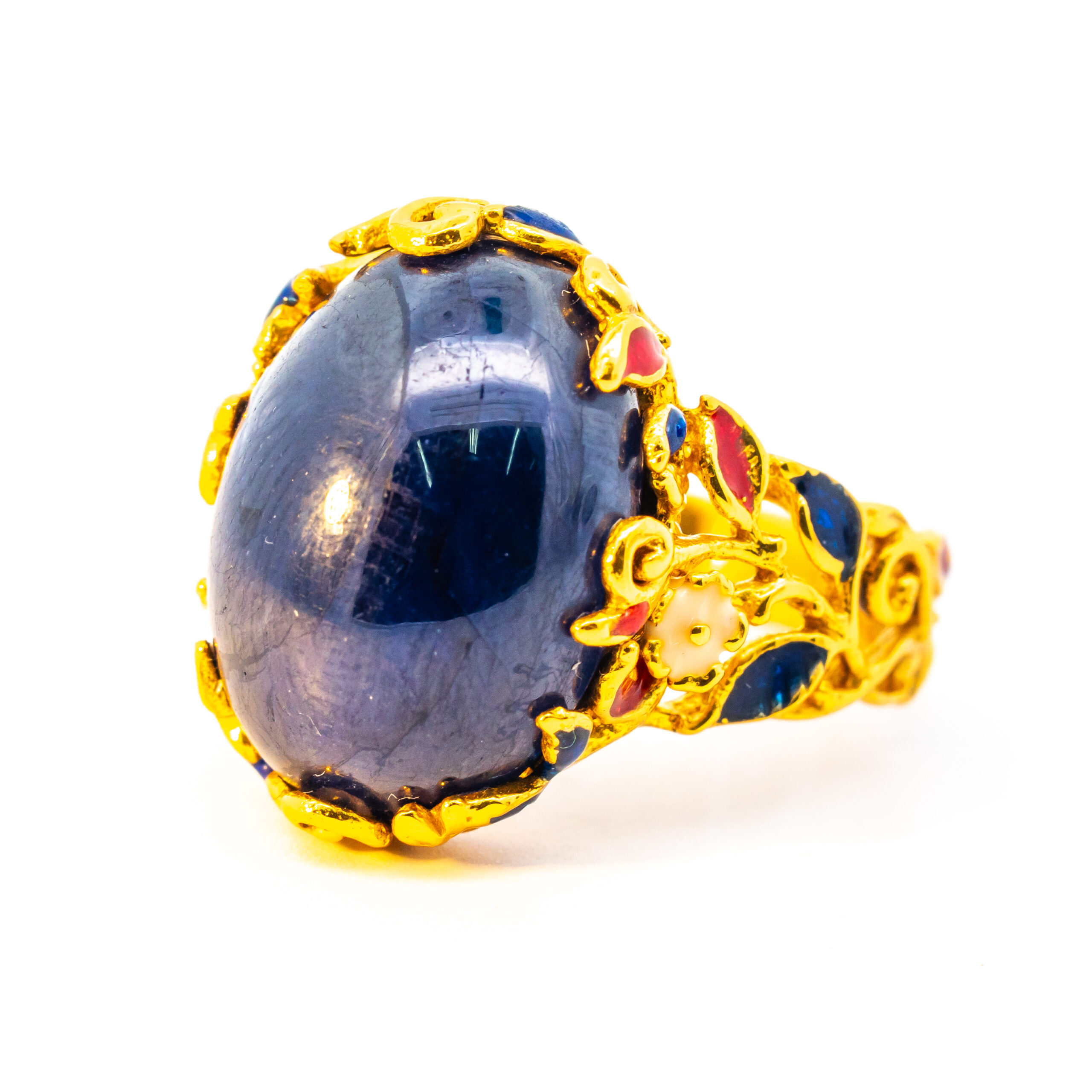 Sterling silver jewelry with 22k gold plated, natural stone and enamel.