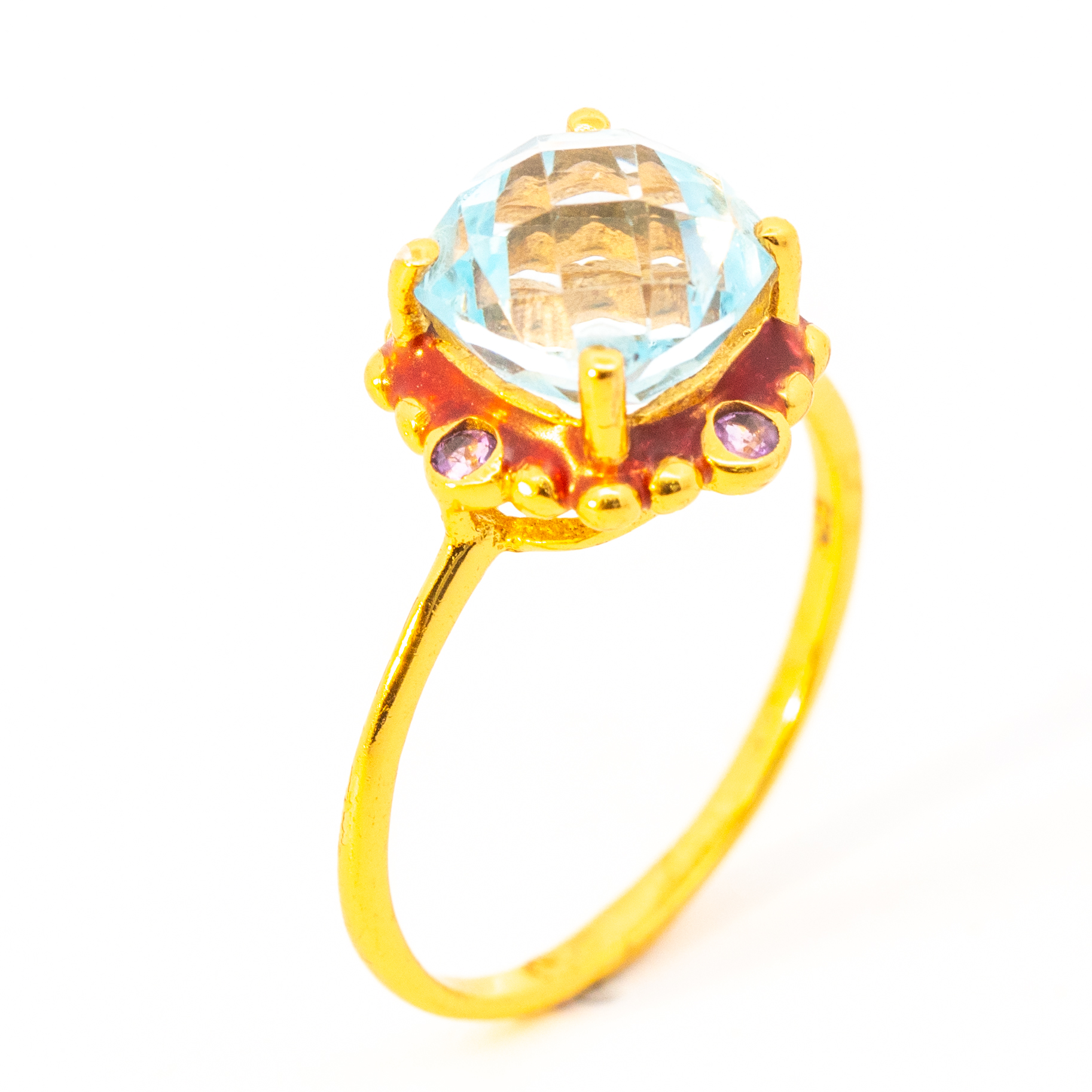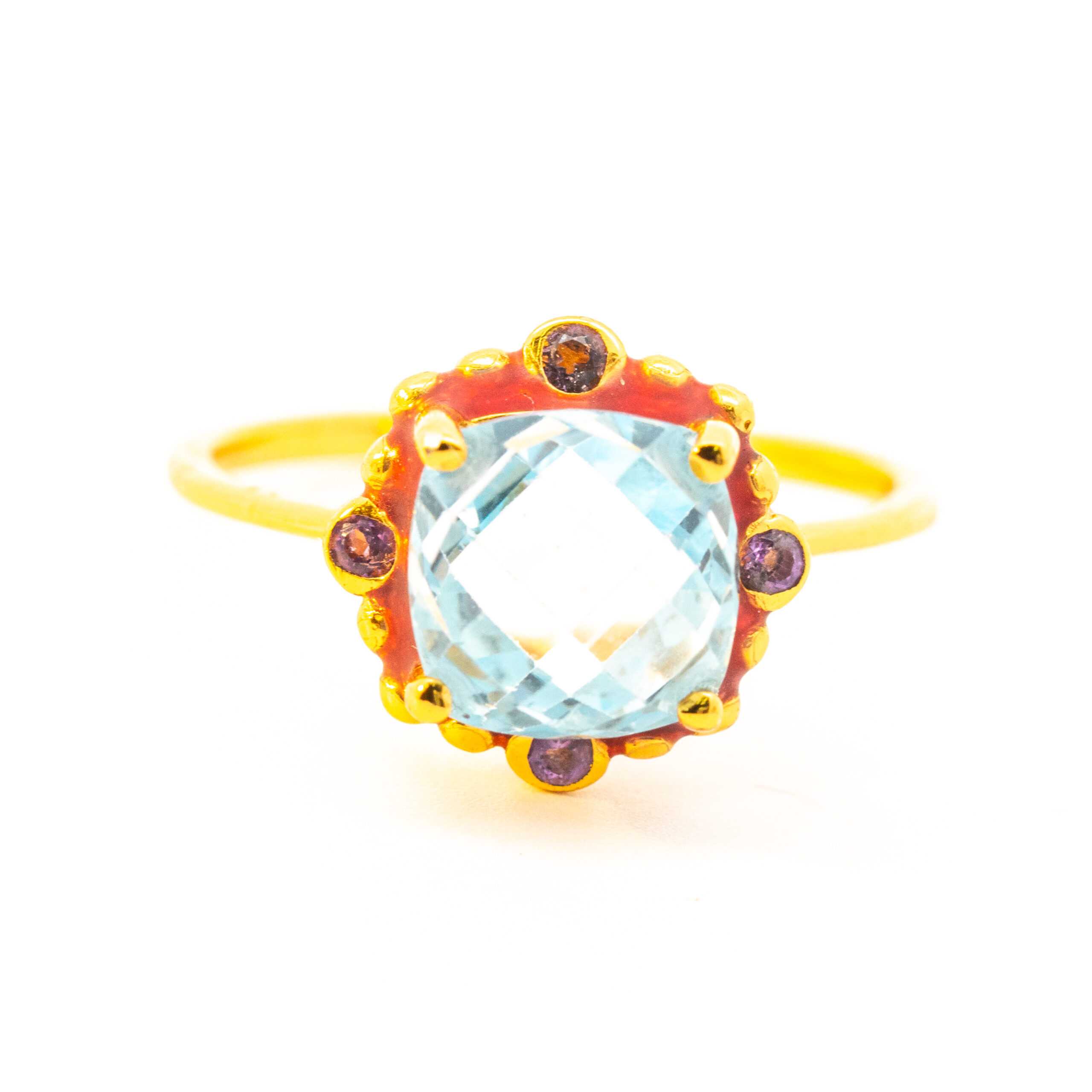 Sterling silver jewelry with 22k gold plated, natural stone and enamel.