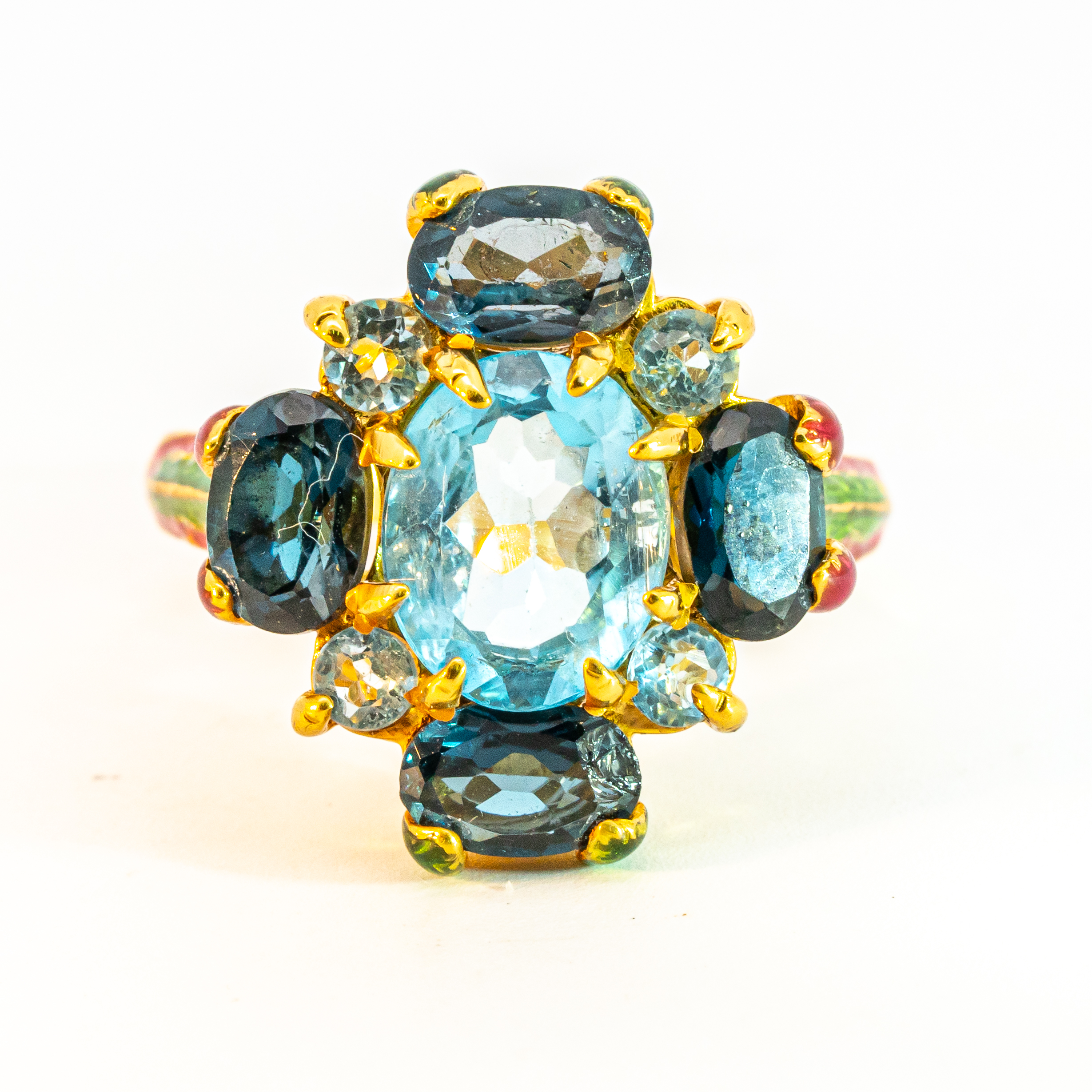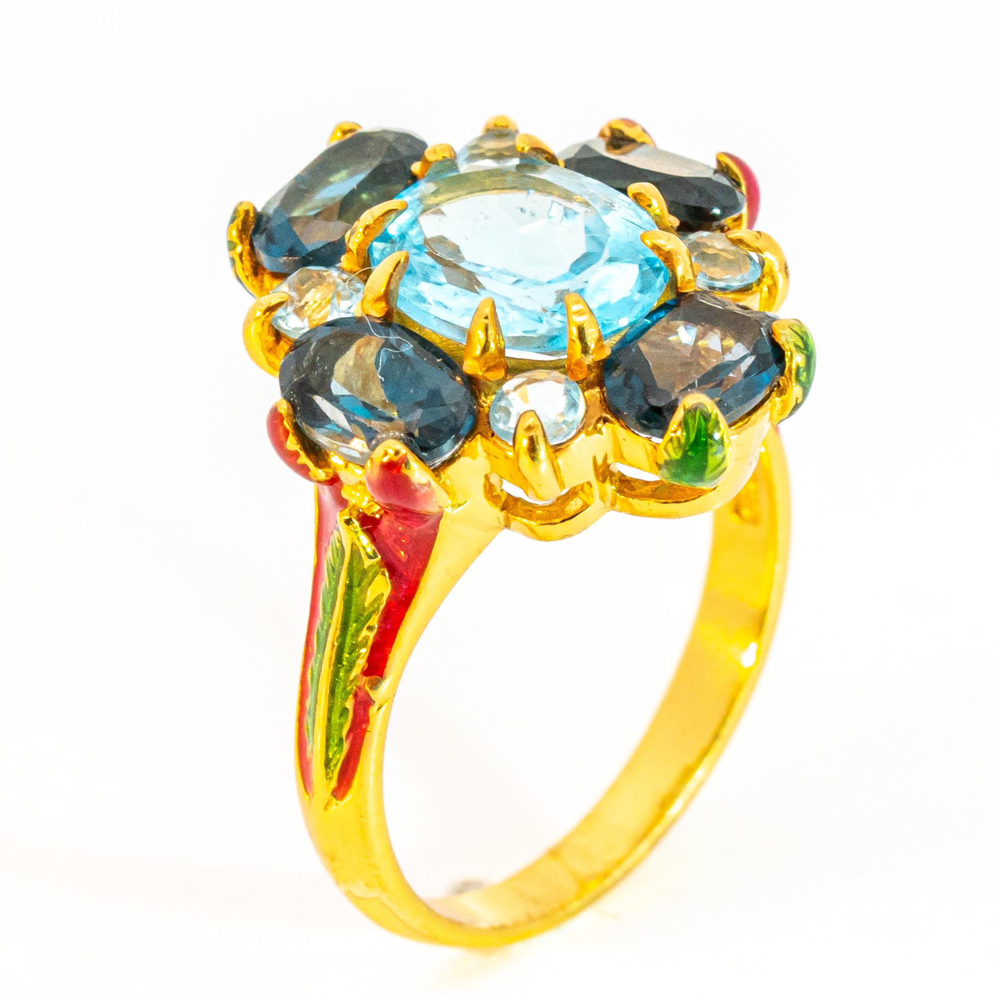 Sterling silver jewelry with 22k gold plated, natural stone and enamel.