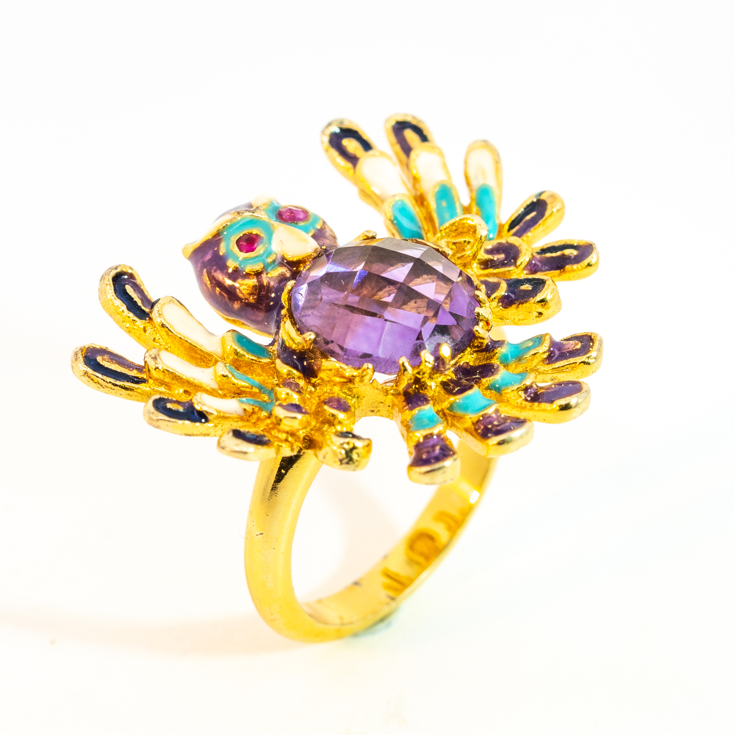 Sterling silver jewelry with 22k gold plated, natural stone and enamel.