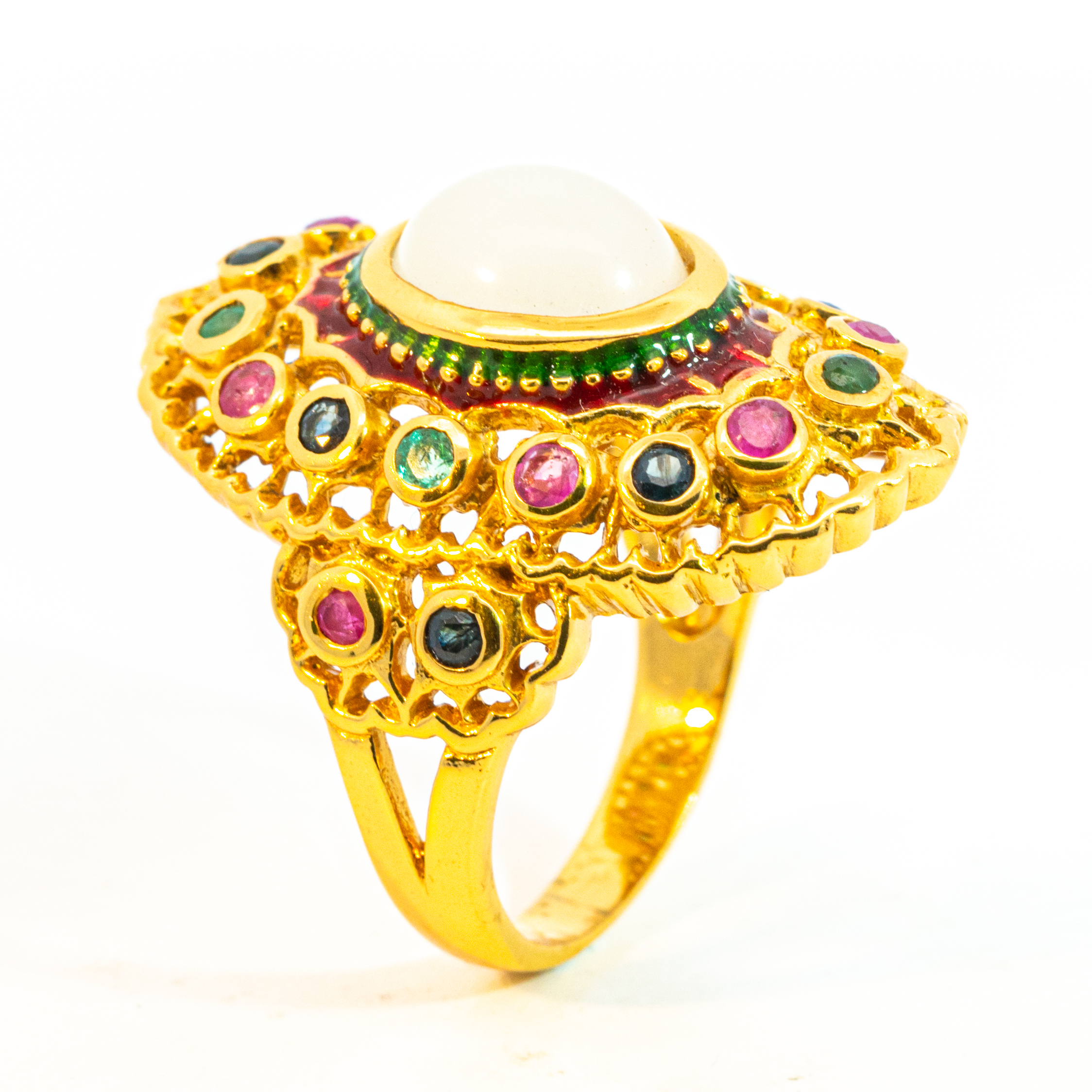 Sterling silver jewelry with 22k gold plated, natural stone and enamel.