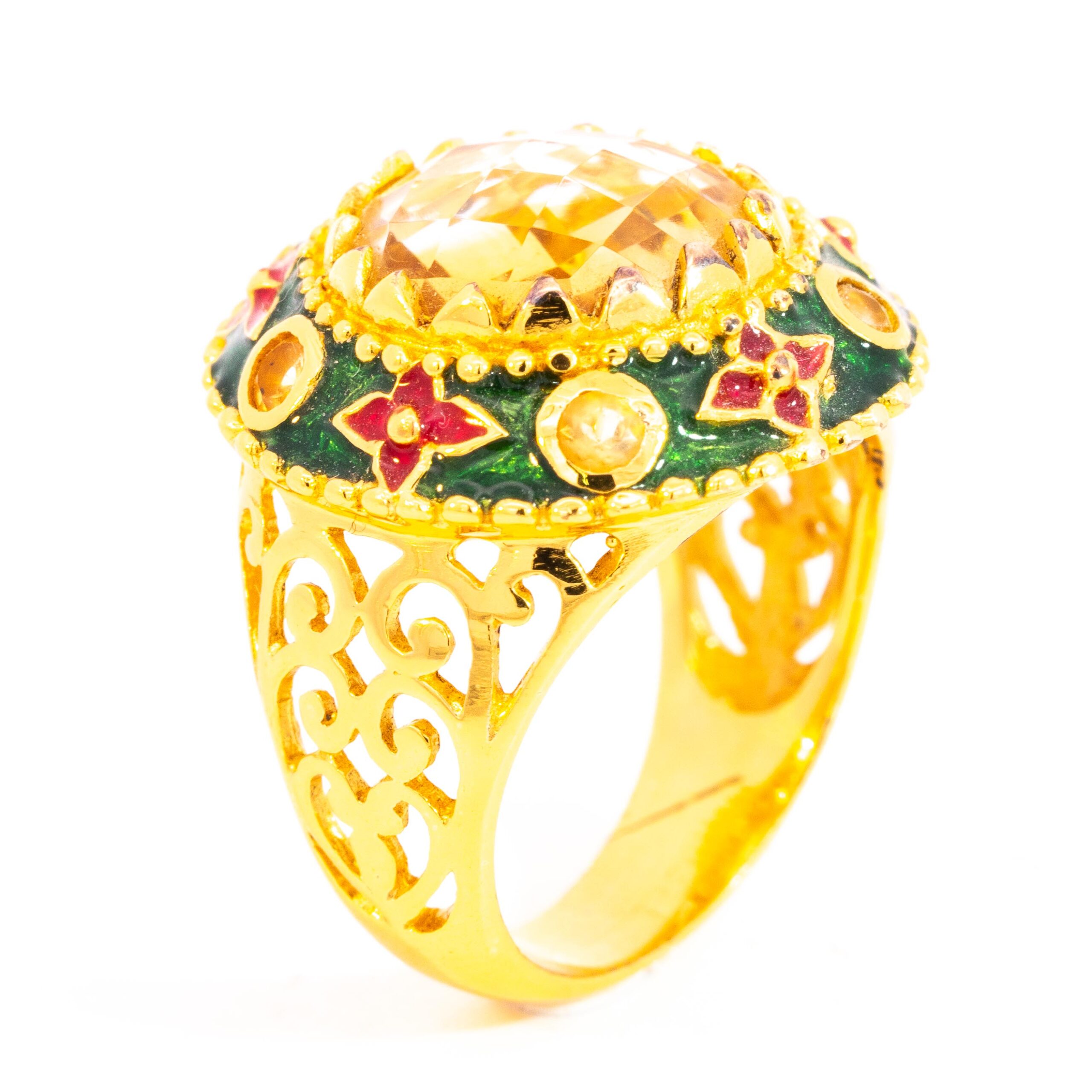 Sterling silver jewelry with 22k gold plated, natural stone and enamel.