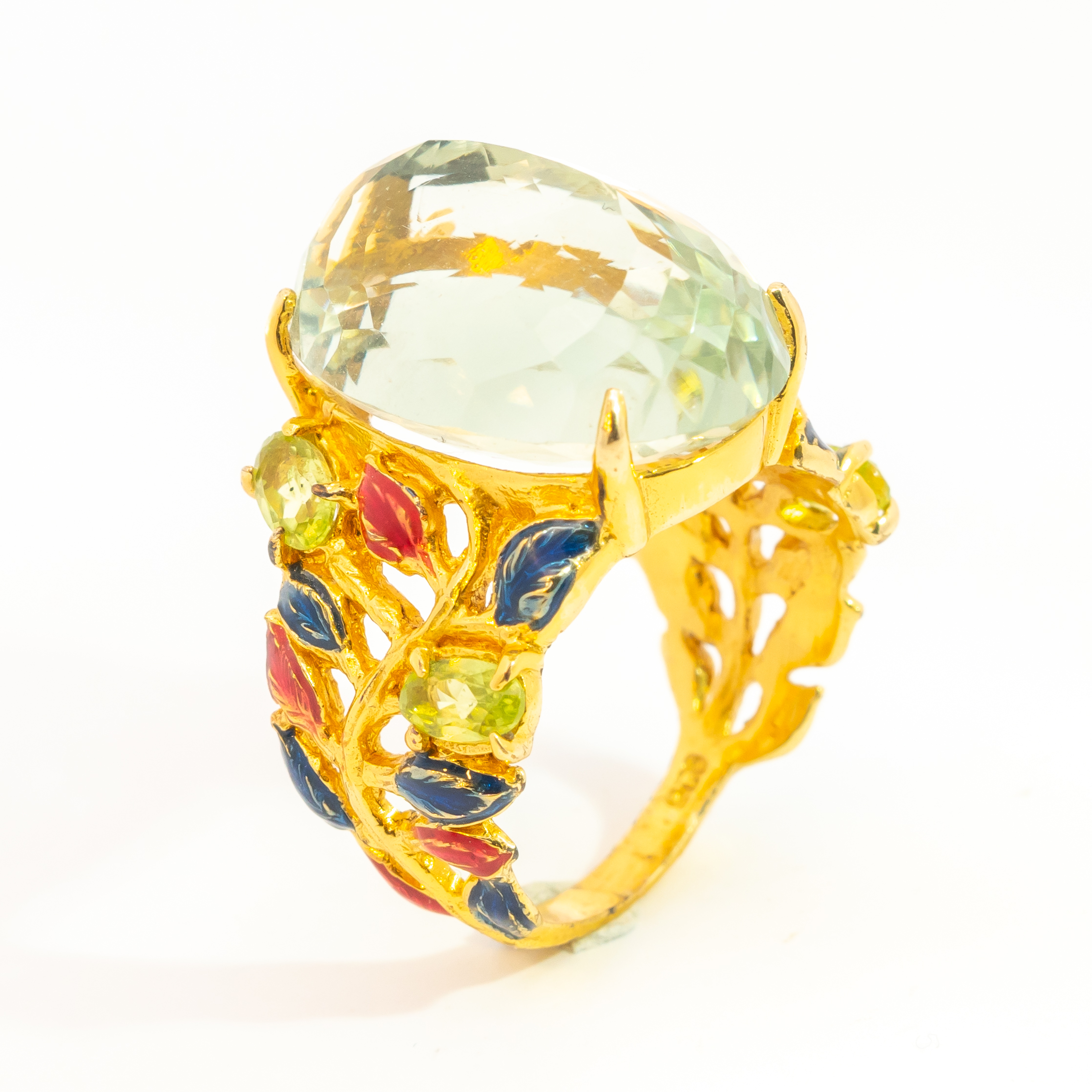 Sterling silver jewelry with 22k gold plated, natural stone and enamel.