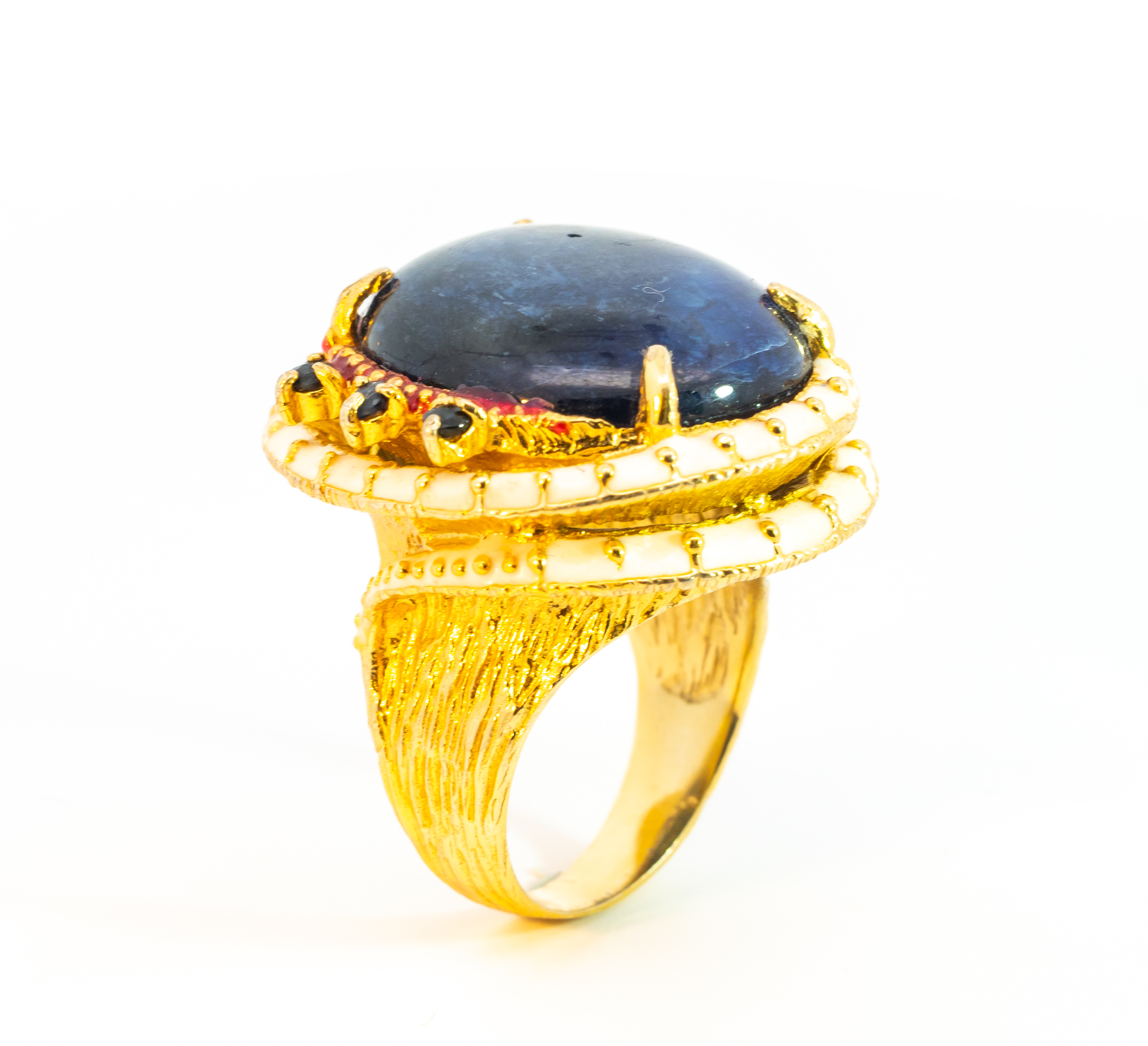 Sterling silver jewelry with 22k gold plated, natural stone and enamel.