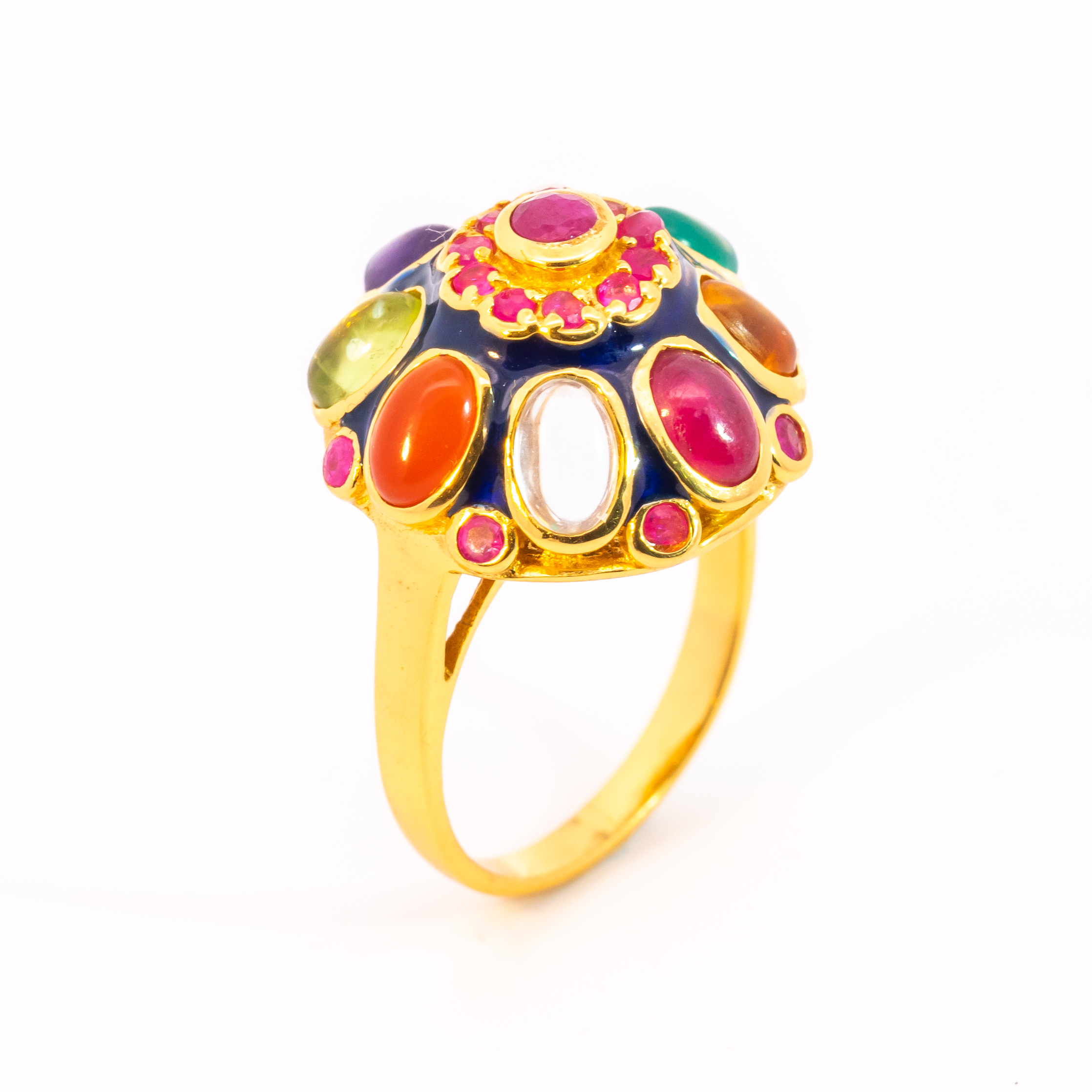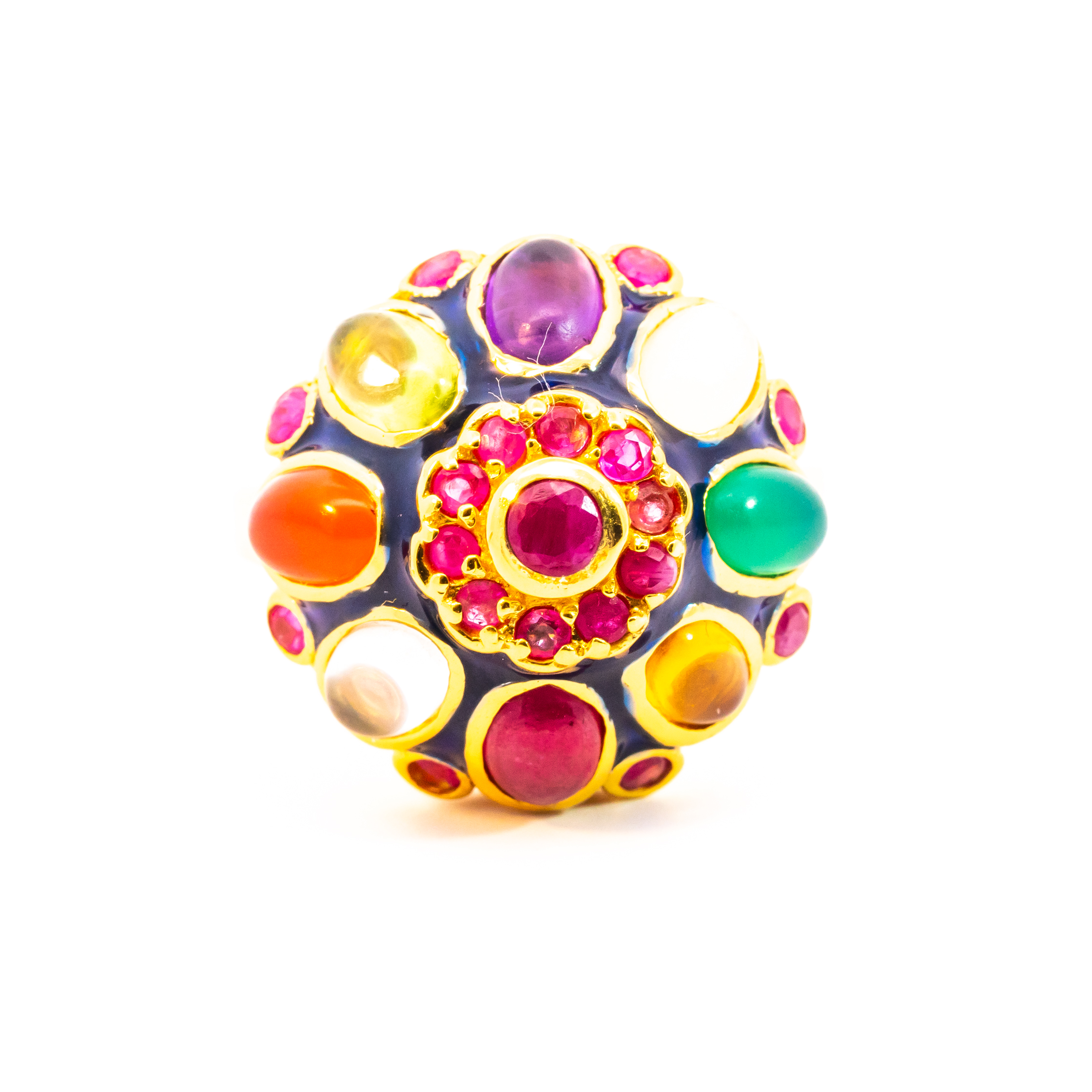 Sterling silver jewelry with 22k gold plated, natural stone and enamel.