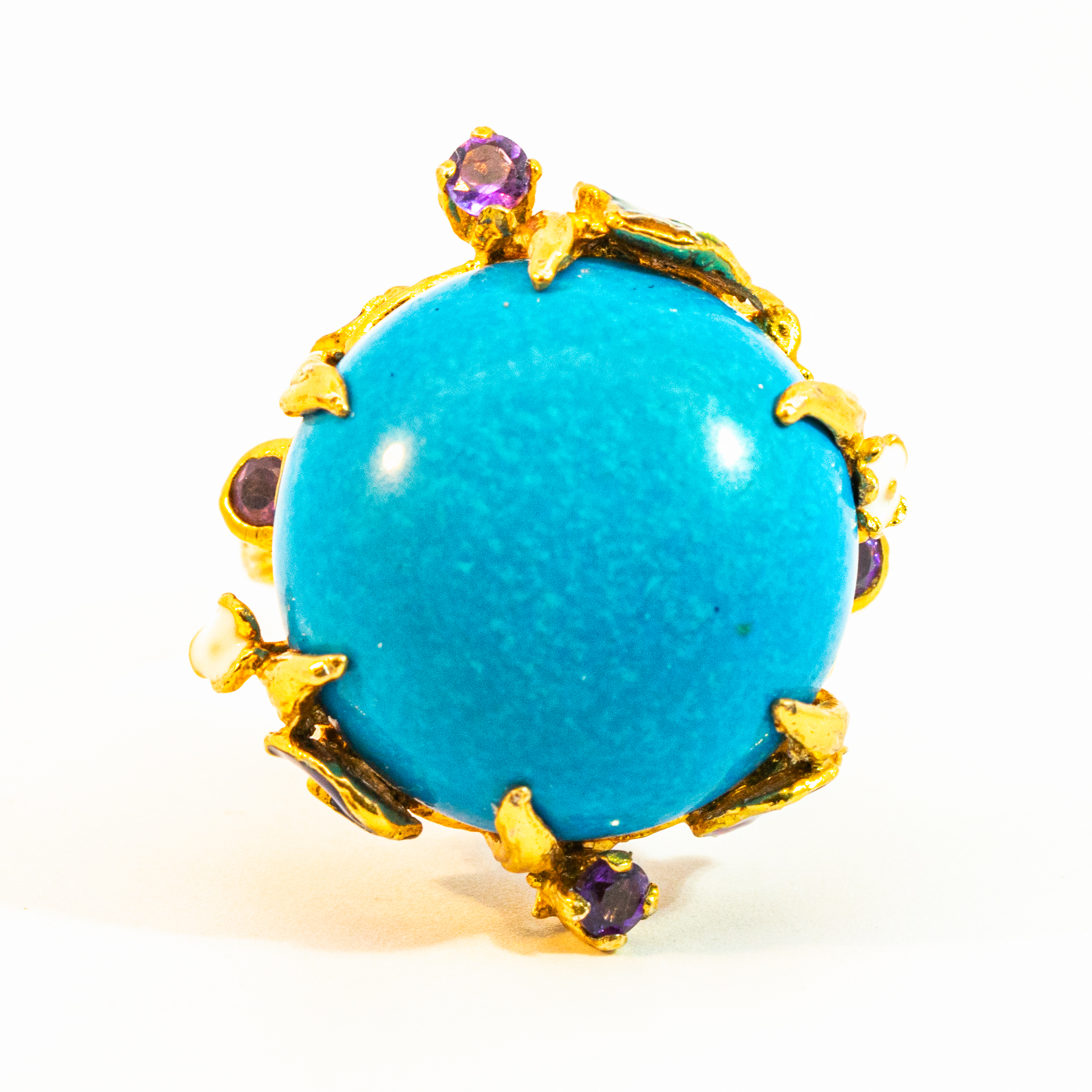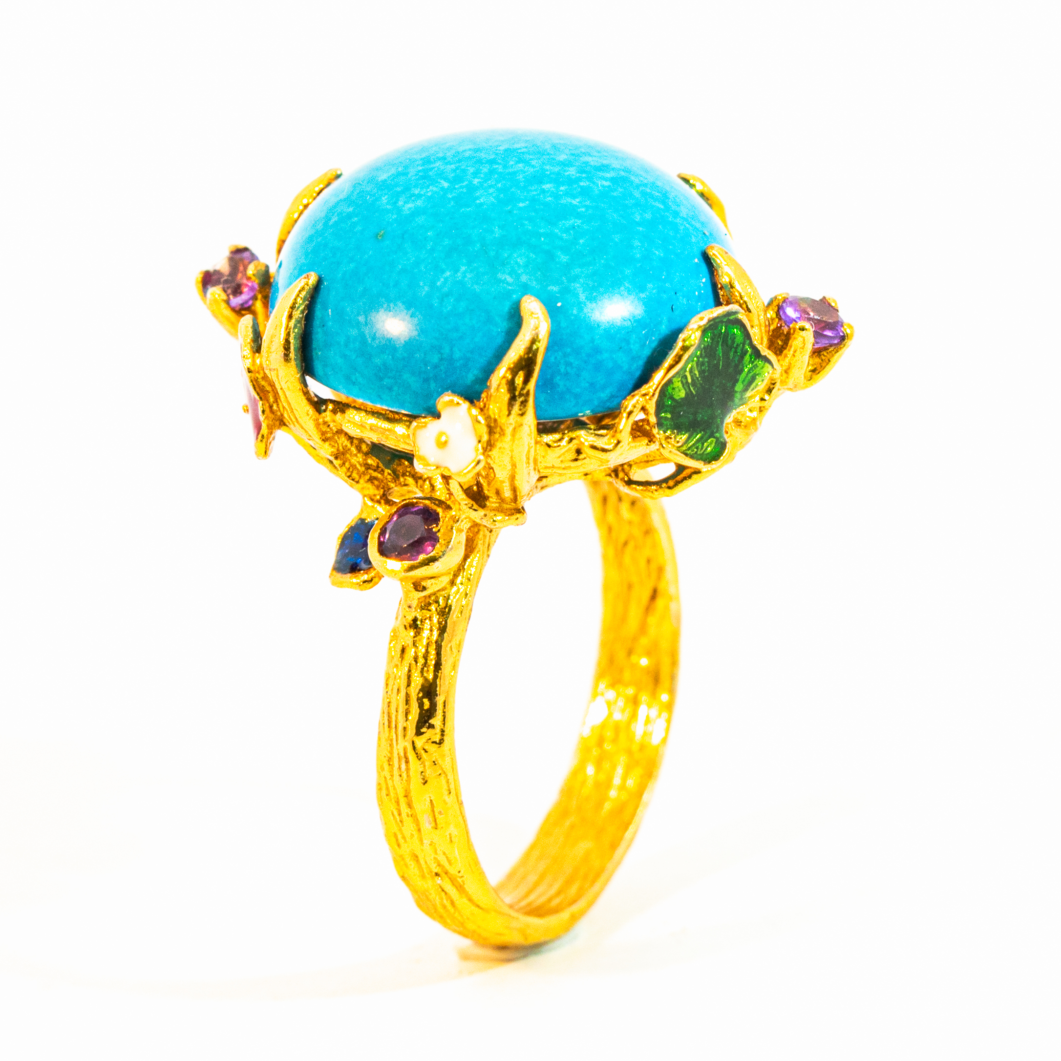Sterling silver jewelry with 22k gold plated, natural stone and enamel.