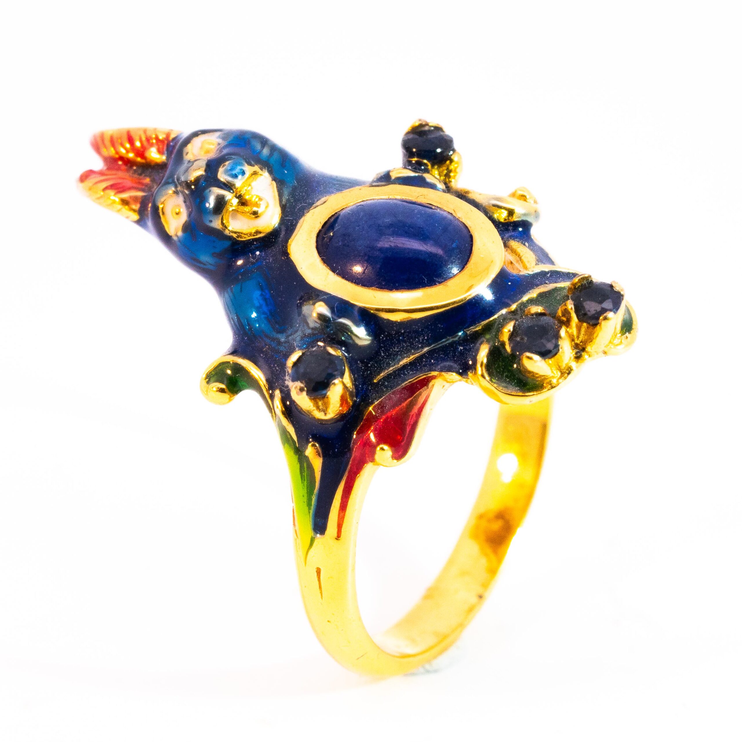 Sterling silver jewelry with 22k gold plated, natural stone and enamel.