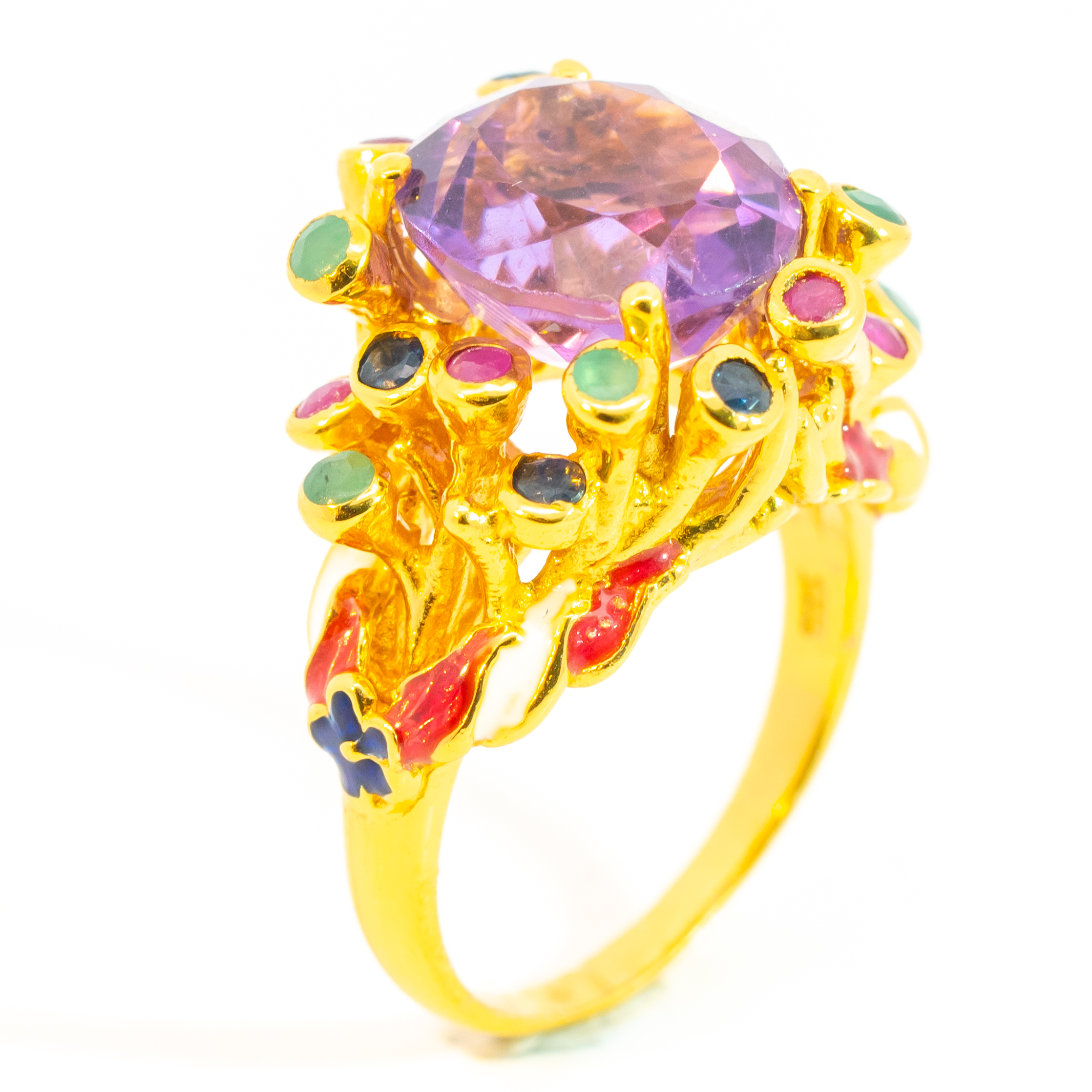 Sterling silver jewelry with 22k gold plated, natural stone and enamel.