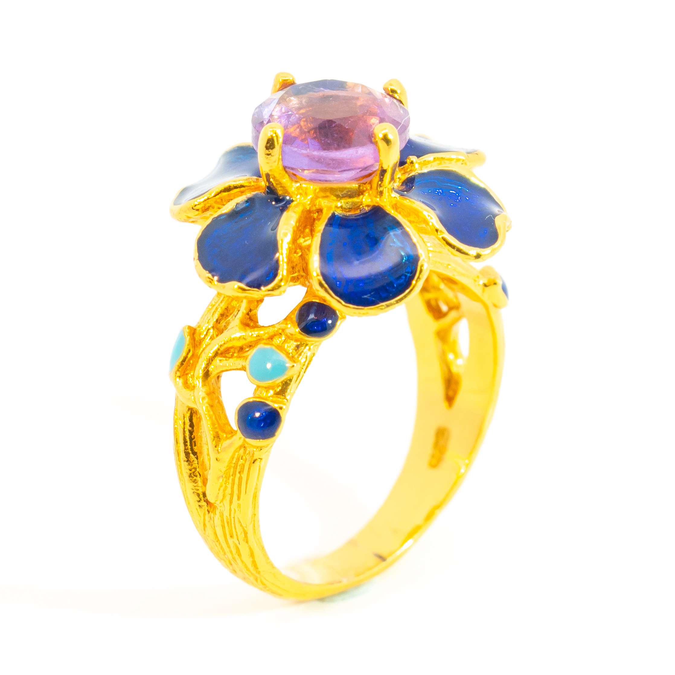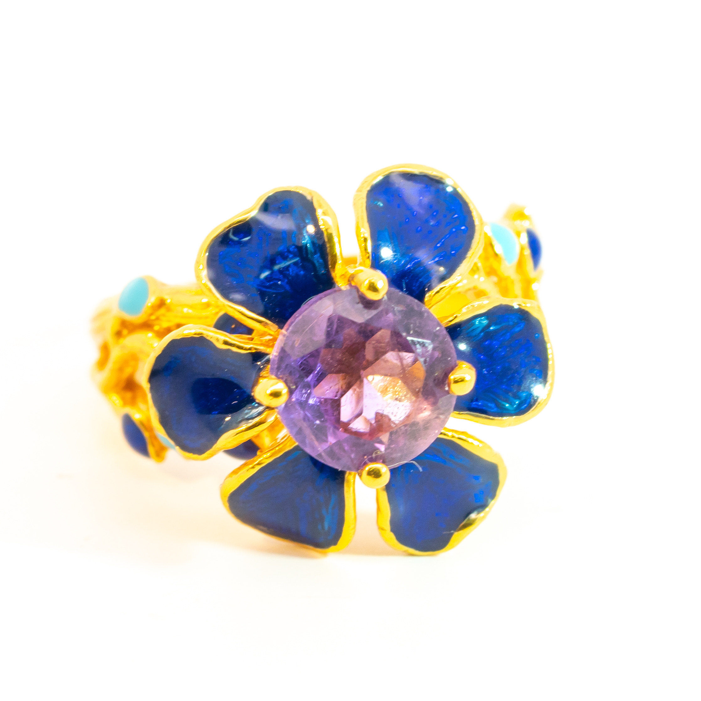 Sterling silver jewelry with 22k gold plated, natural stone and enamel.