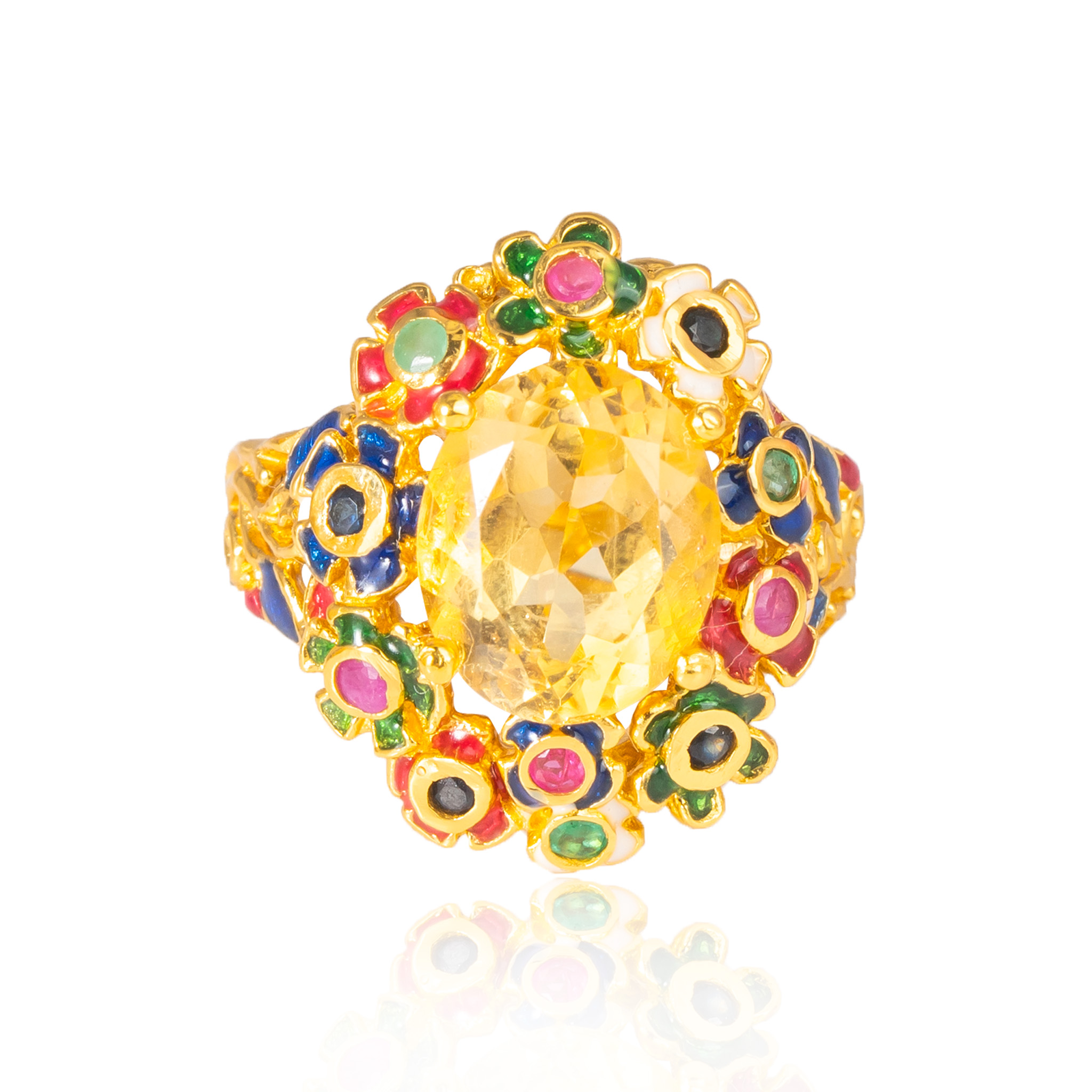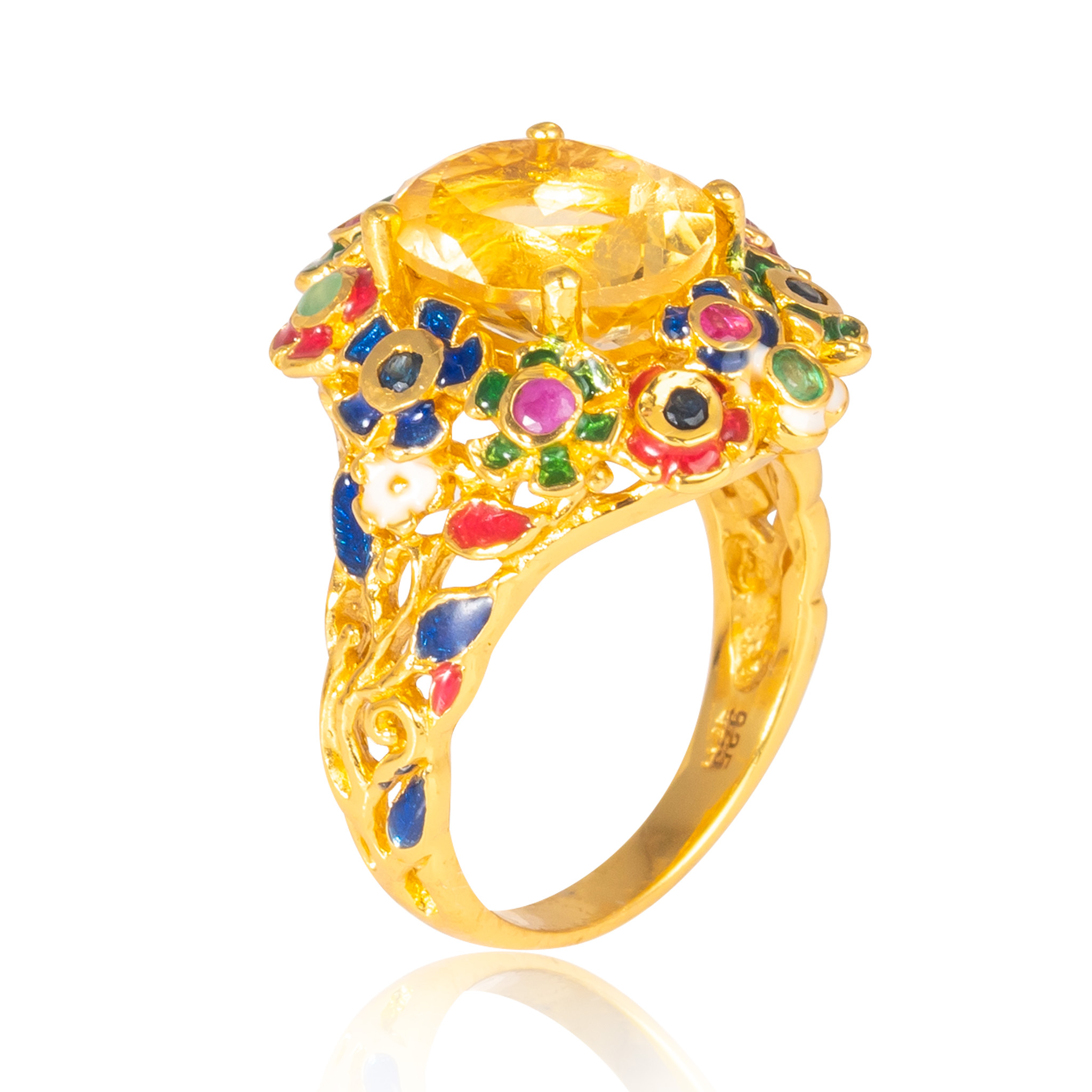 Sterling silver jewelry with 22k gold plated, natural stone and enamel.