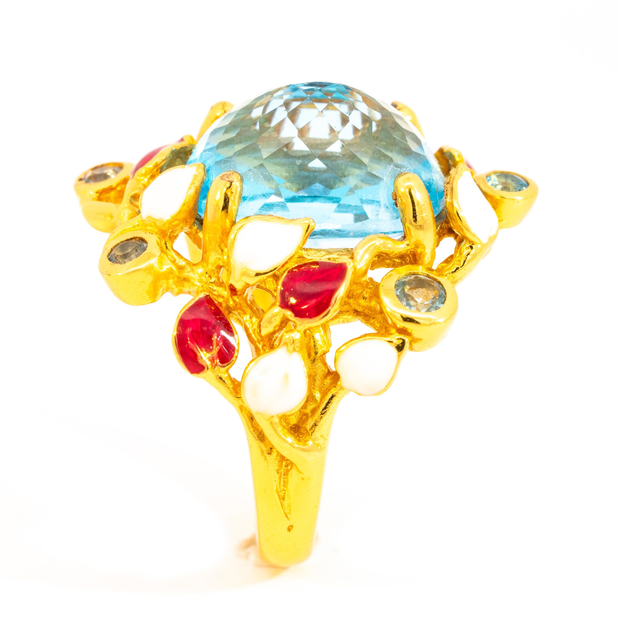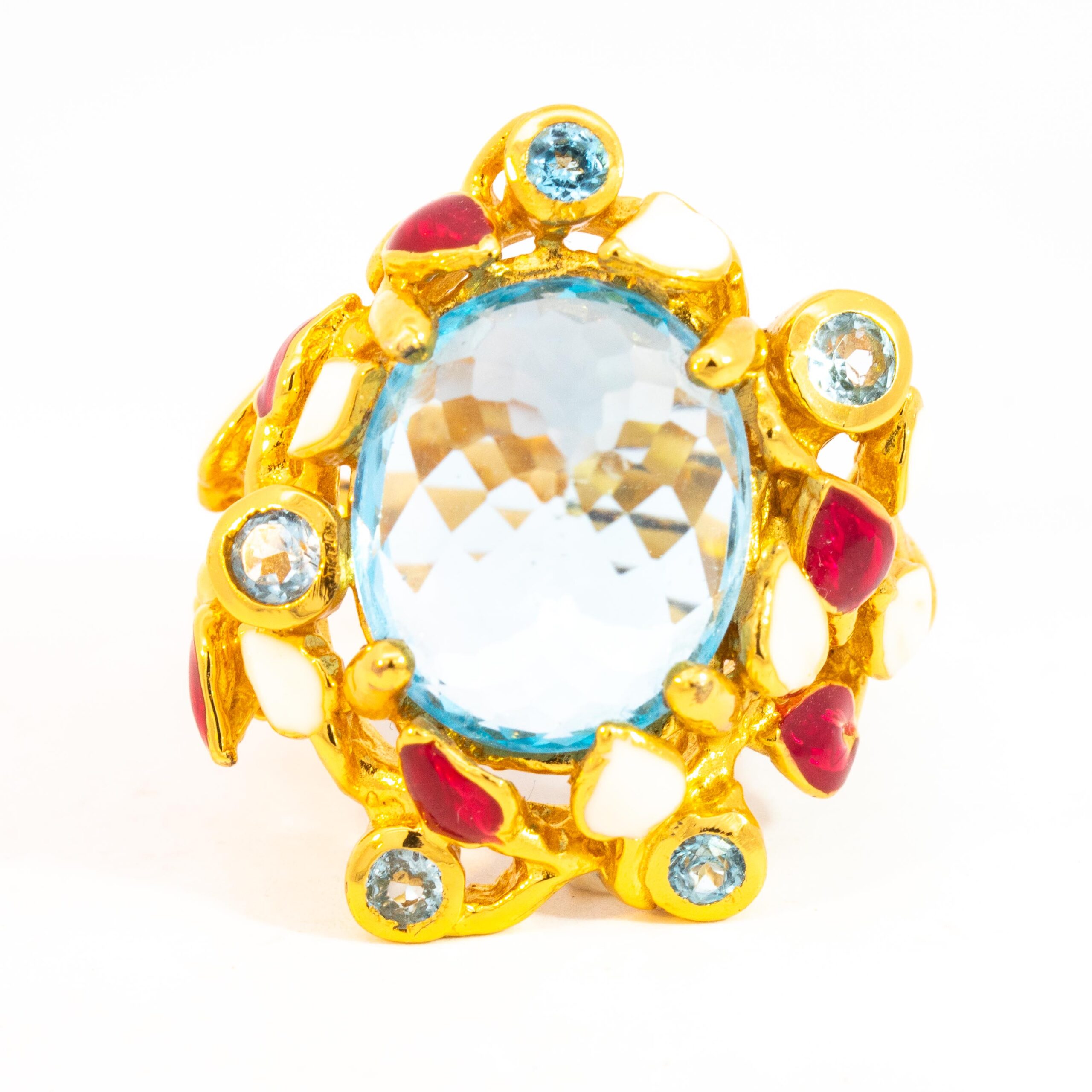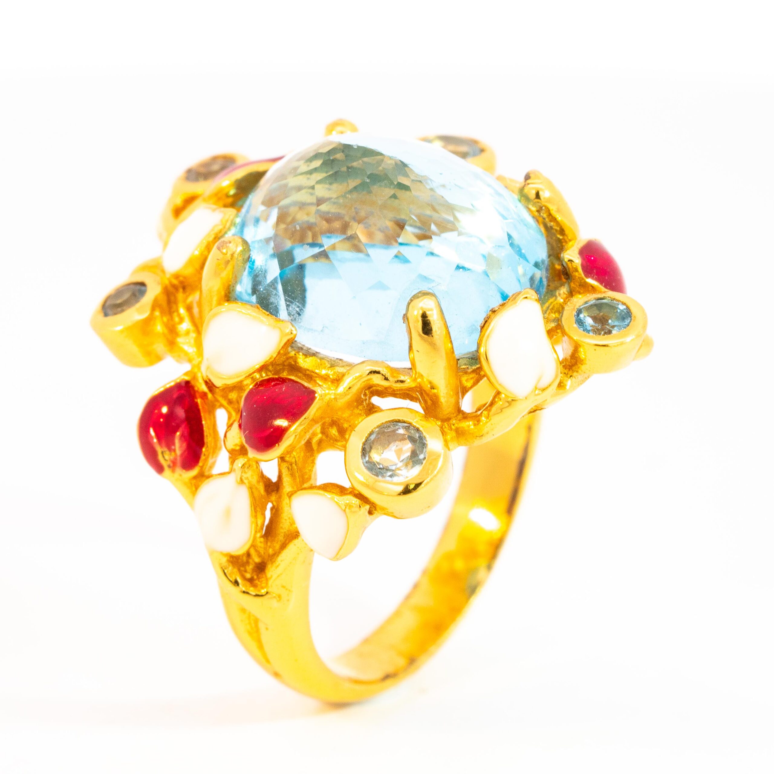 Sterling silver jewelry with 22k gold plated, natural stone and enamel.