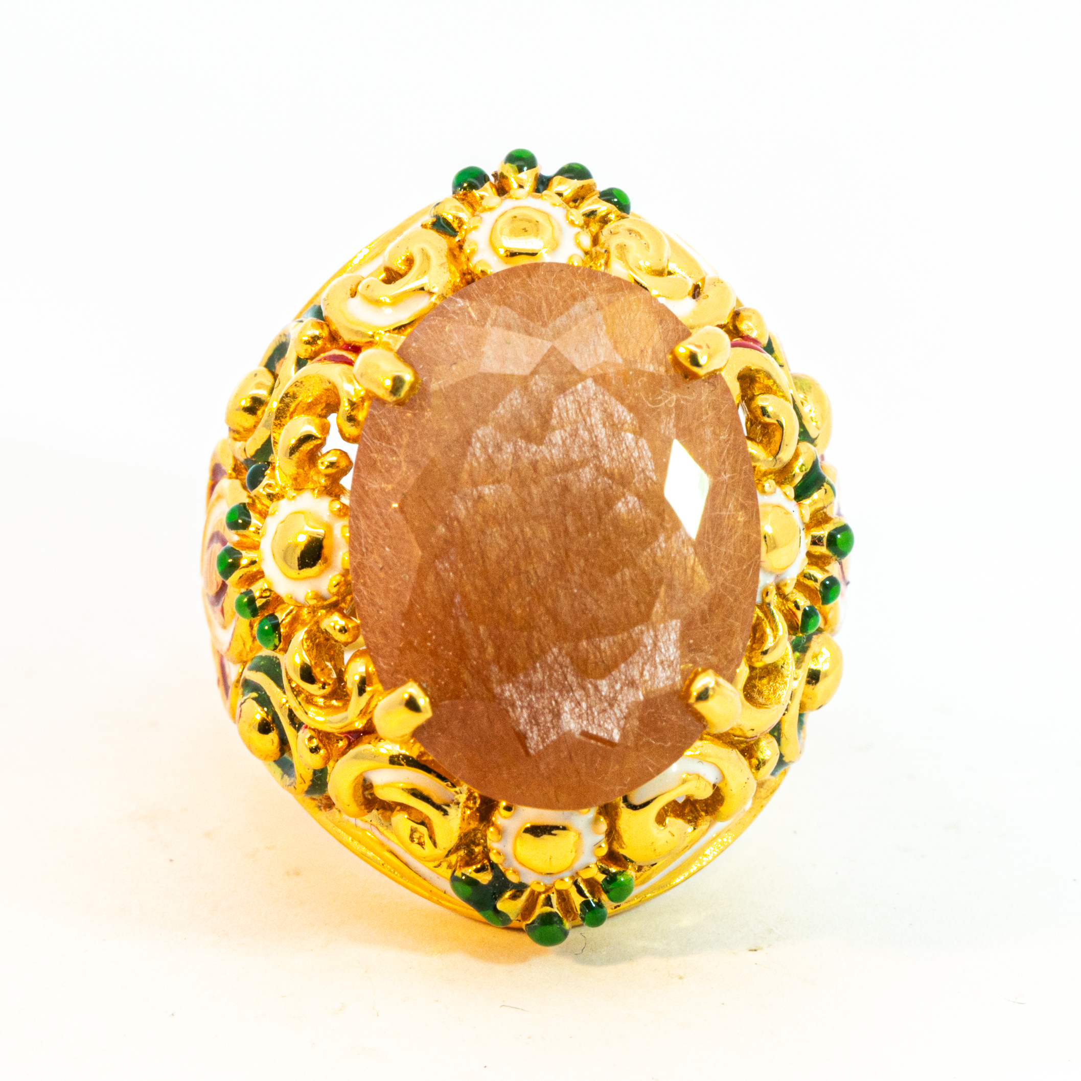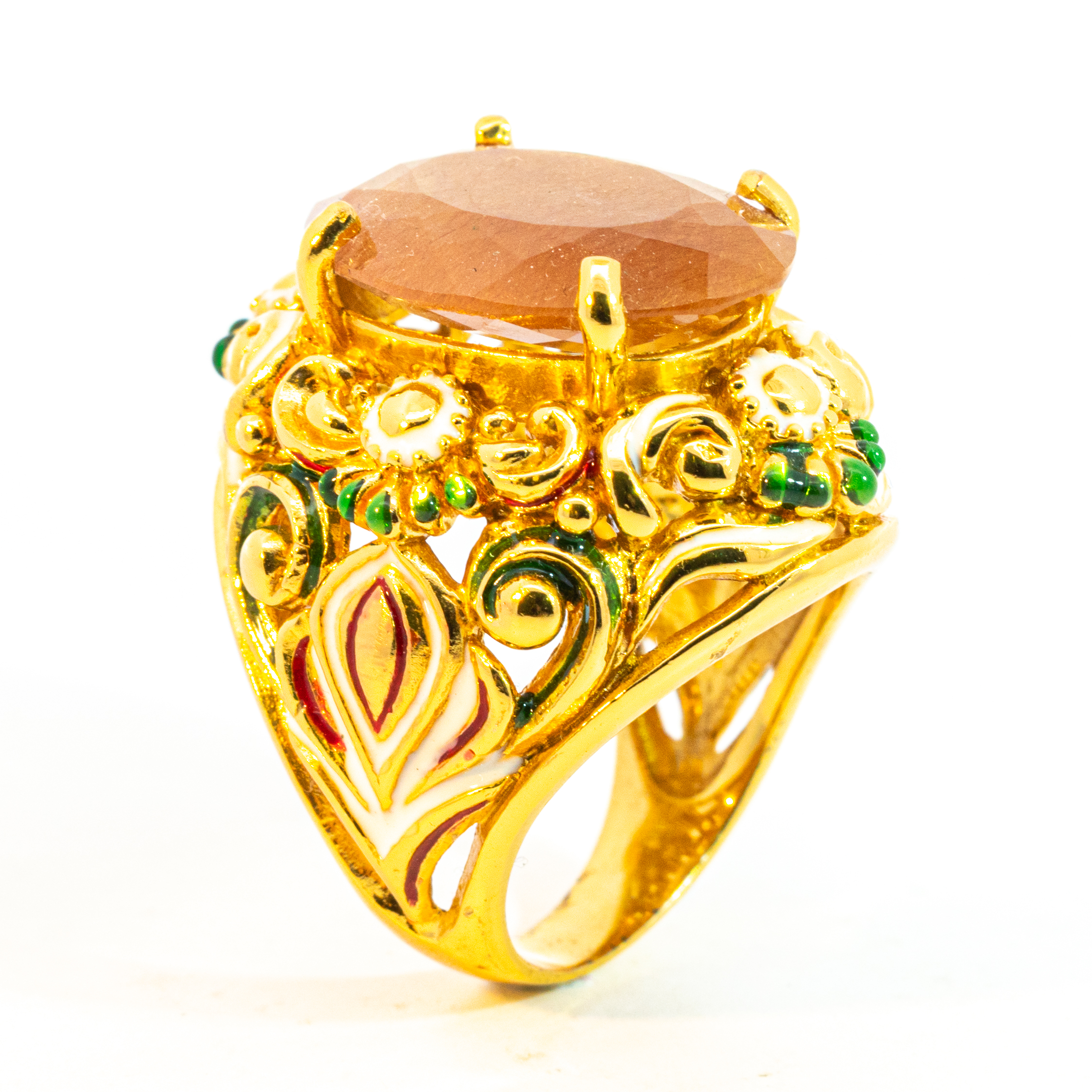 Sterling silver jewelry with 22k gold plated, natural stone and enamel.