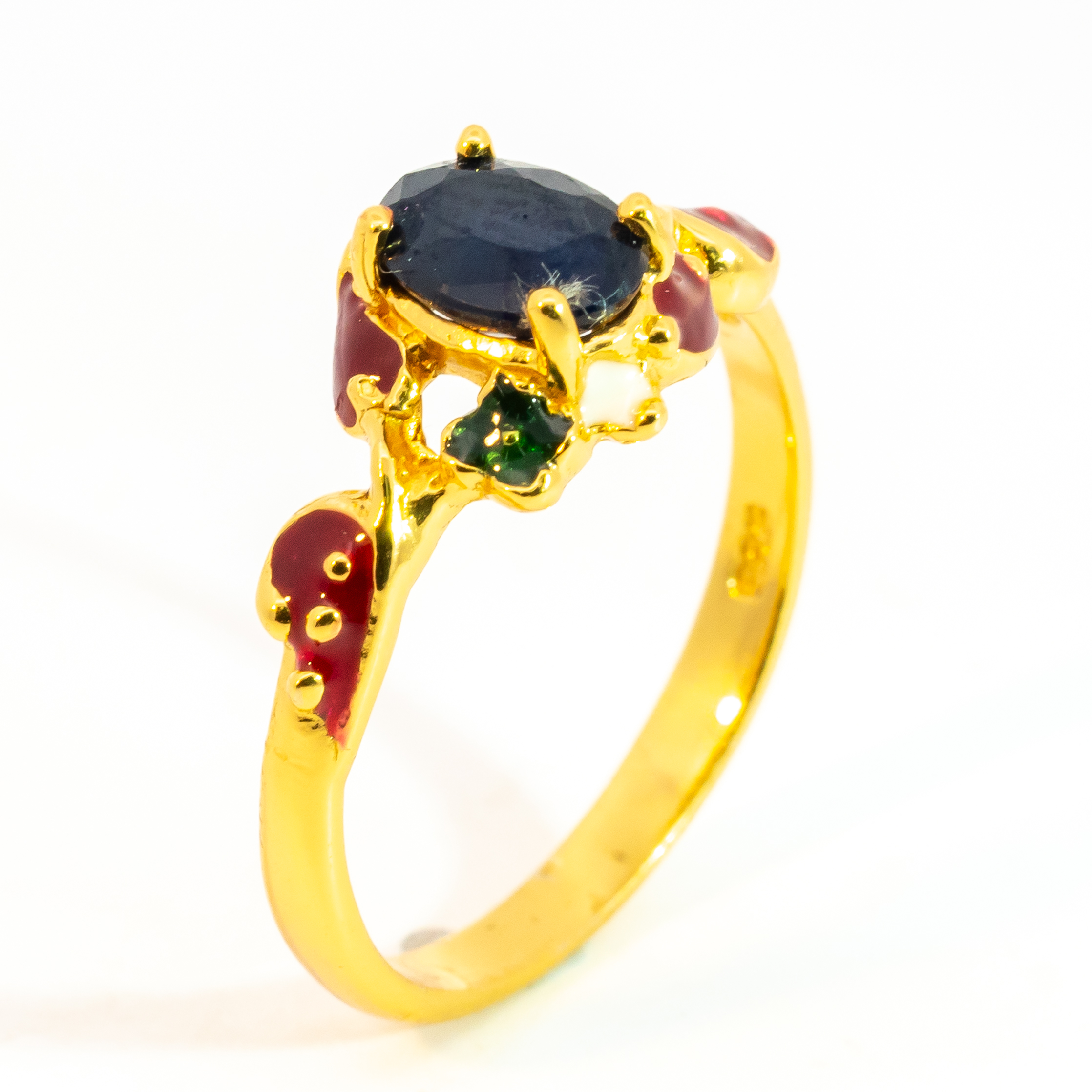Sterling silver jewelry with 22k gold plated, natural stone and enamel.