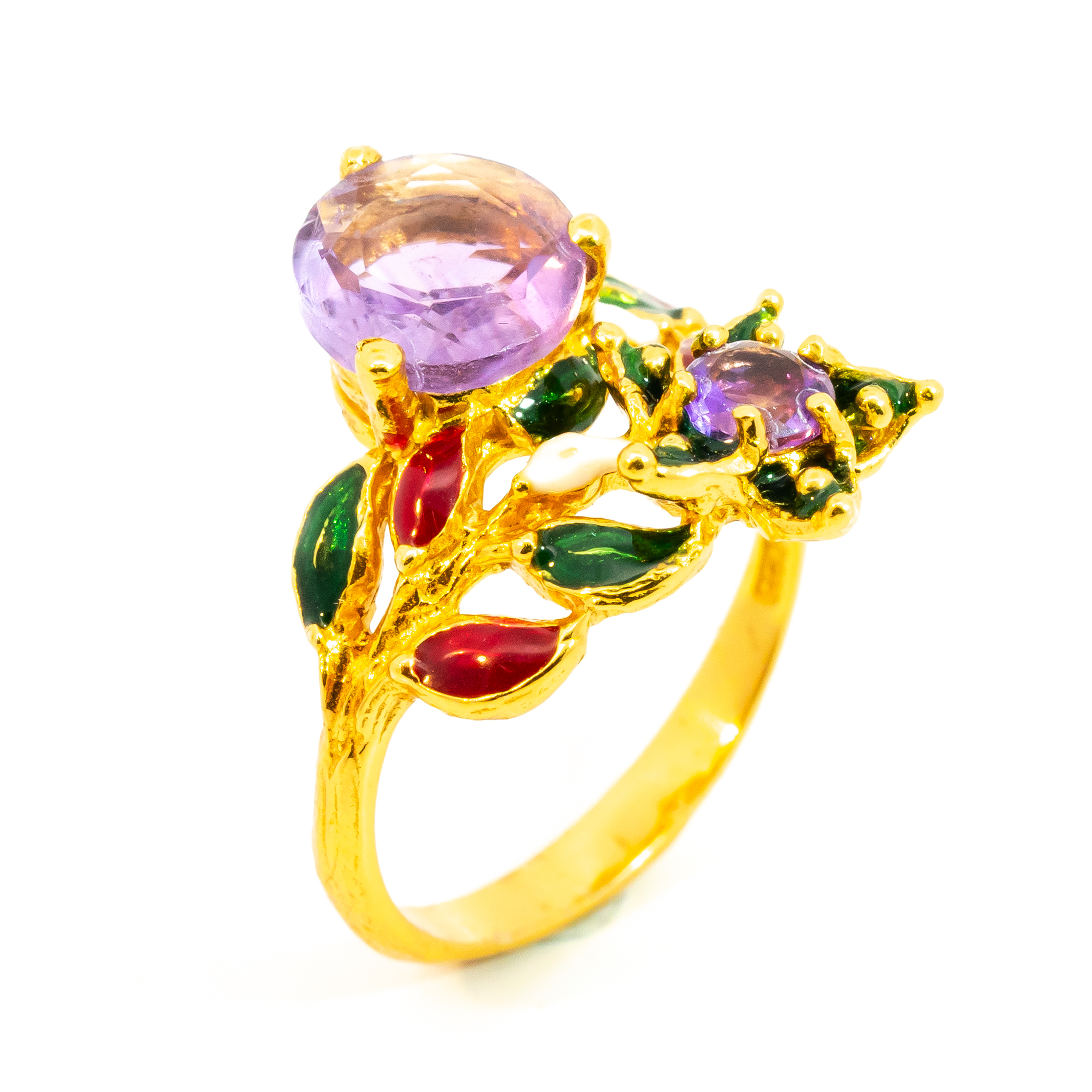 Sterling silver jewelry with 22k gold plated, natural stone and enamel.