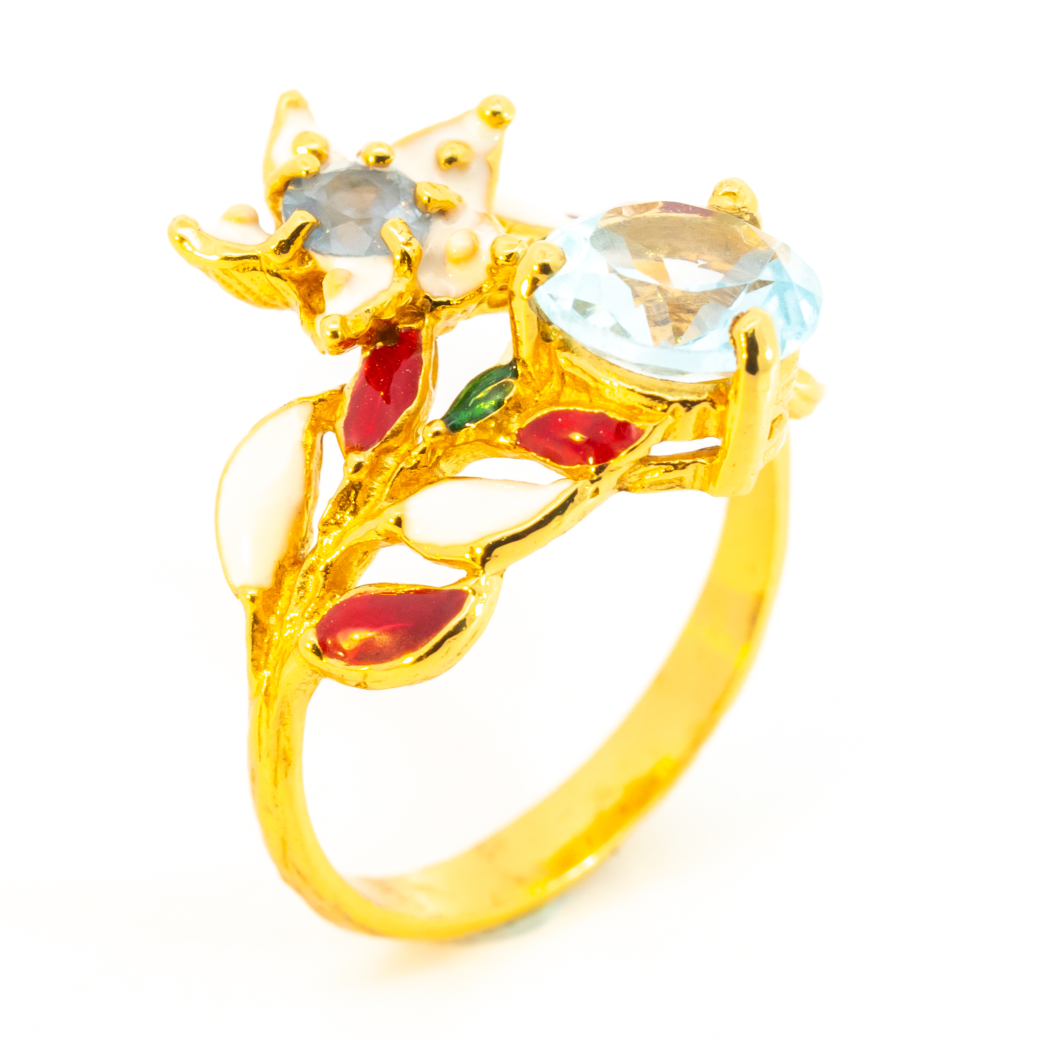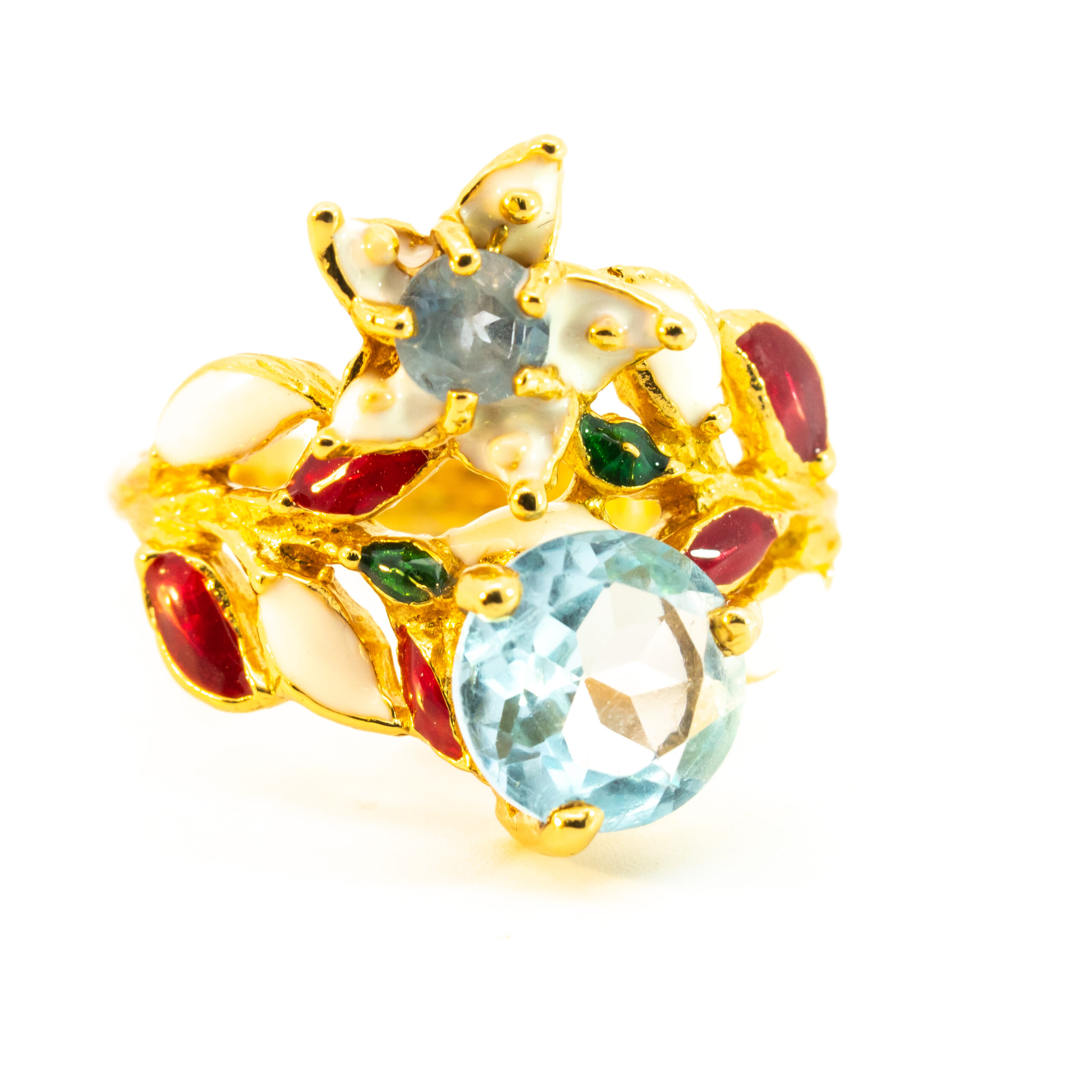 Sterling silver jewelry with 22k gold plated, natural stone and enamel.
