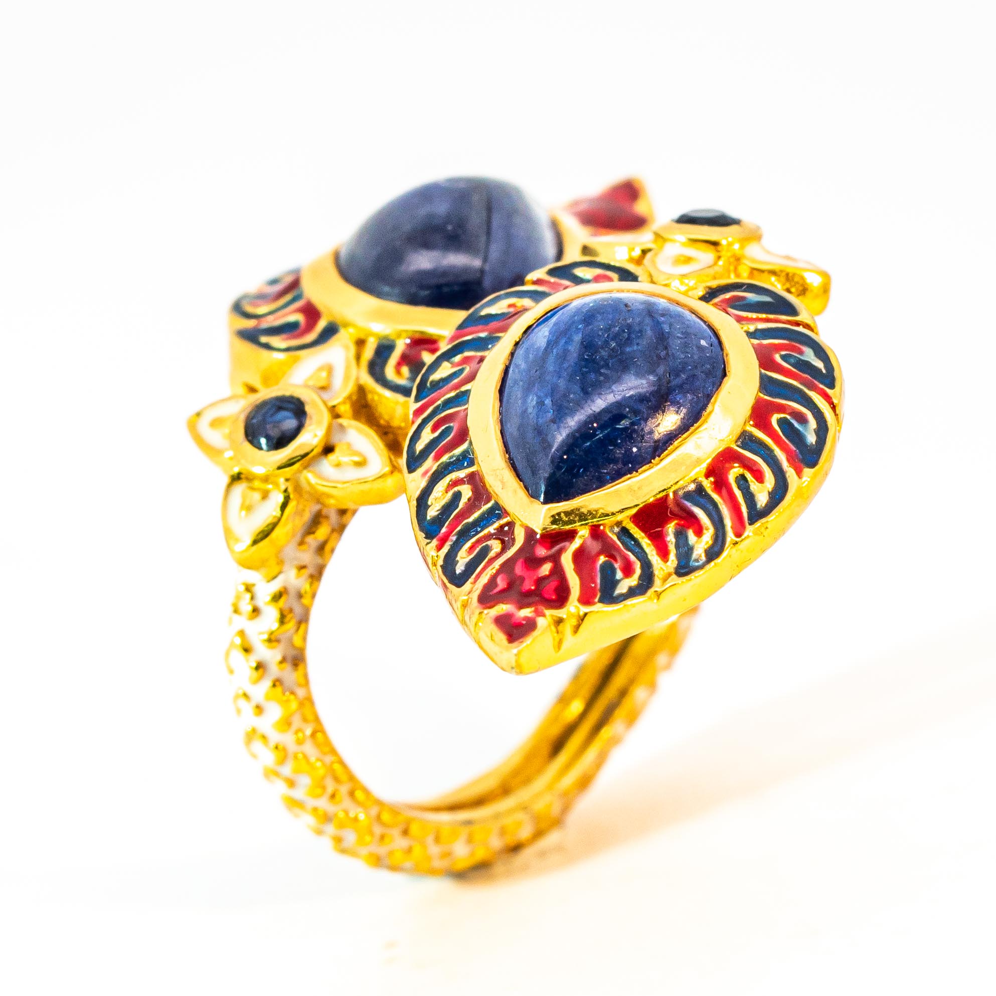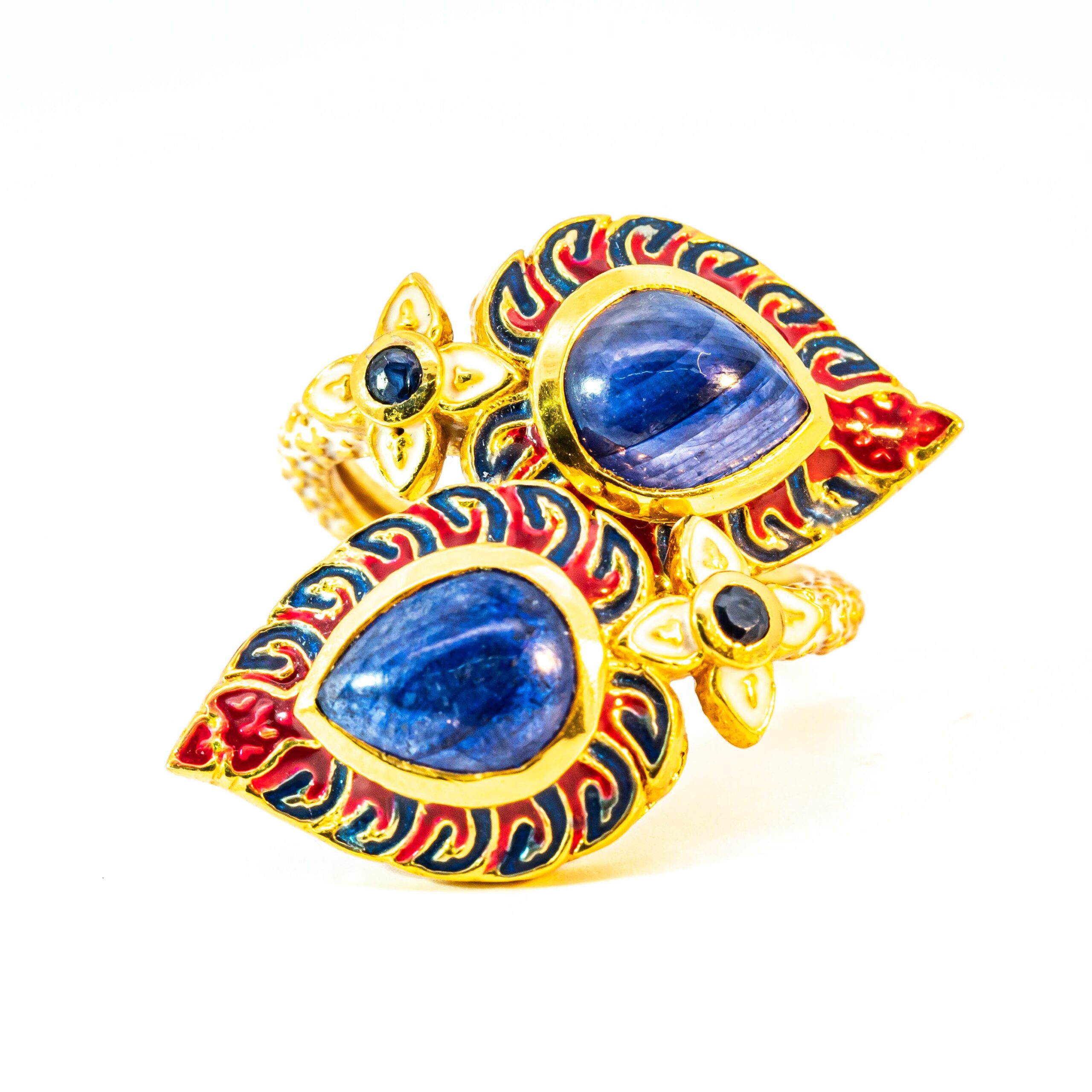 Sterling silver jewelry with 22k gold plated, natural stone and enamel.