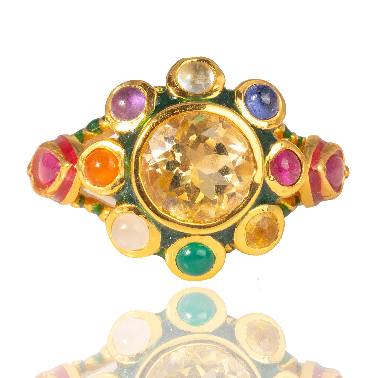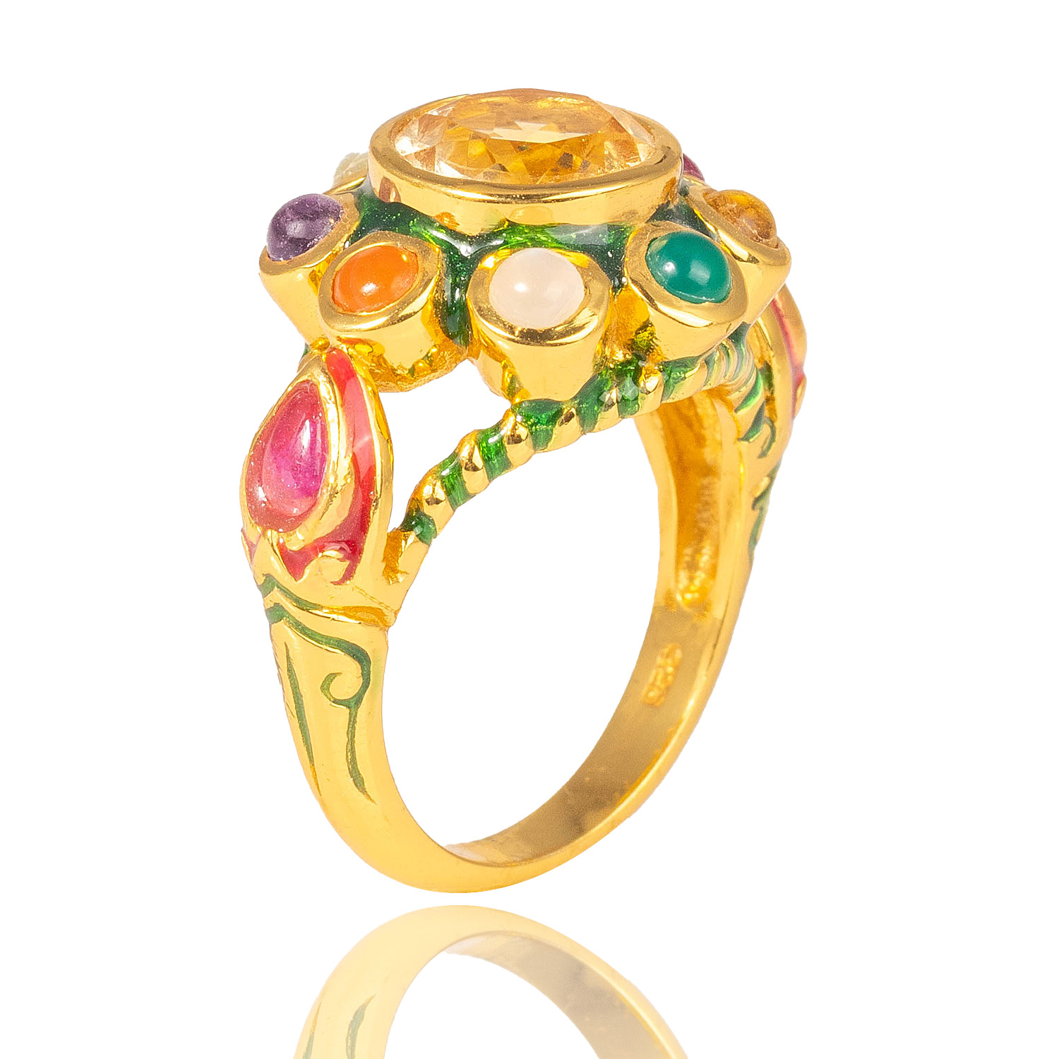 Sterling silver jewelry with 22k gold plated, natural stone and enamel.