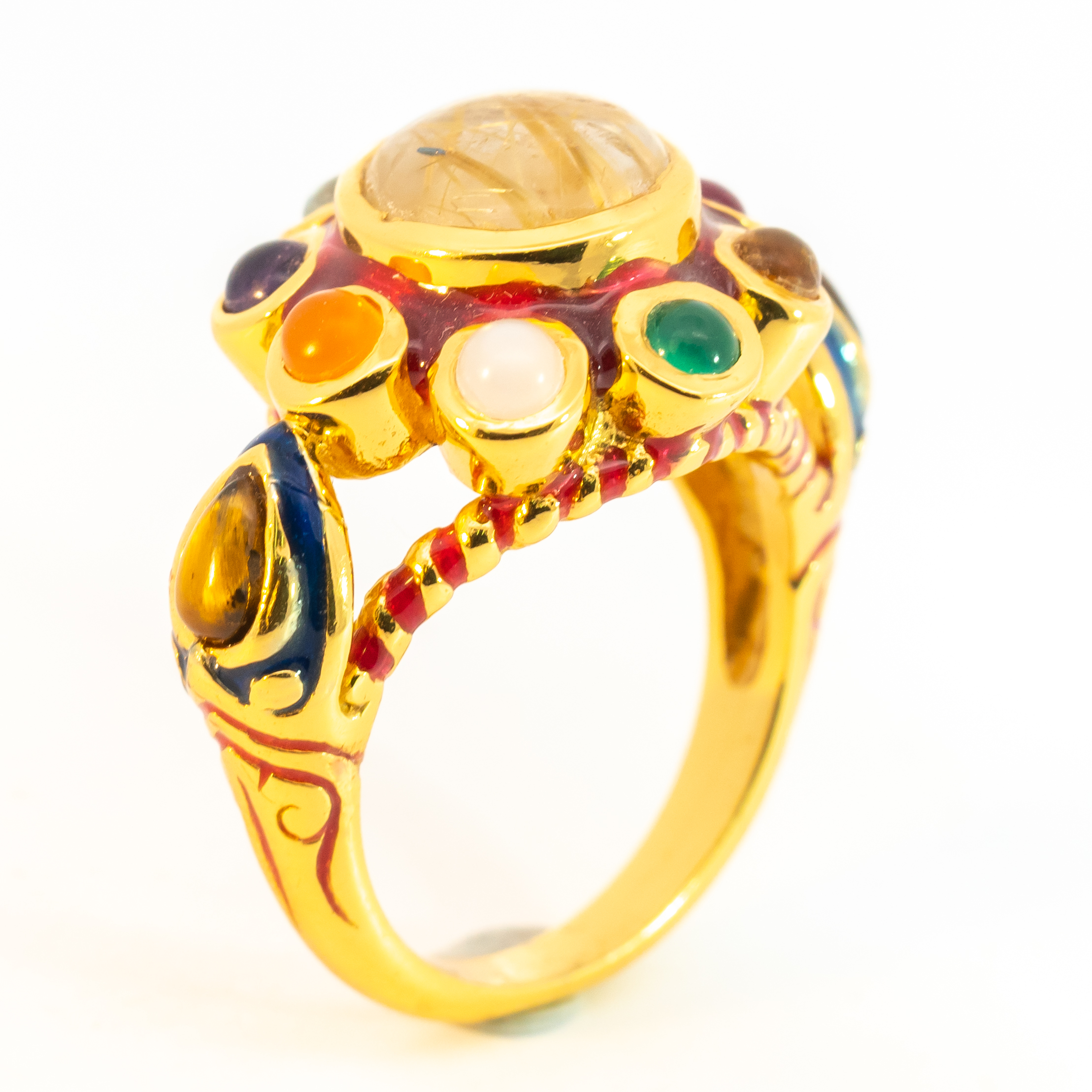 Sterling silver jewelry with 22k gold plated, natural stone and enamel.