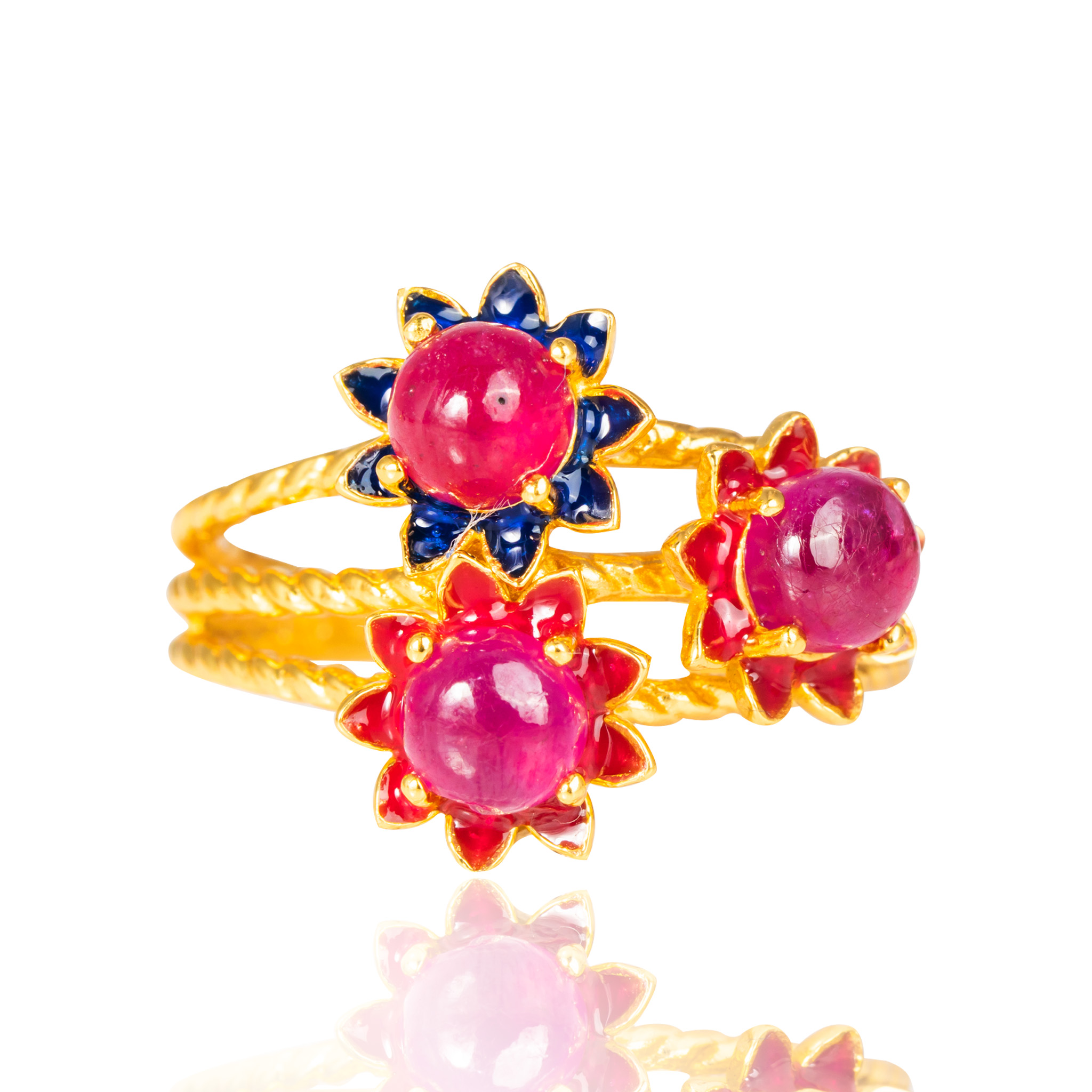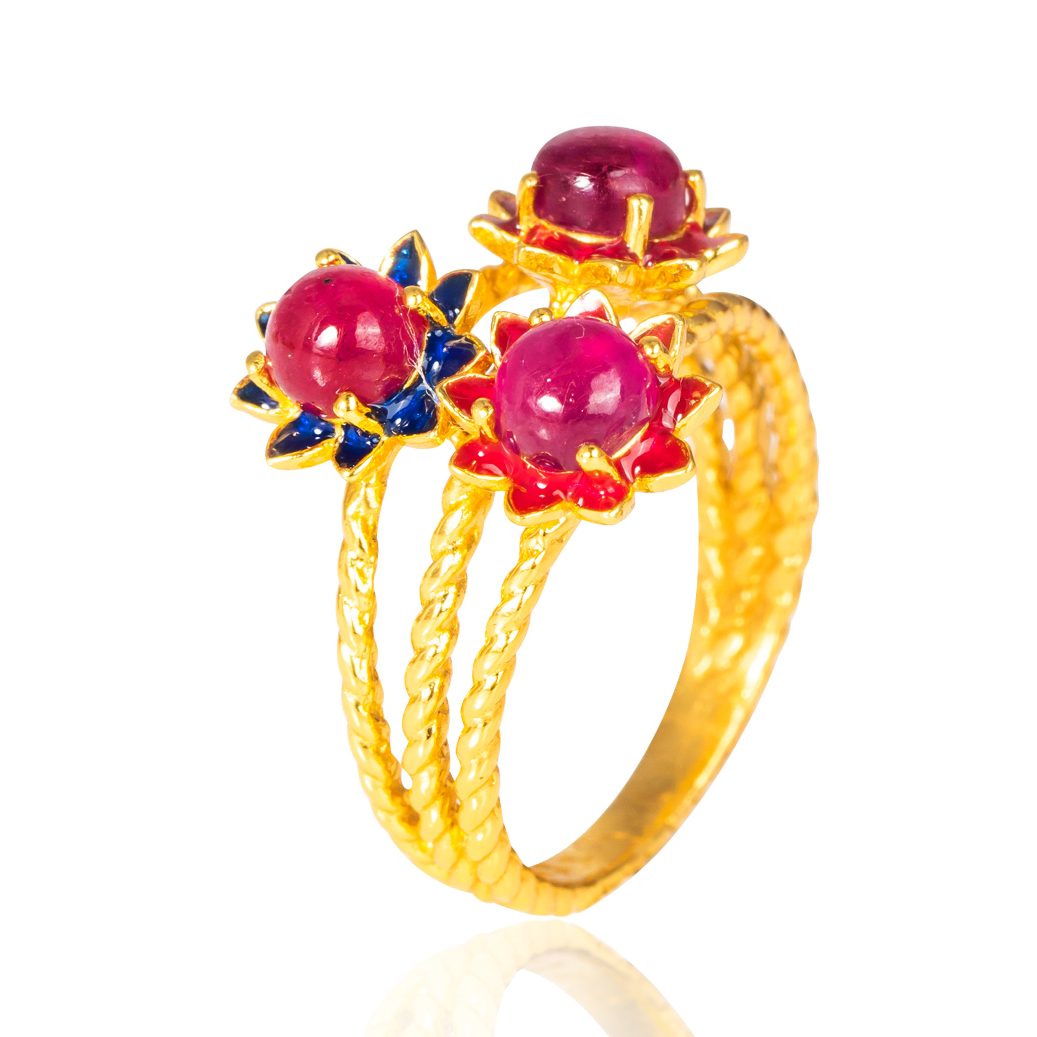 Sterling silver jewelry with 22k gold plated, natural stone and enamel.
