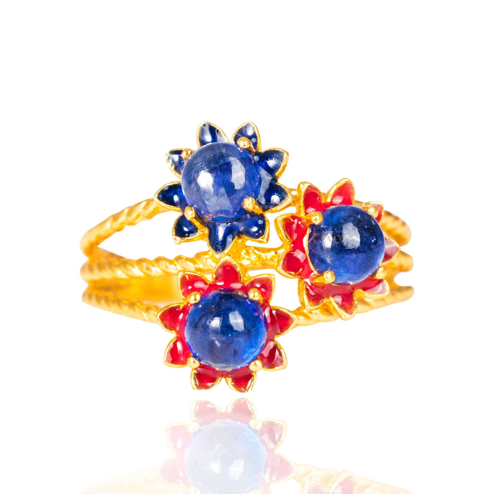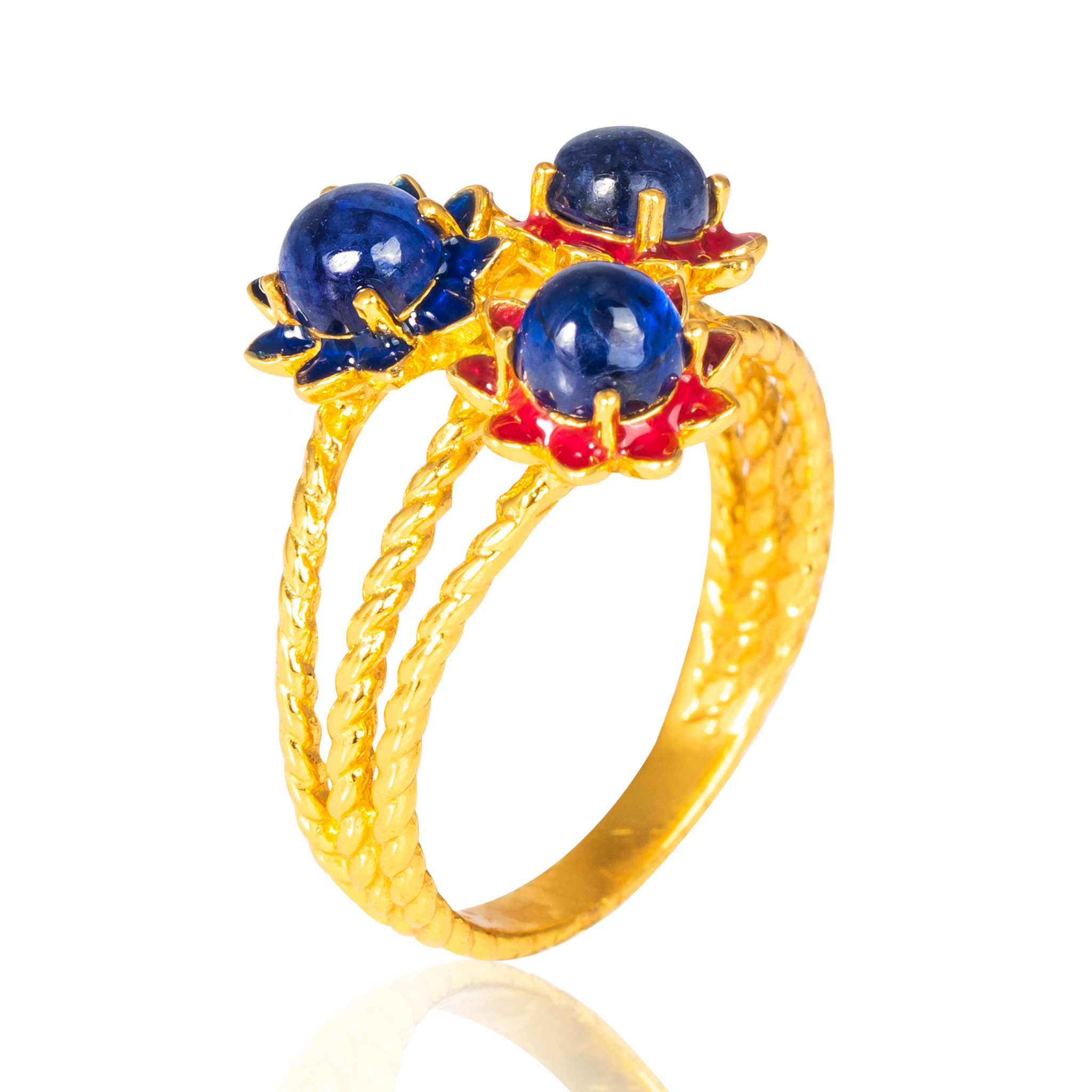 Sterling silver jewelry with 22k gold plated, natural stone and enamel.