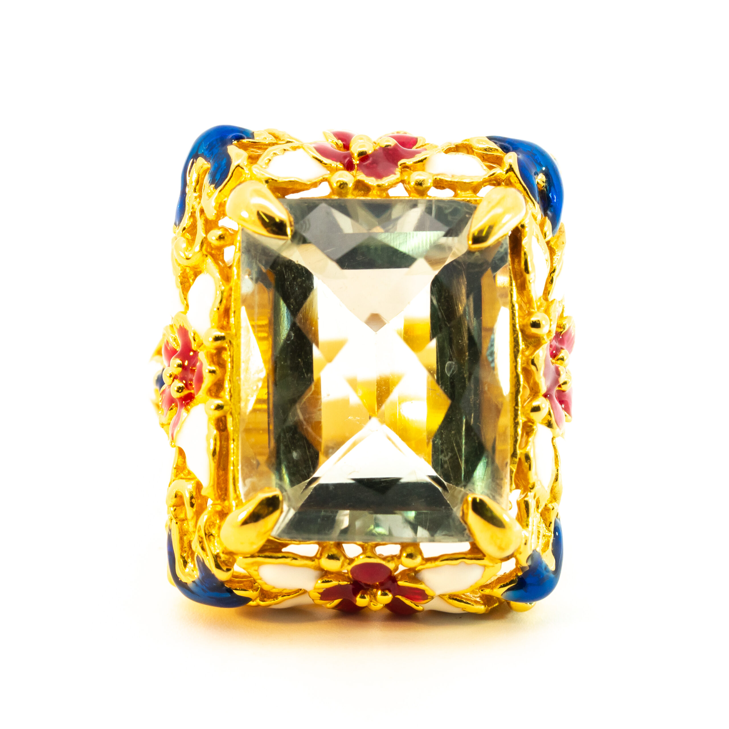 Sterling silver jewelry with 22k gold plated, natural stone and enamel.