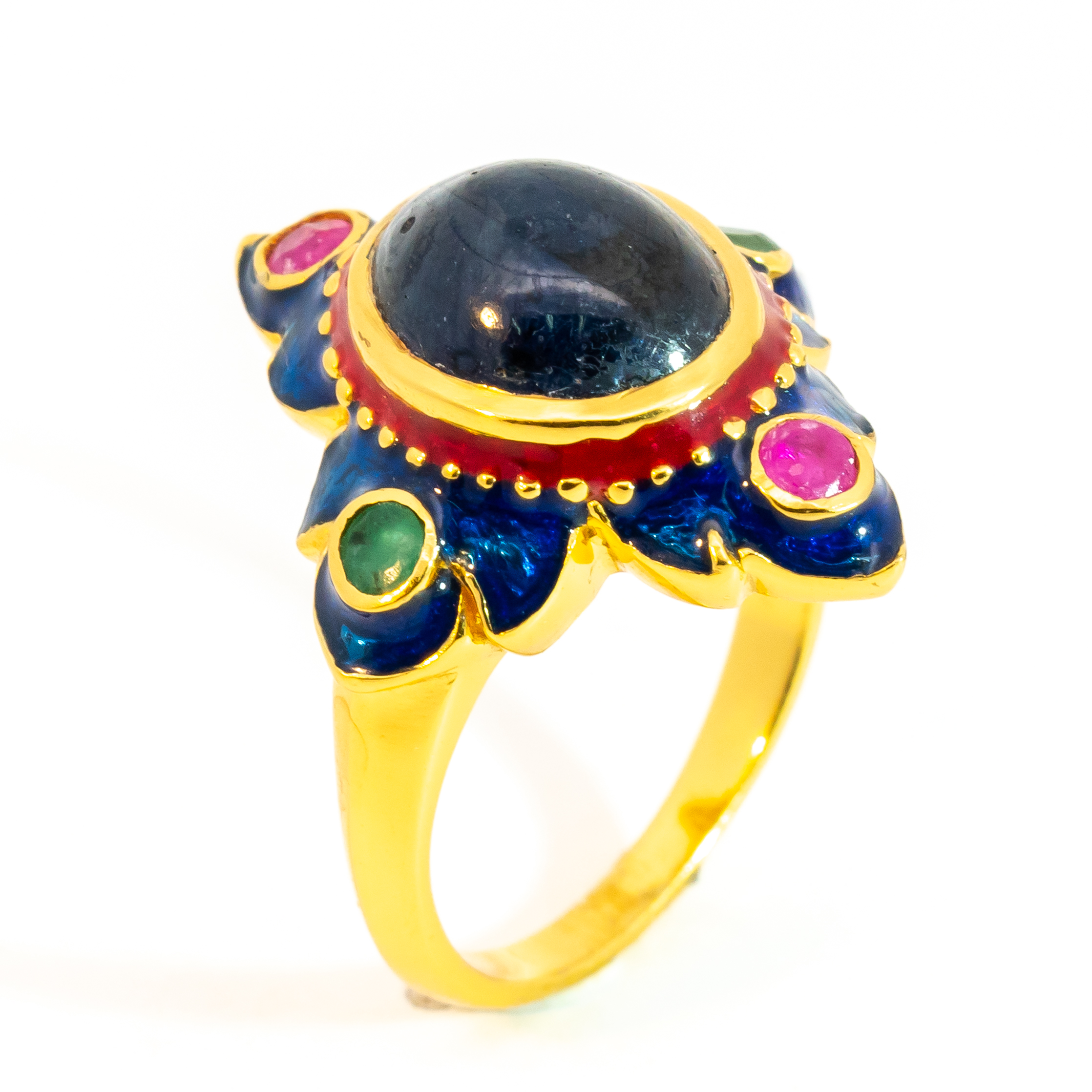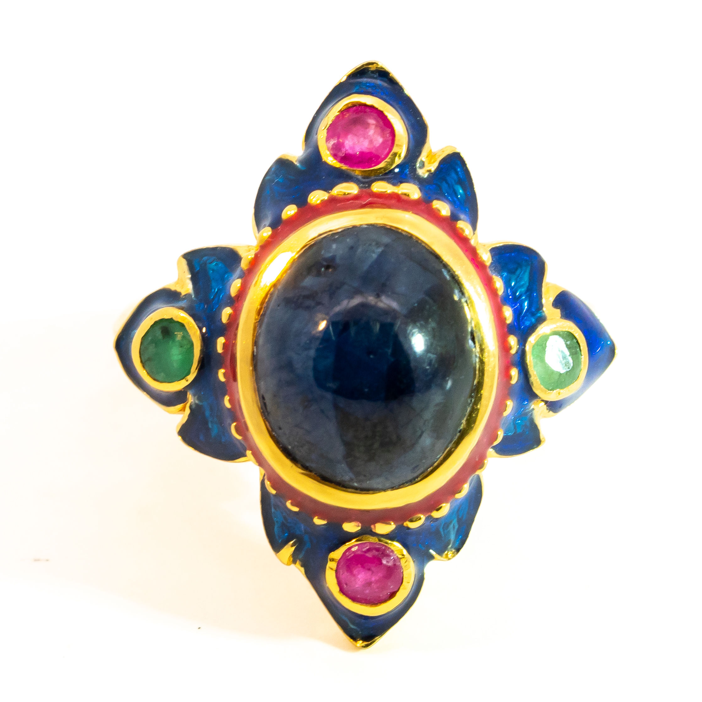 Sterling silver jewelry with 22k gold plated, natural stone and enamel.