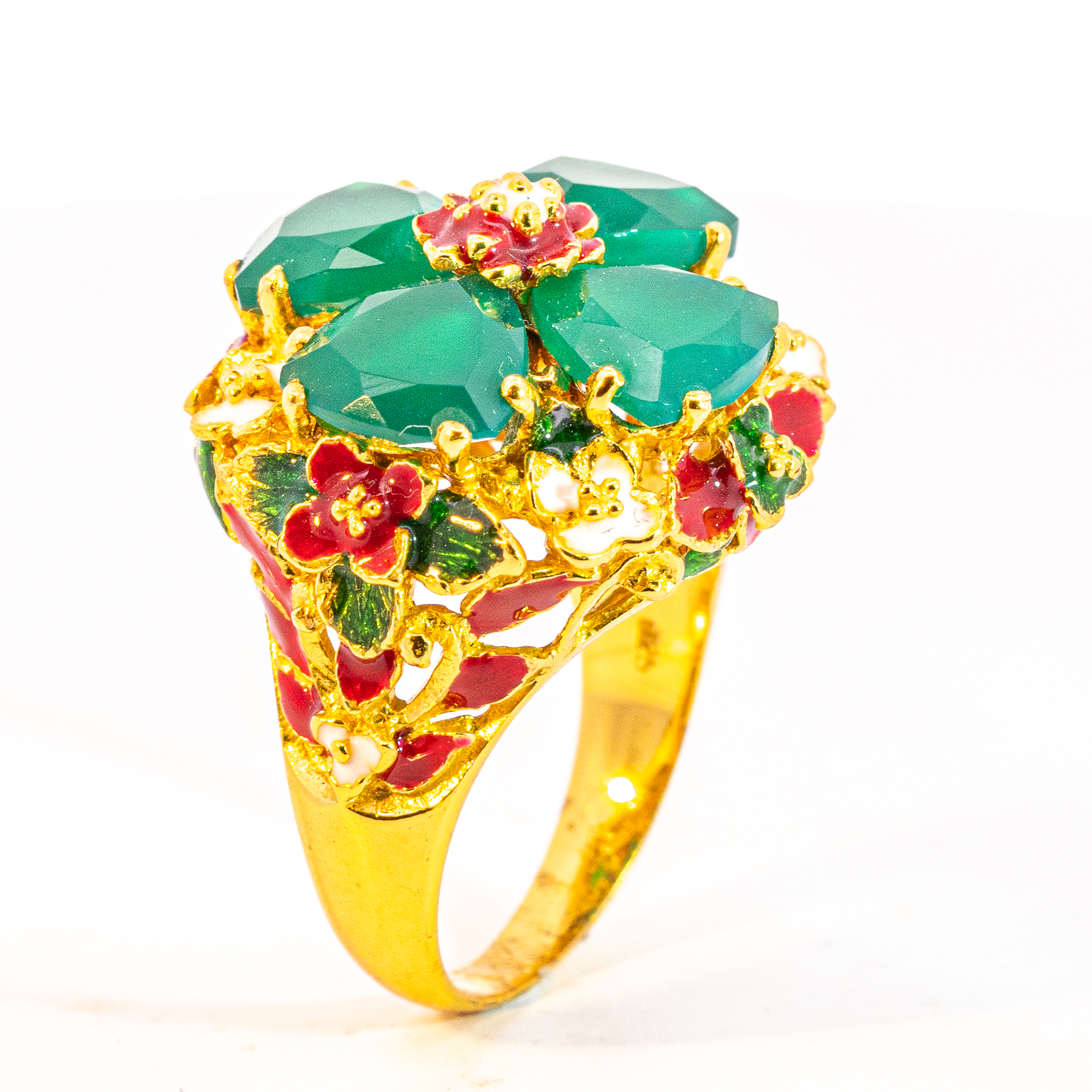 Sterling silver jewelry with 22k gold plated, natural stone and enamel.