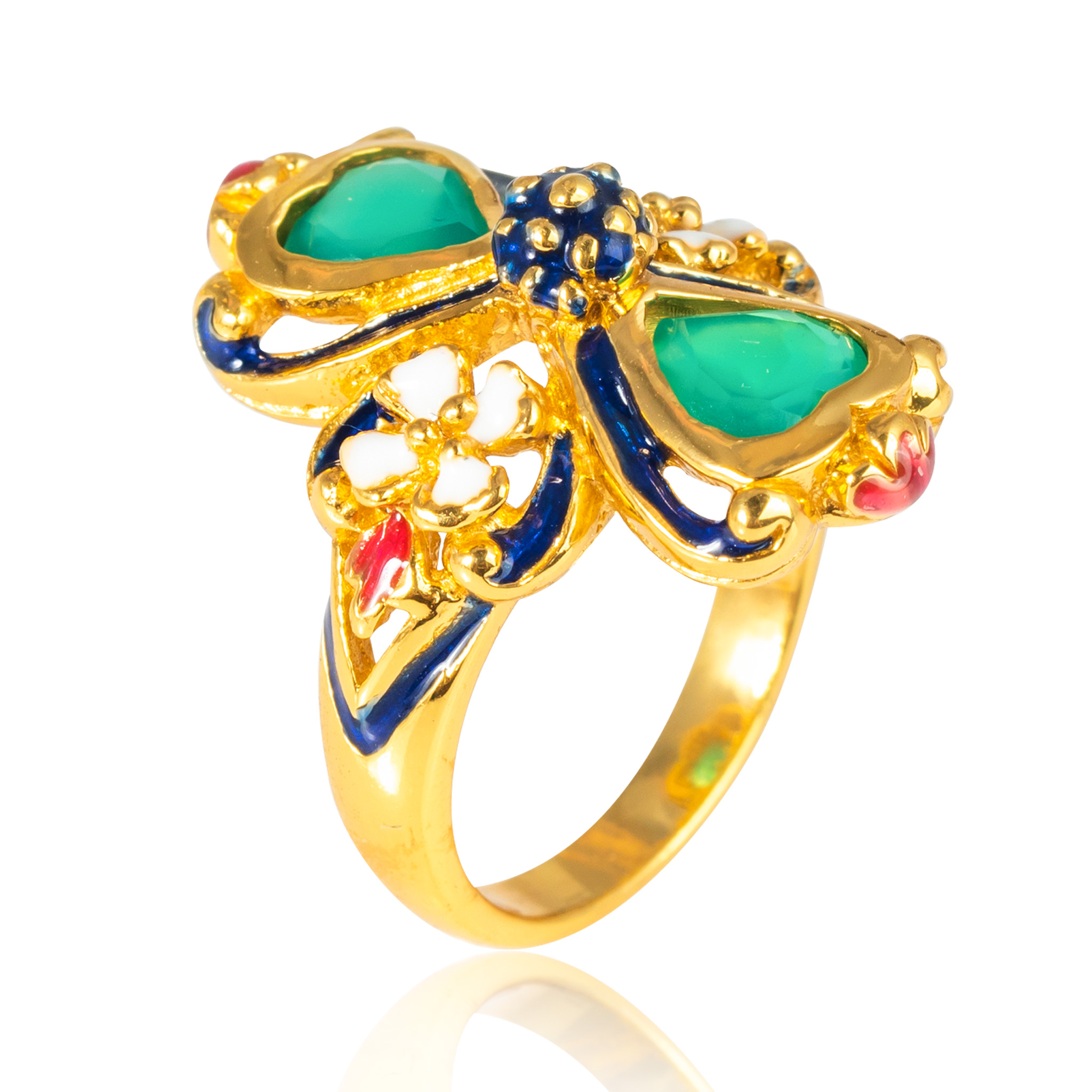 Sterling silver jewelry with 22k gold plated, natural stone and enamel.