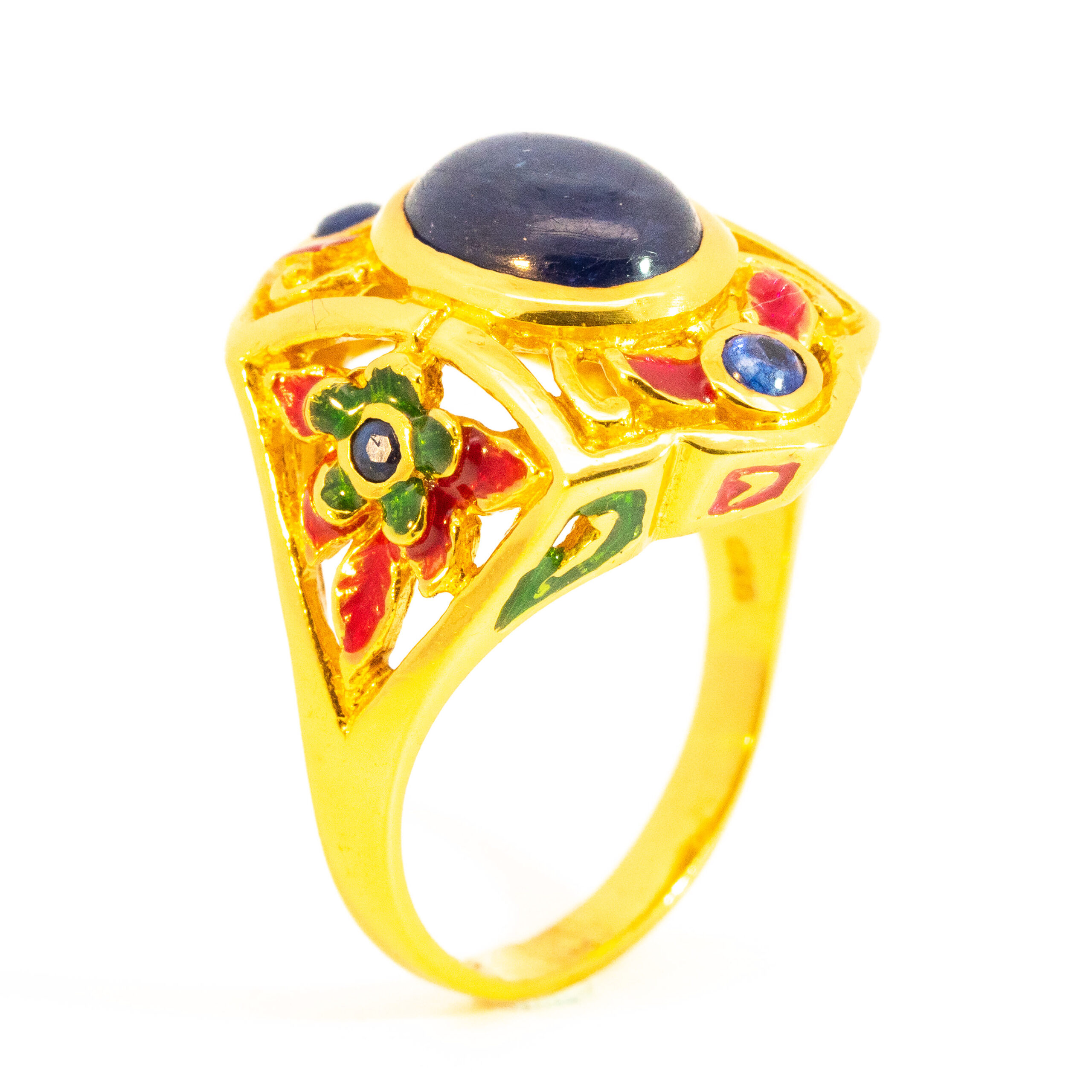 Sterling silver jewelry with 22k gold plated, natural stone and enamel.