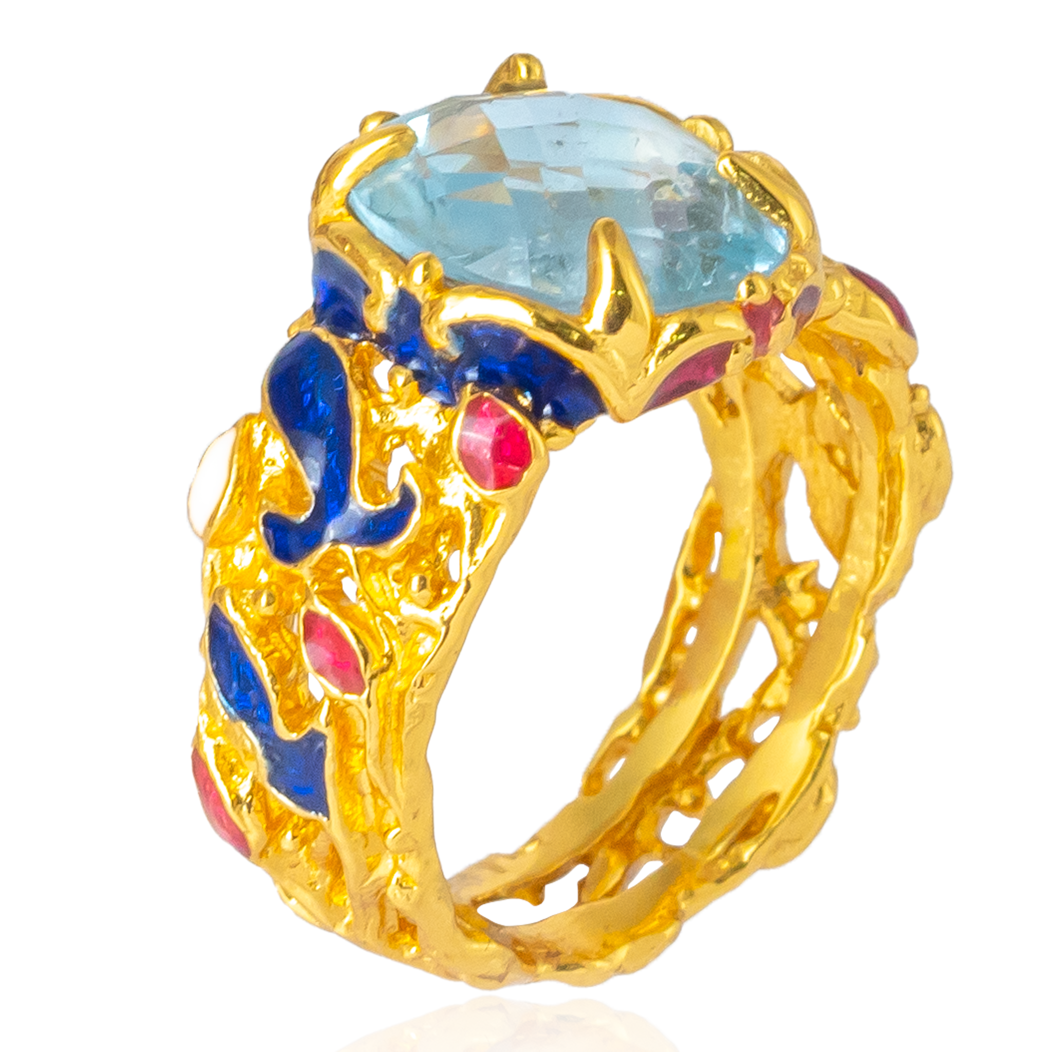 Sterling silver jewelry with 22k gold plated, natural stone and enamel.