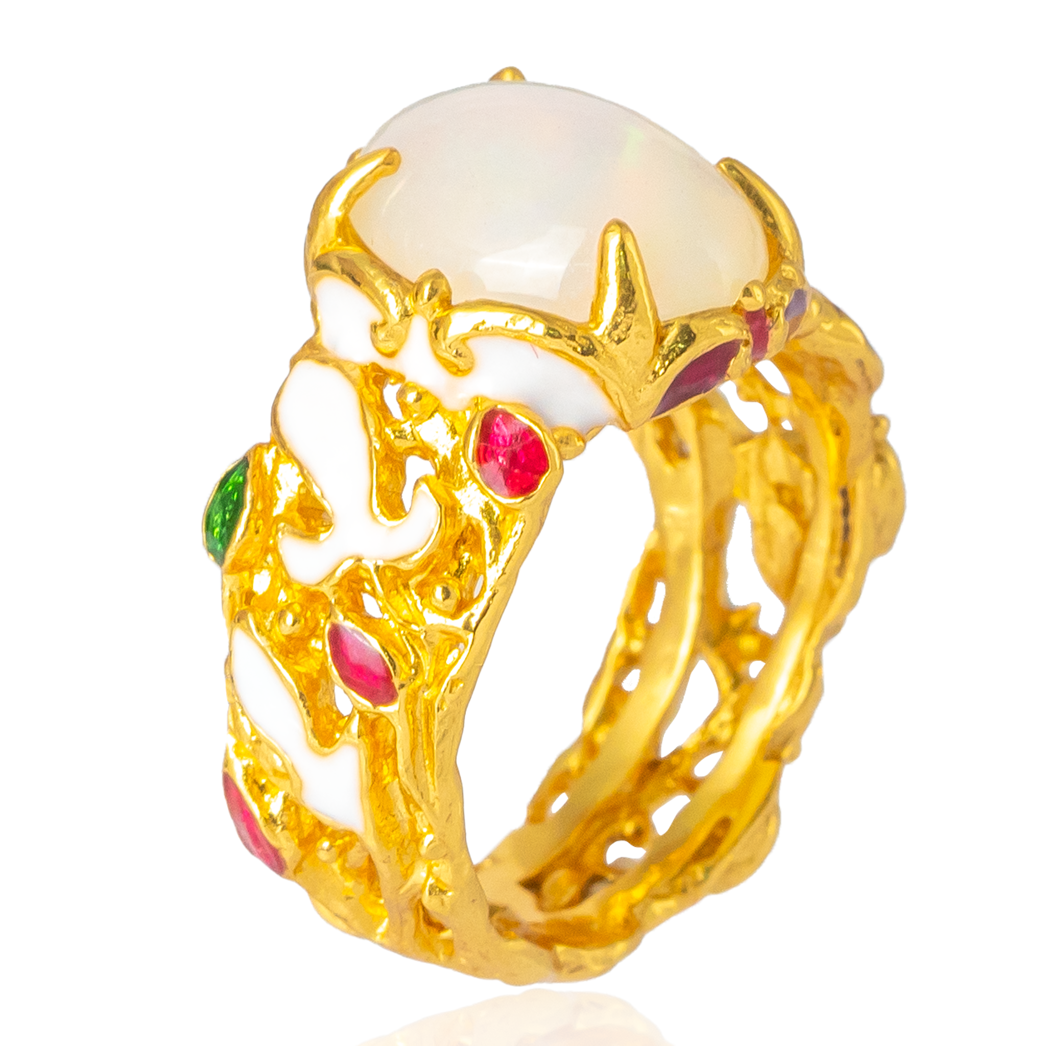 Sterling silver jewelry with 22k gold plated, natural stone and enamel.