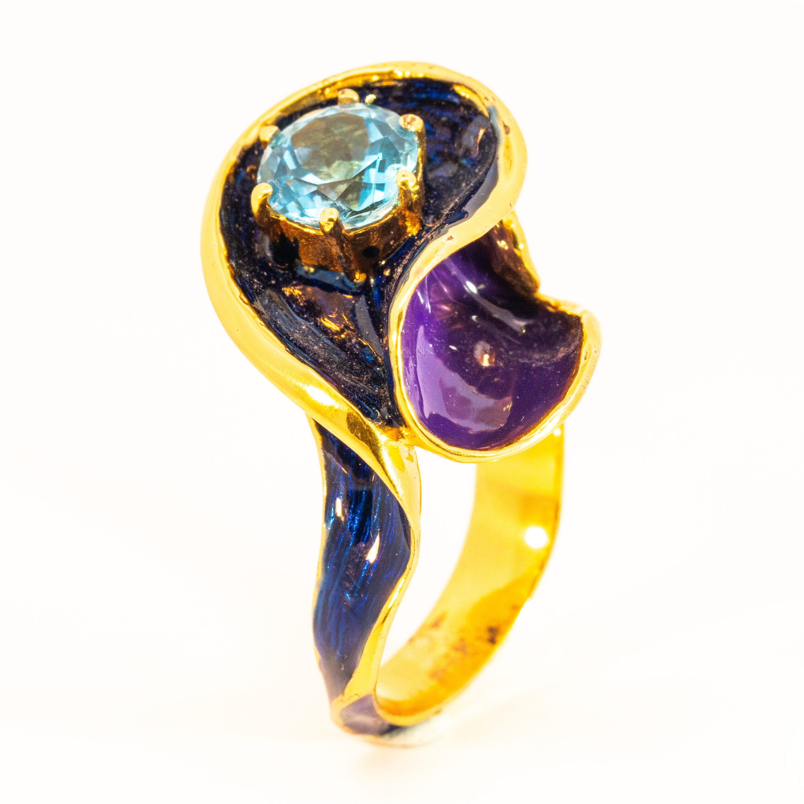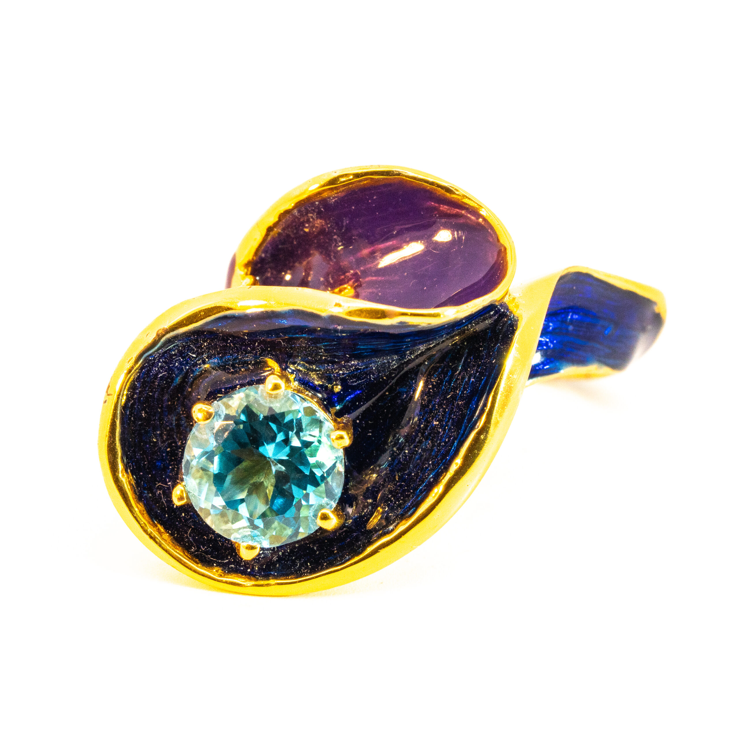 Sterling silver jewelry with 22k gold plated, natural stone and enamel.
