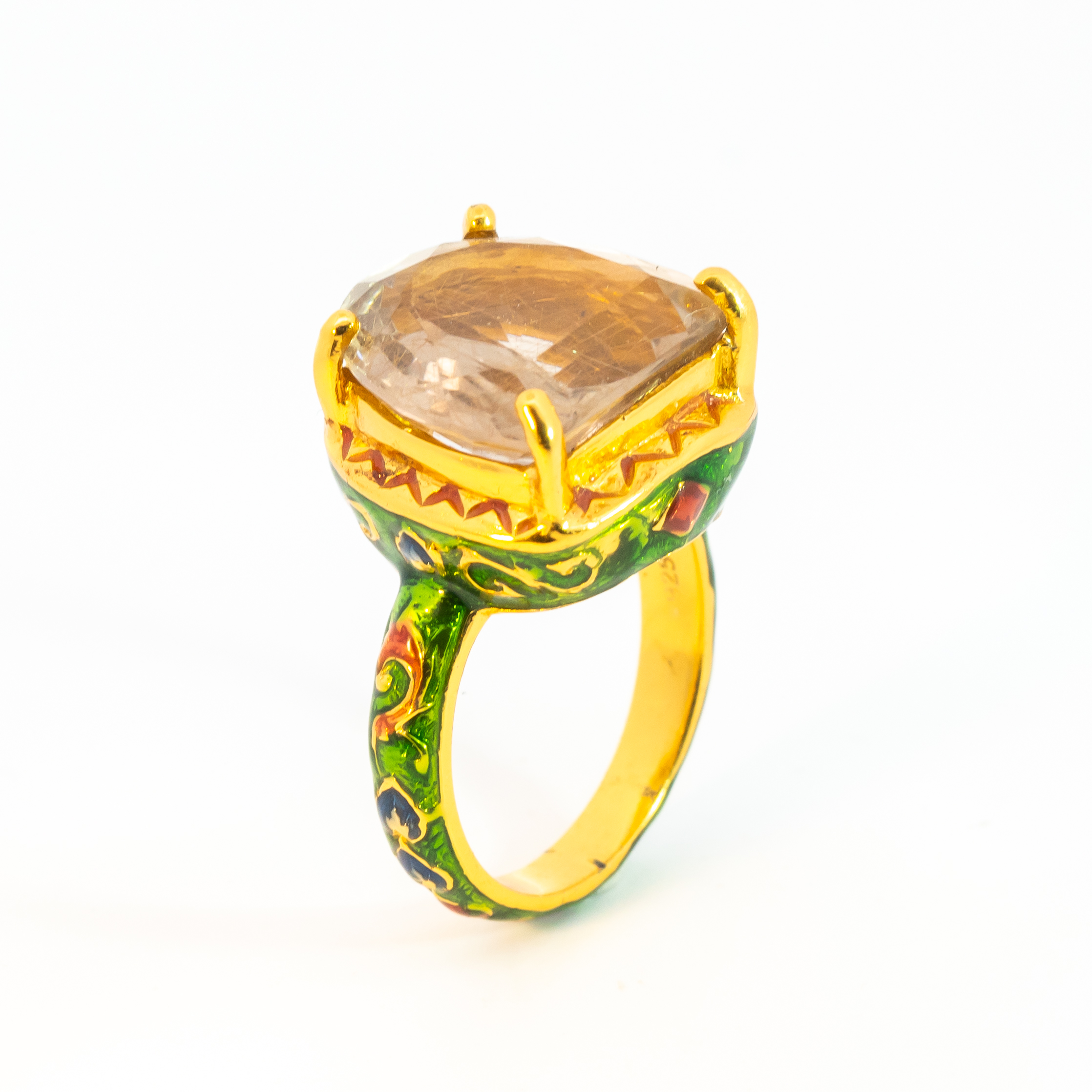 Sterling silver jewelry with 22k gold plated, natural stone and enamel.