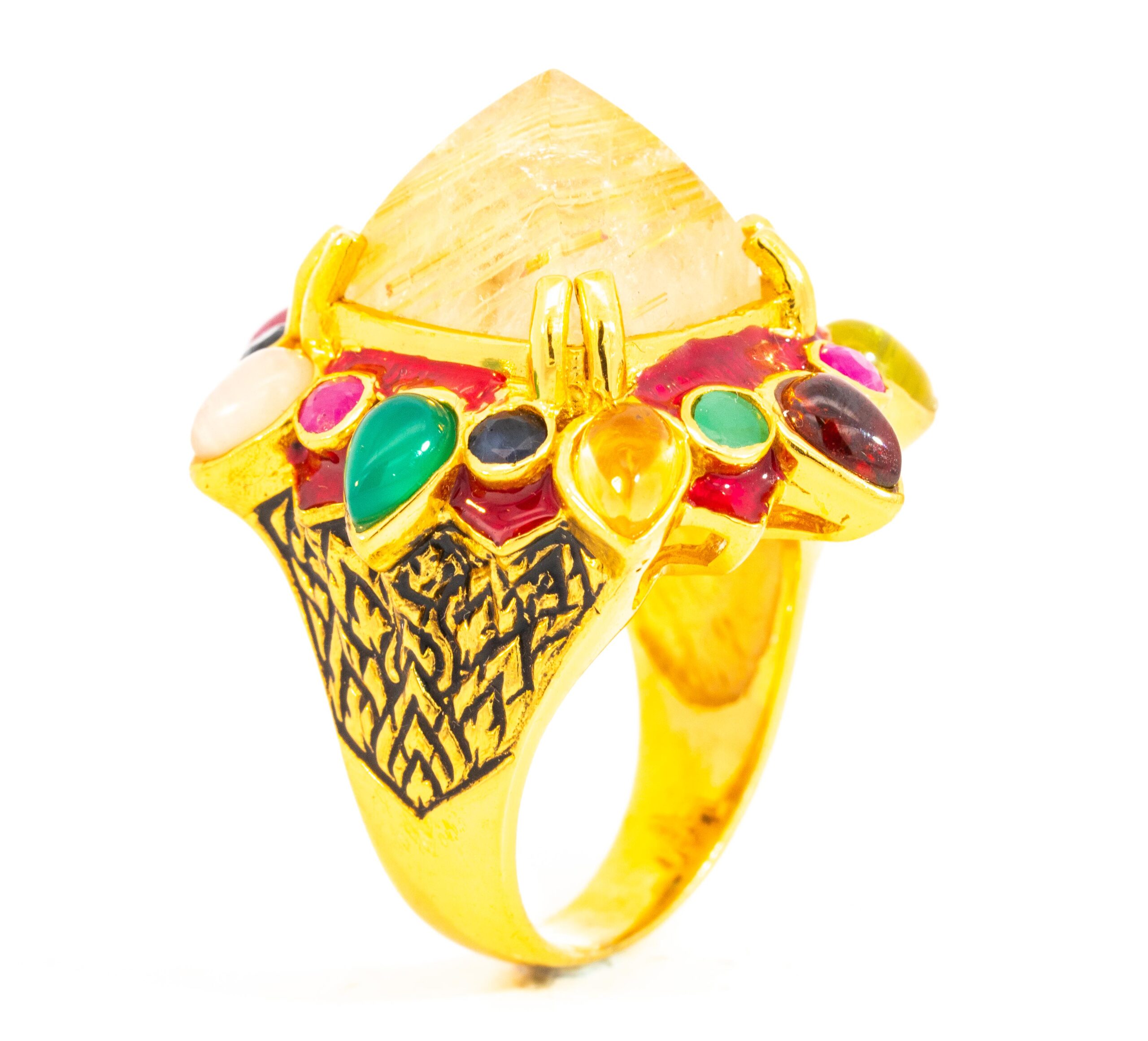 Sterling silver jewelry with 22k gold plated, natural stone and enamel.