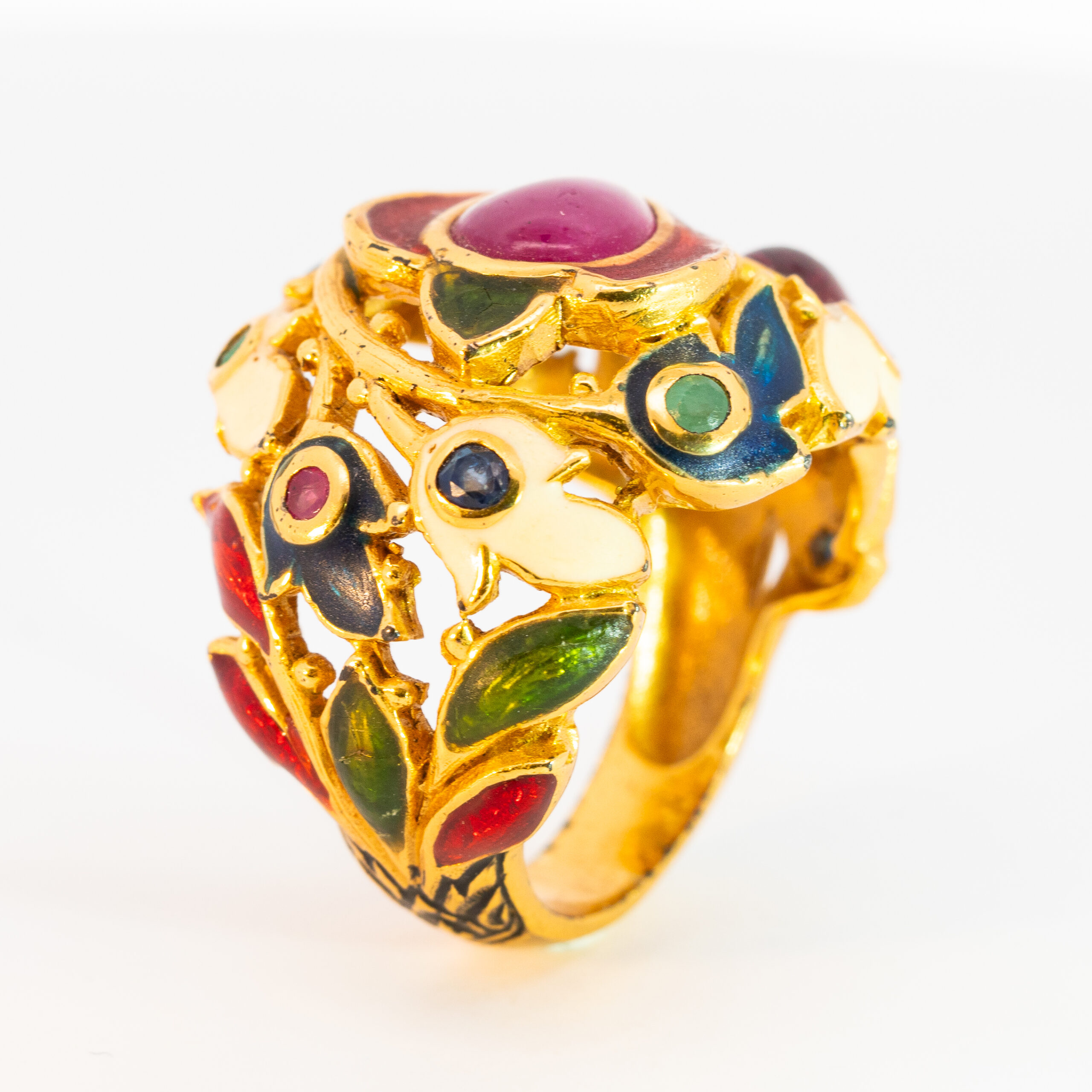Sterling silver jewelry with 22k gold plated, natural stone and enamel.