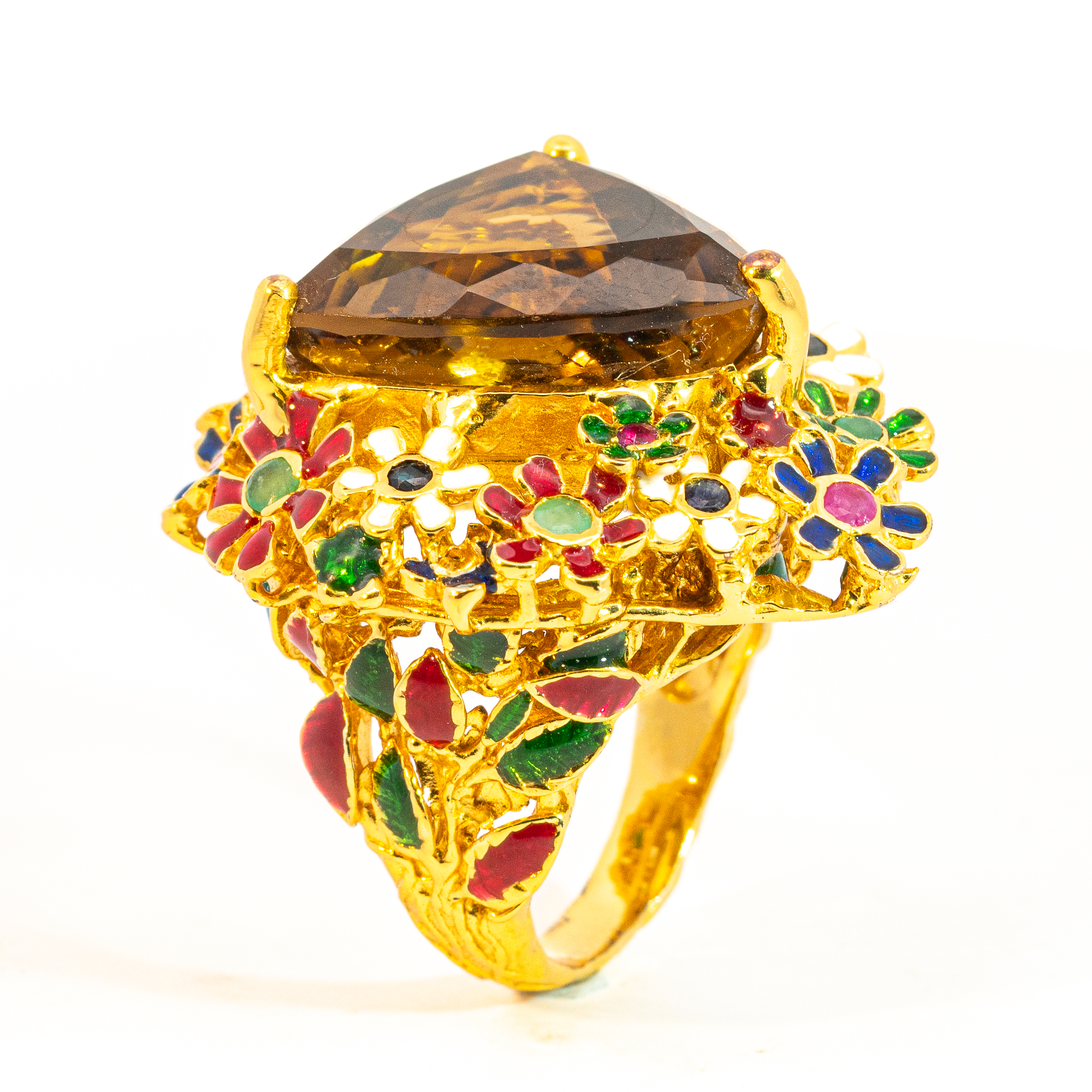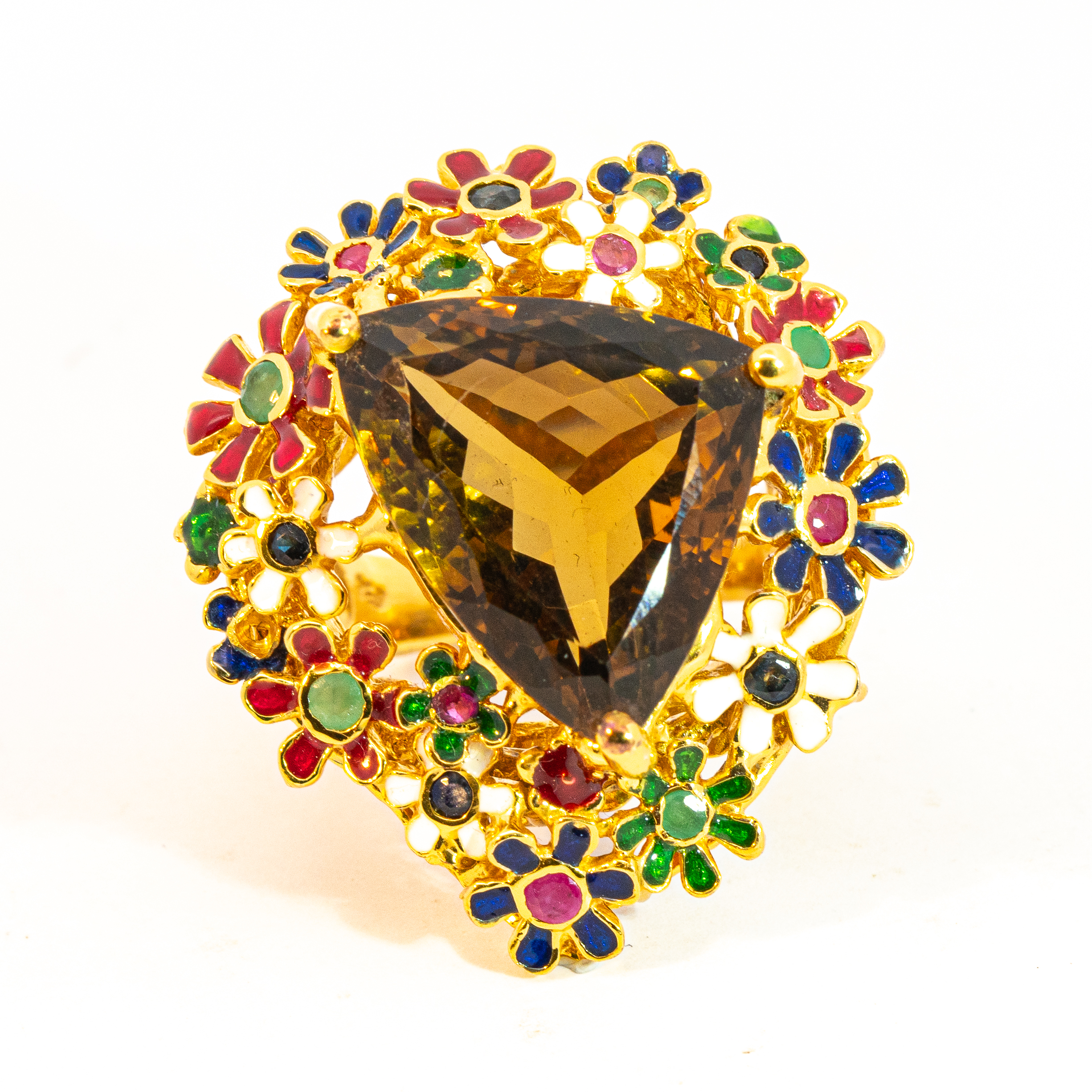 Sterling silver jewelry with 22k gold plated, natural stone and enamel.